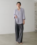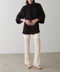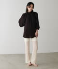 ネックと袖口に施したギャザーが、さりげなく甘さを添えるデザインです。