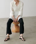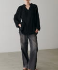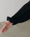 たっぷりとした袖のボリュームと、落ち感のある素材が描くドレープ感が印象的。