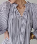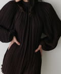 プリーツが縦のラインを強調し、ふんわりとしながらもすっきり見えるシルエットに。