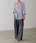 ネックと袖口に施したギャザーが、さりげなく甘さを添えるデザインです。
