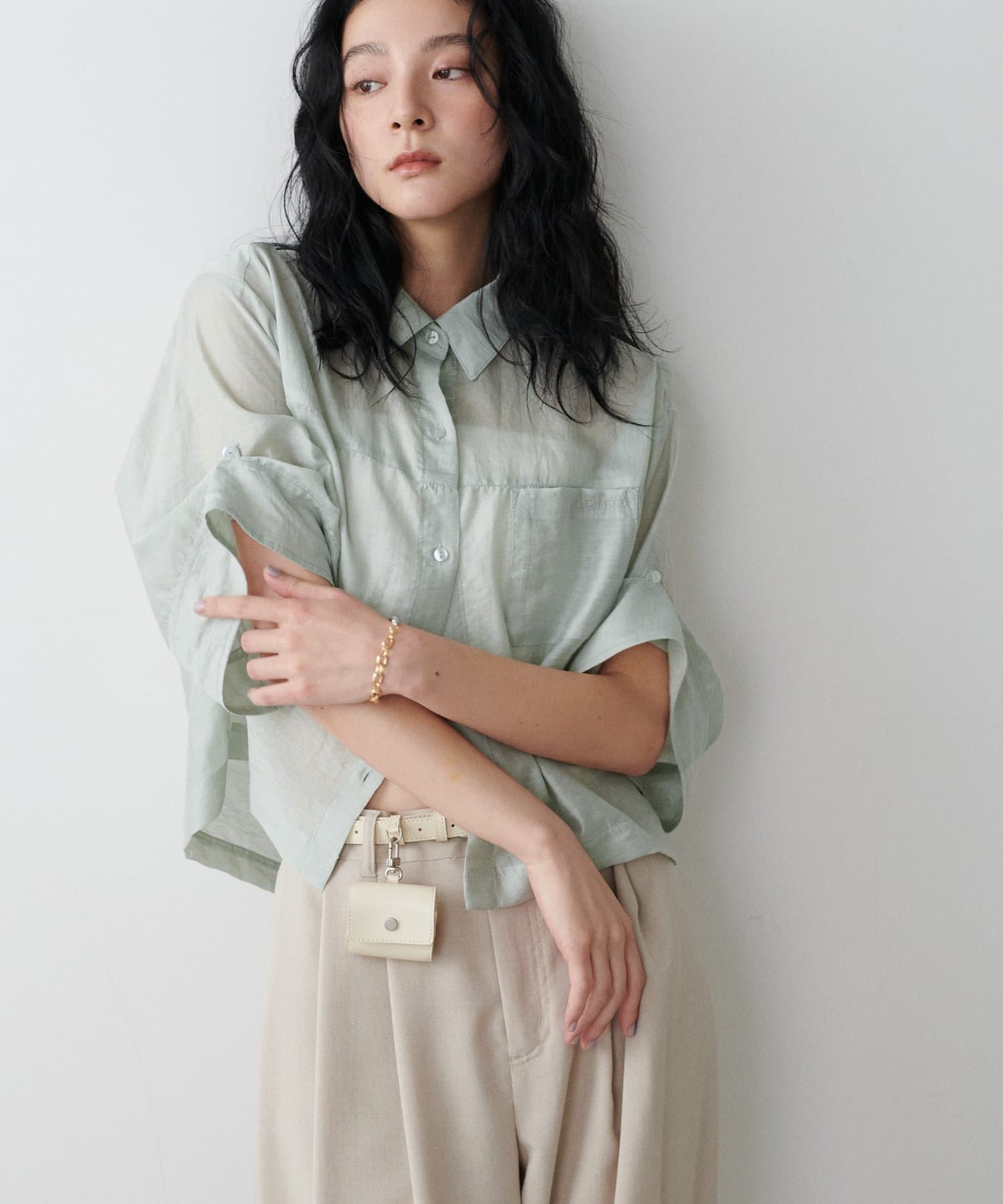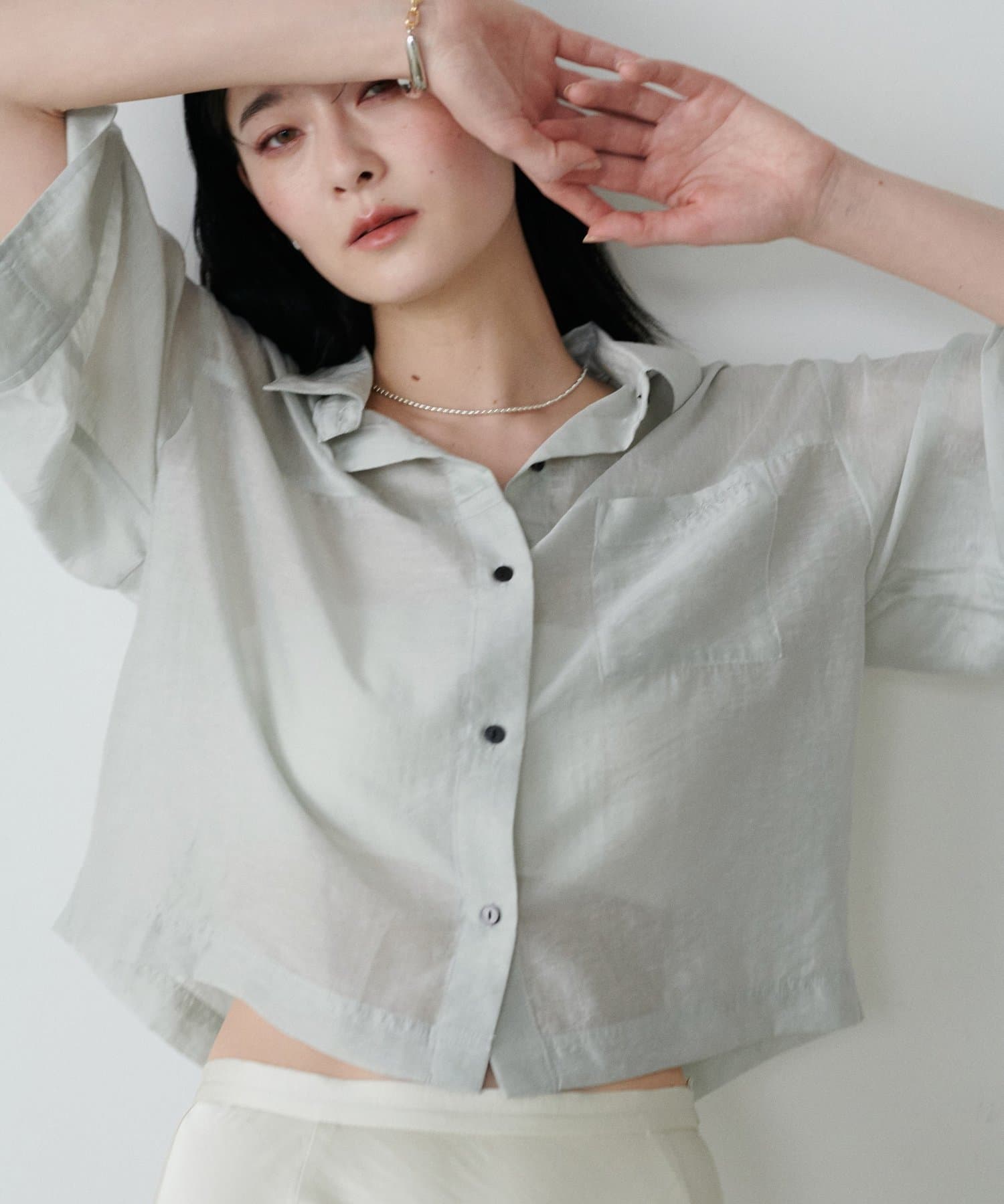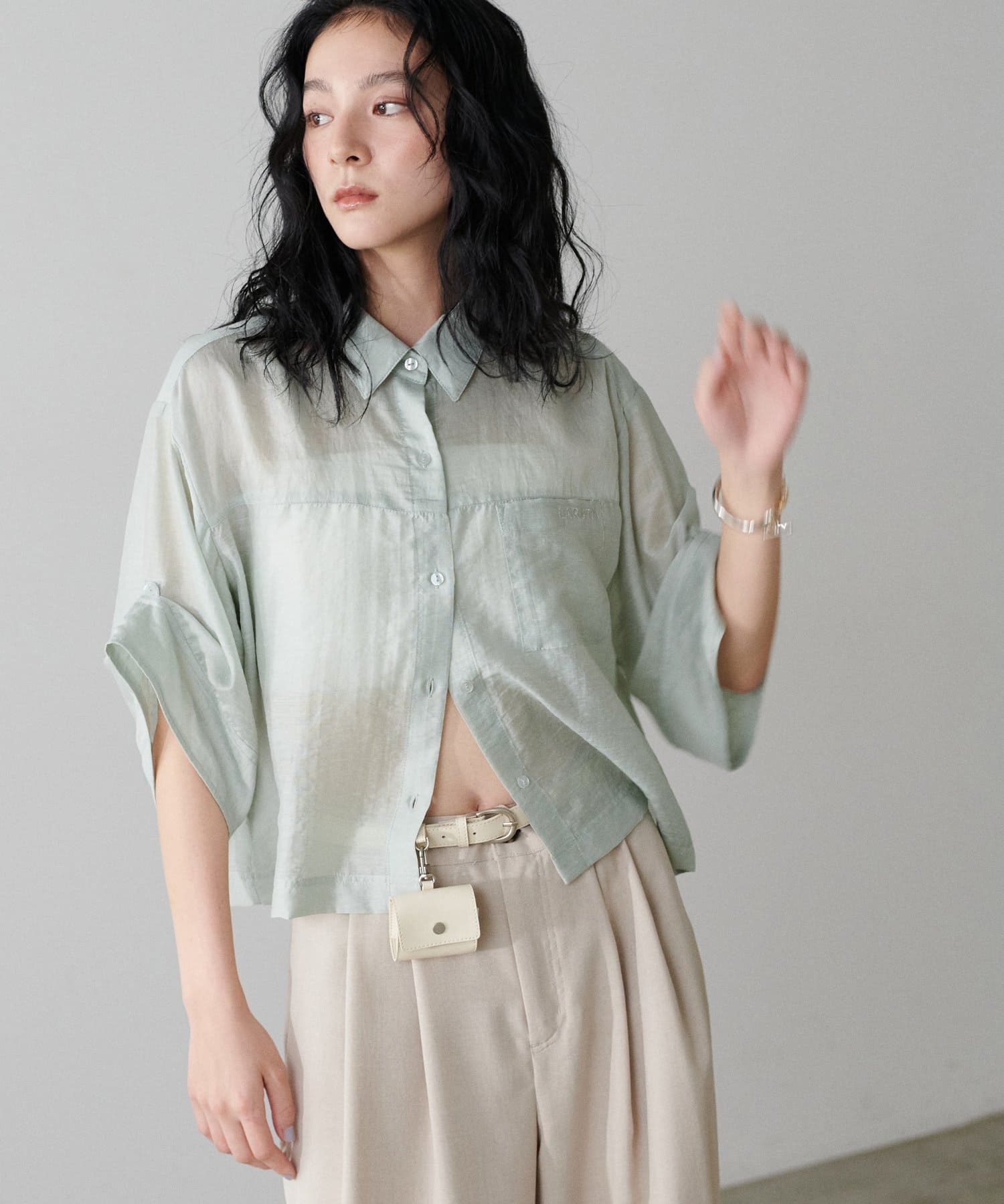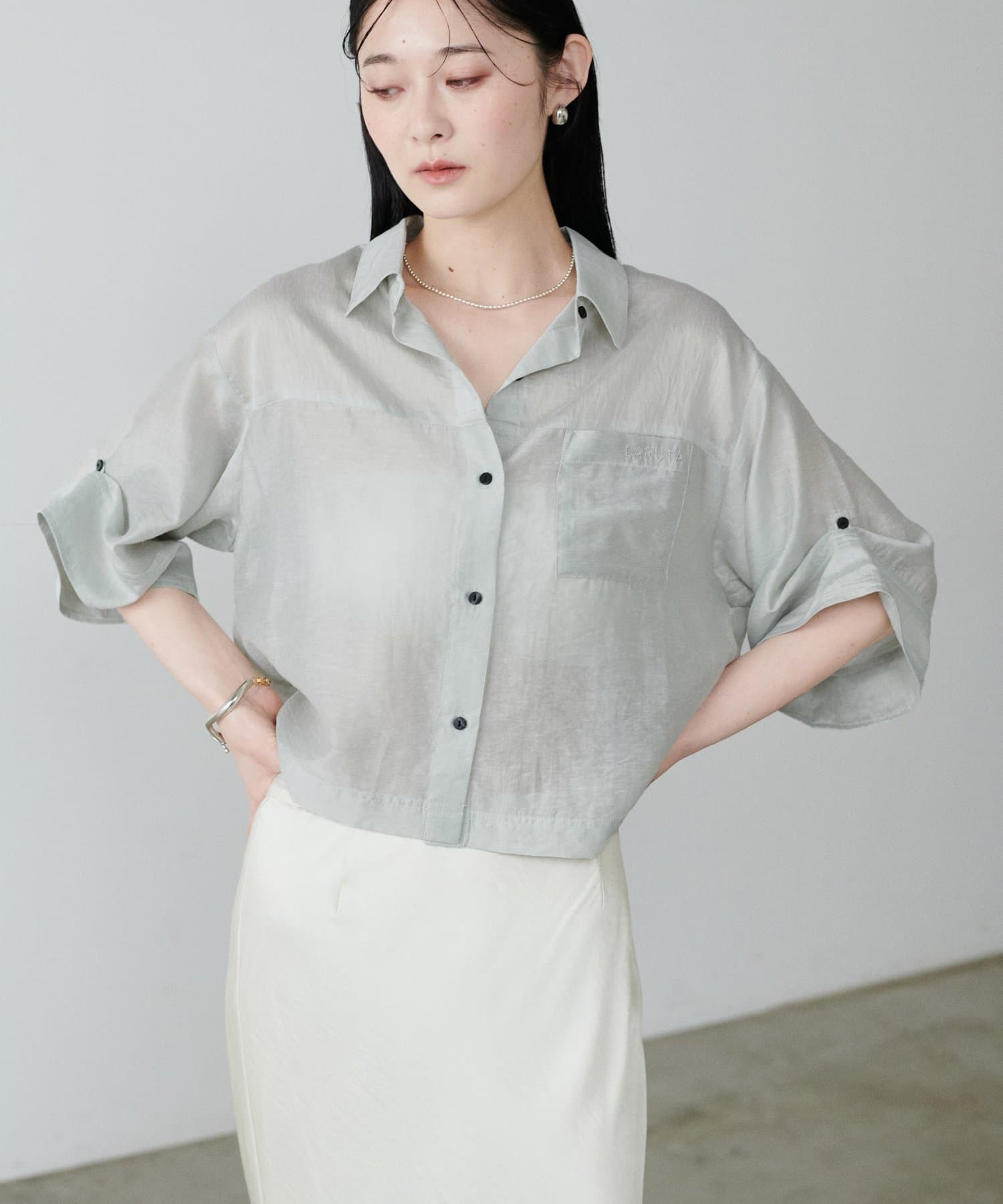 上品な透け感が涼し気な印象を与えるシアーシャツ。