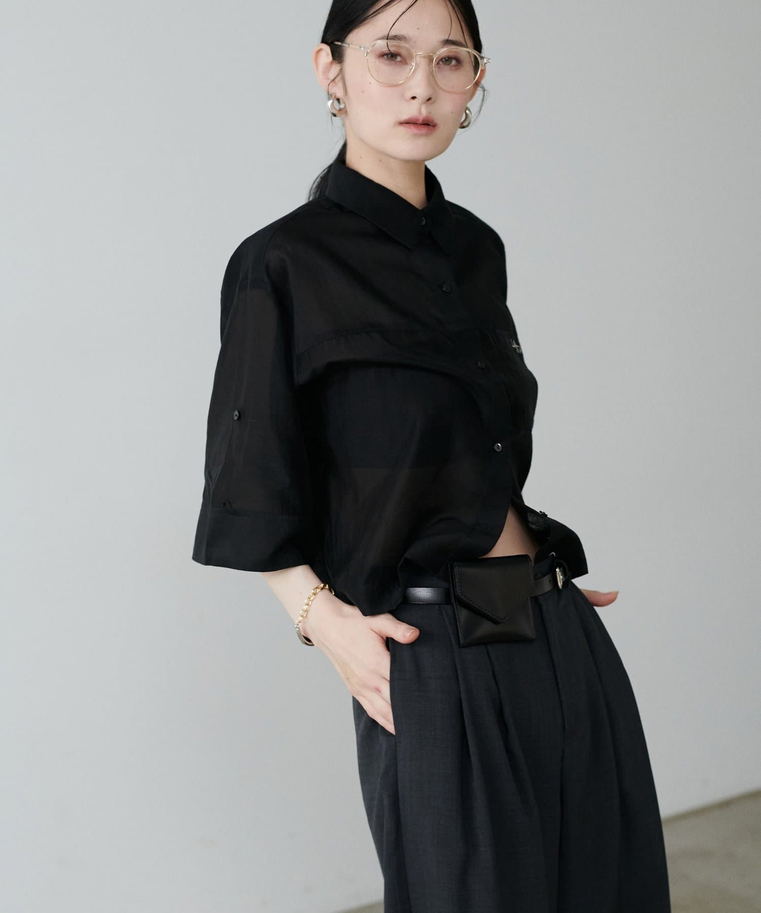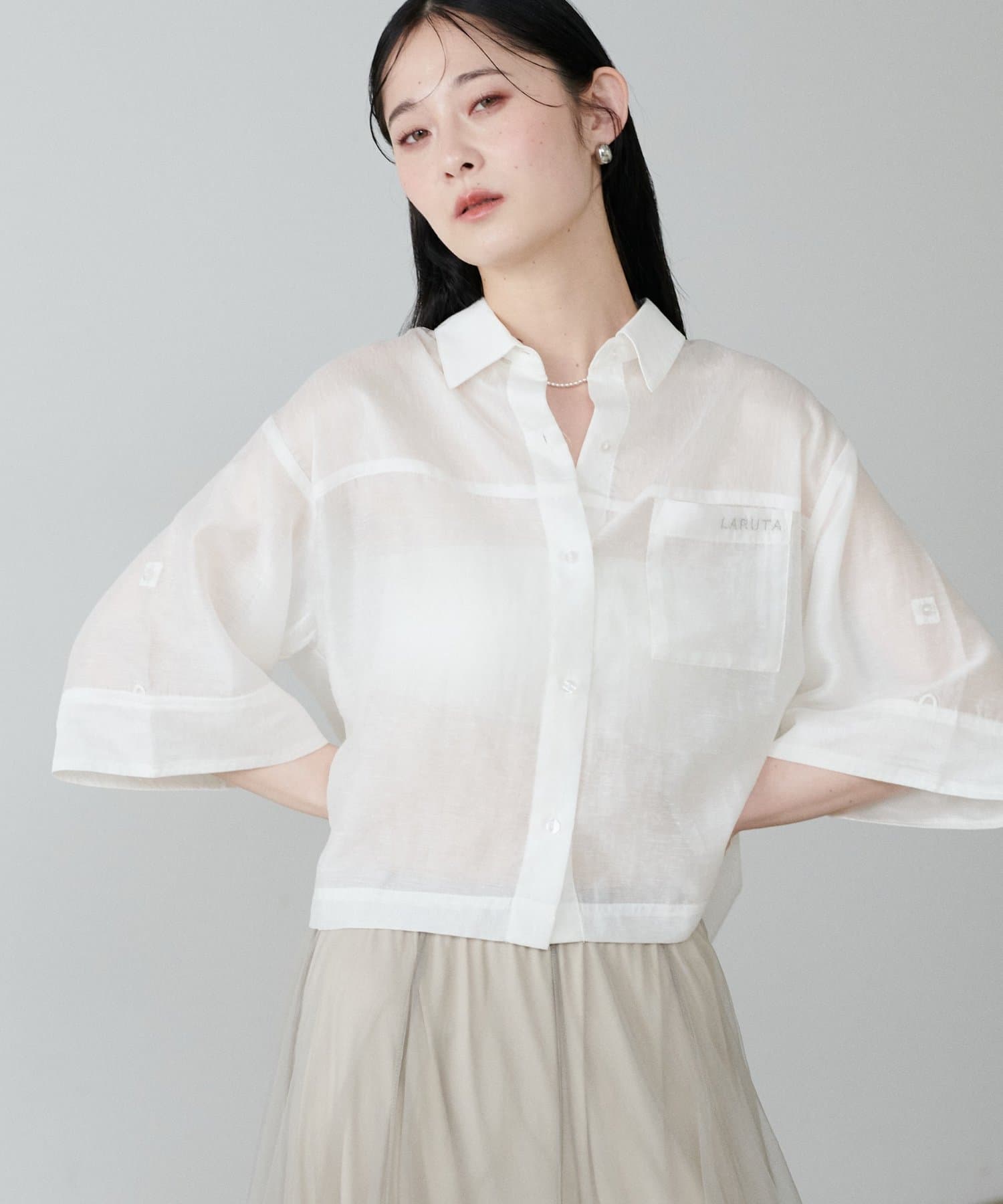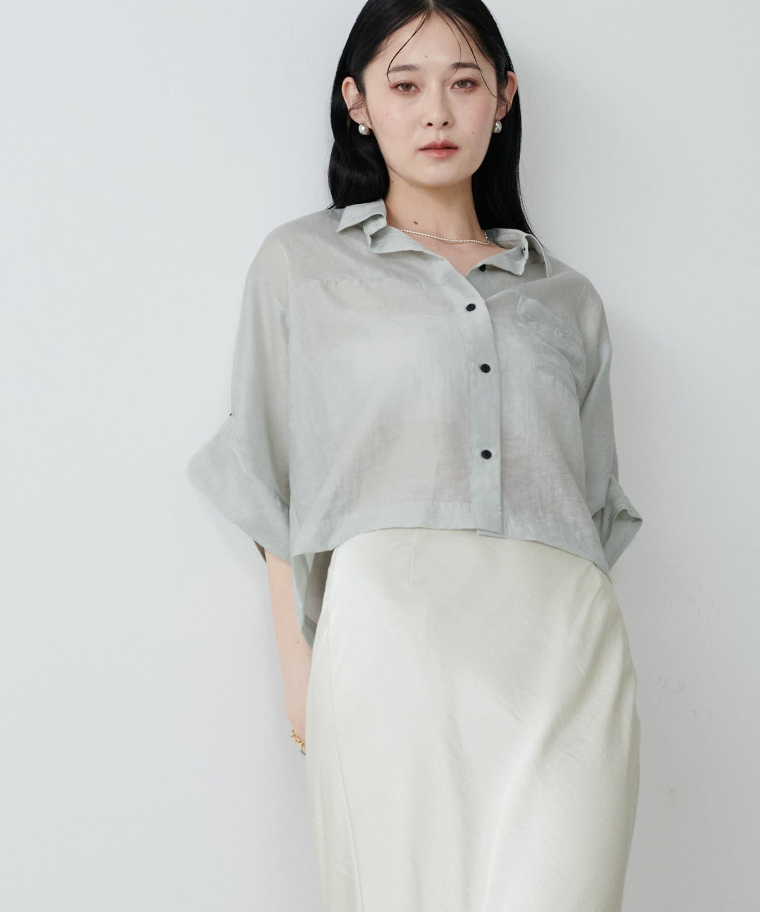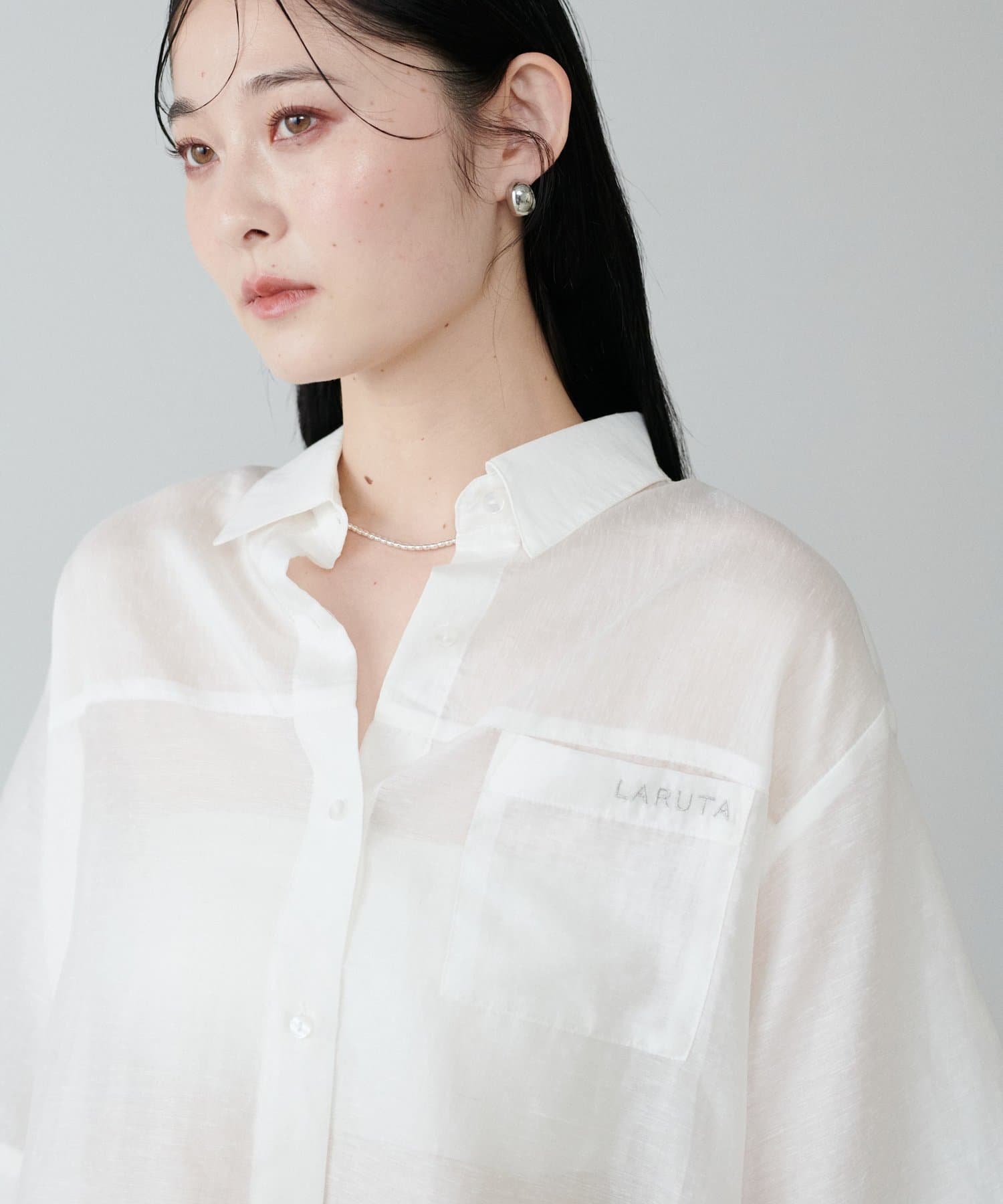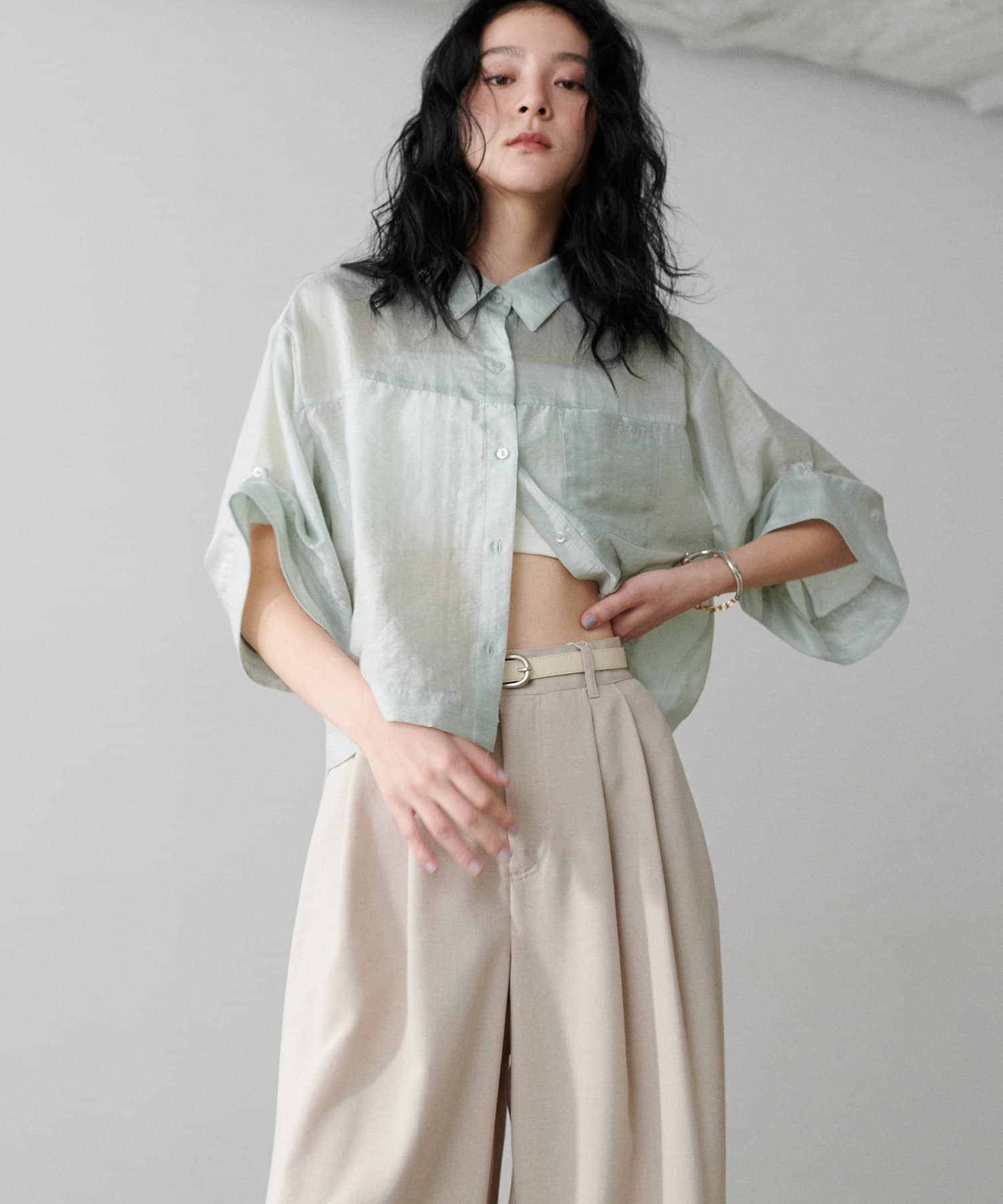 上品な透け感が涼し気な印象を与えるシアーシャツ。