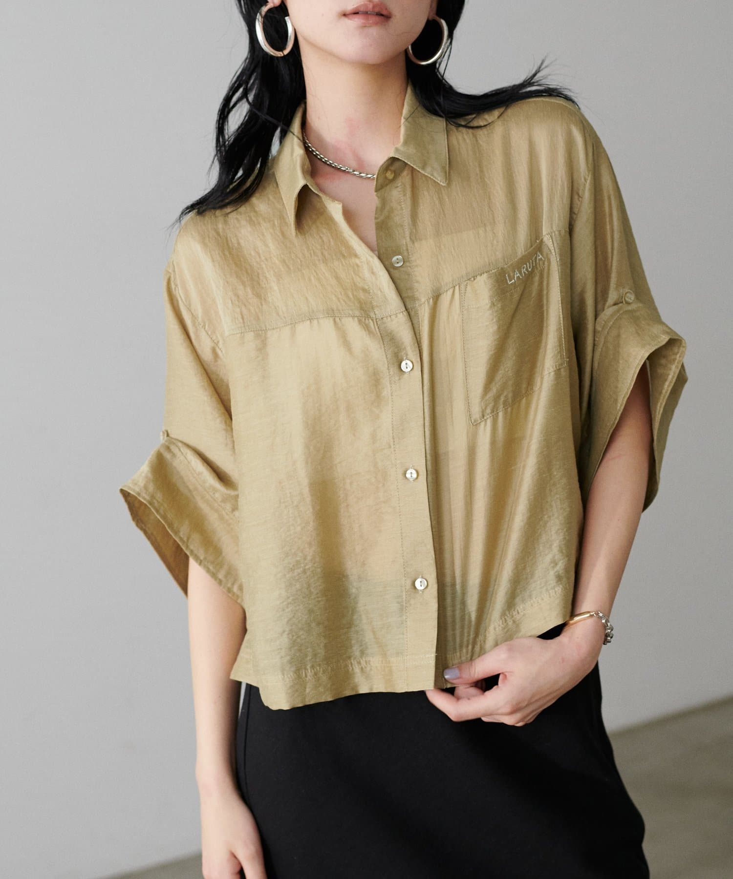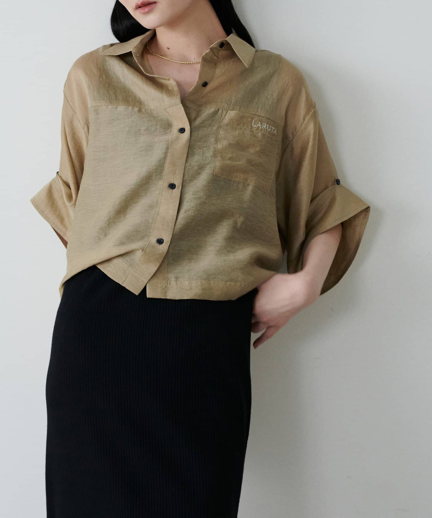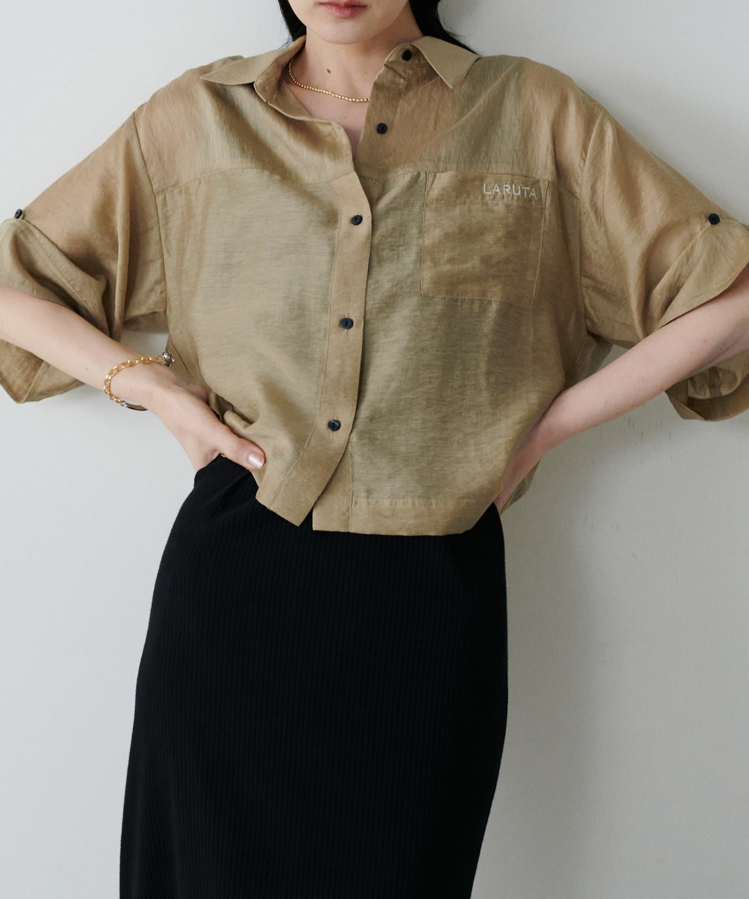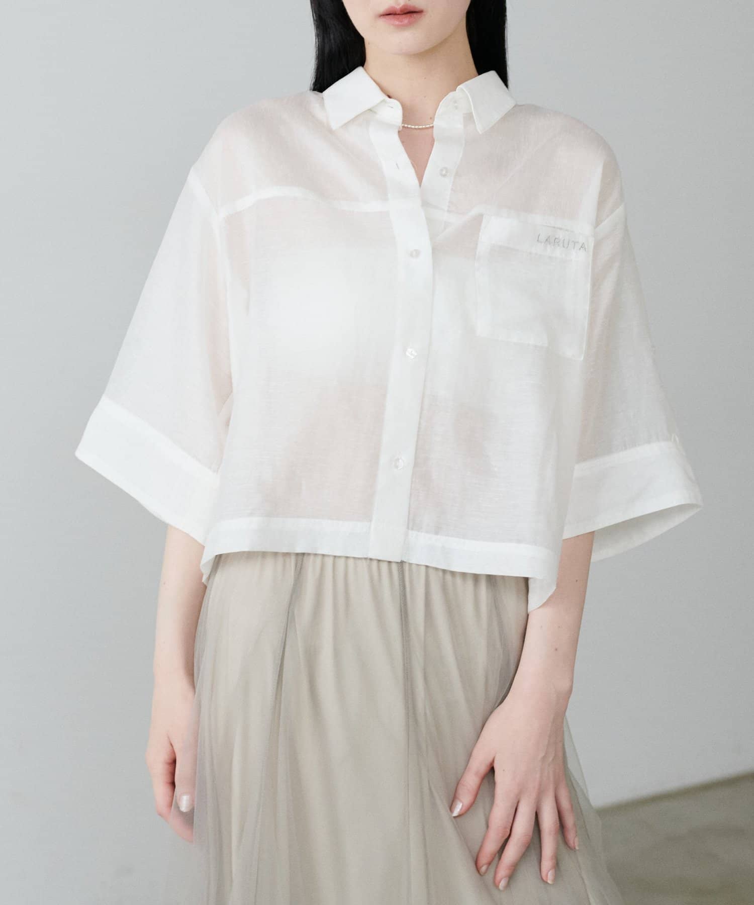 上品な透け感が涼し気な印象を与えるシアーシャツ。