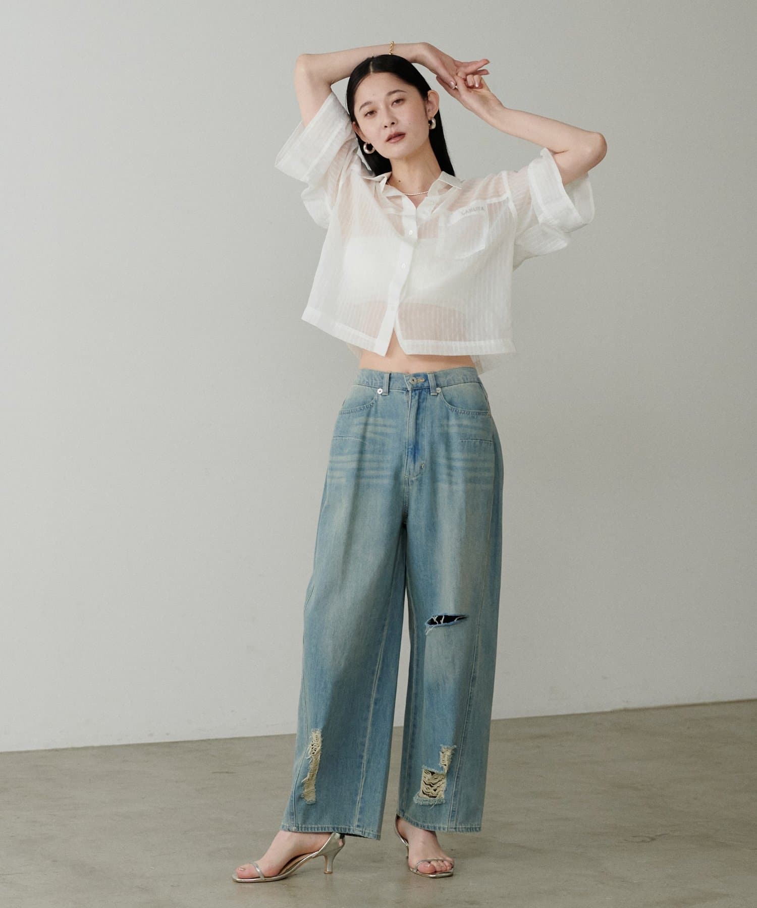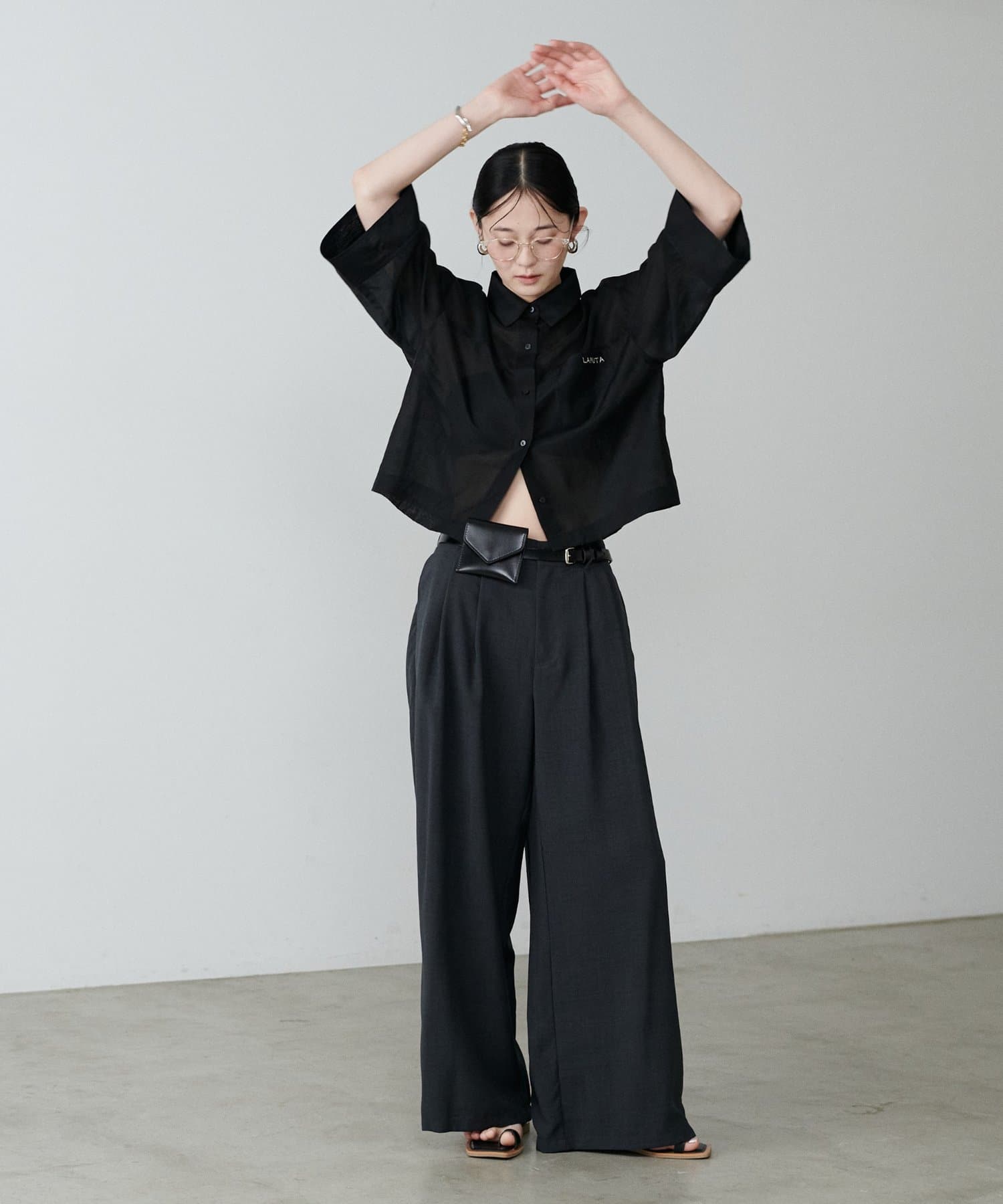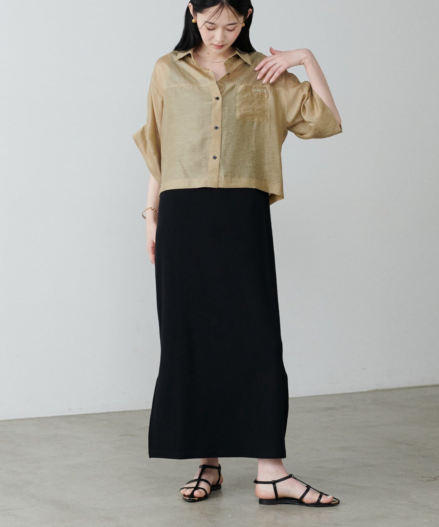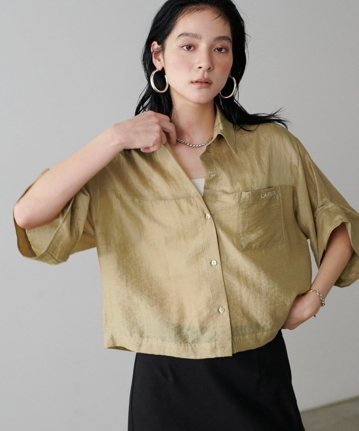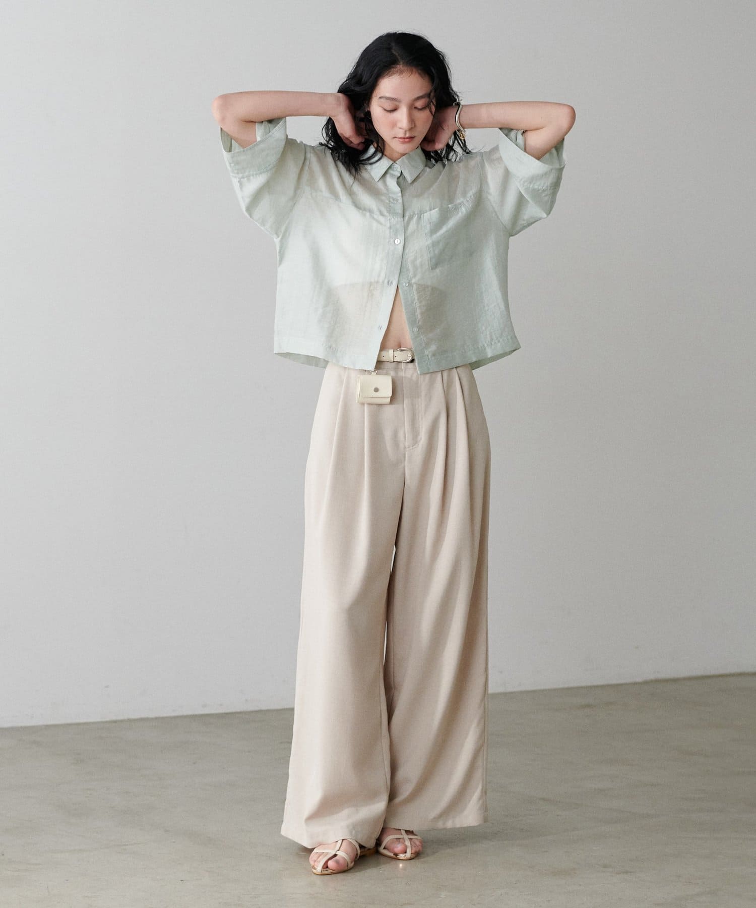 上品な透け感が涼し気な印象を与えるシアーシャツ。