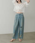 デニムパンツと合わせたラフなスタイリングもおすすめです。