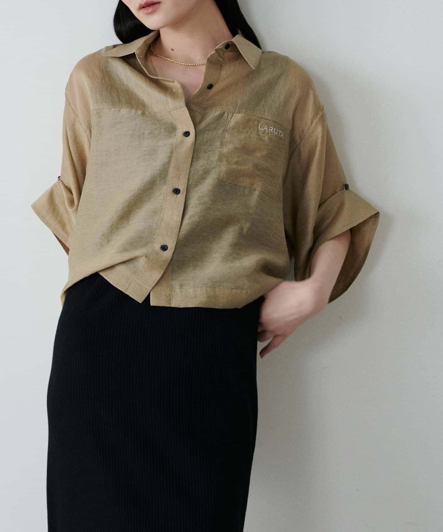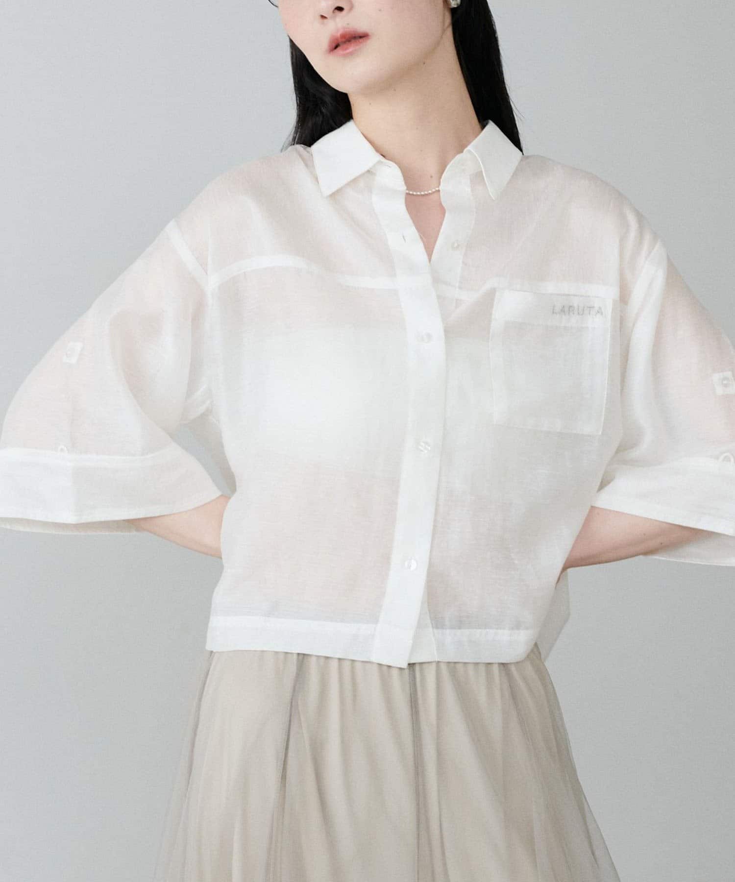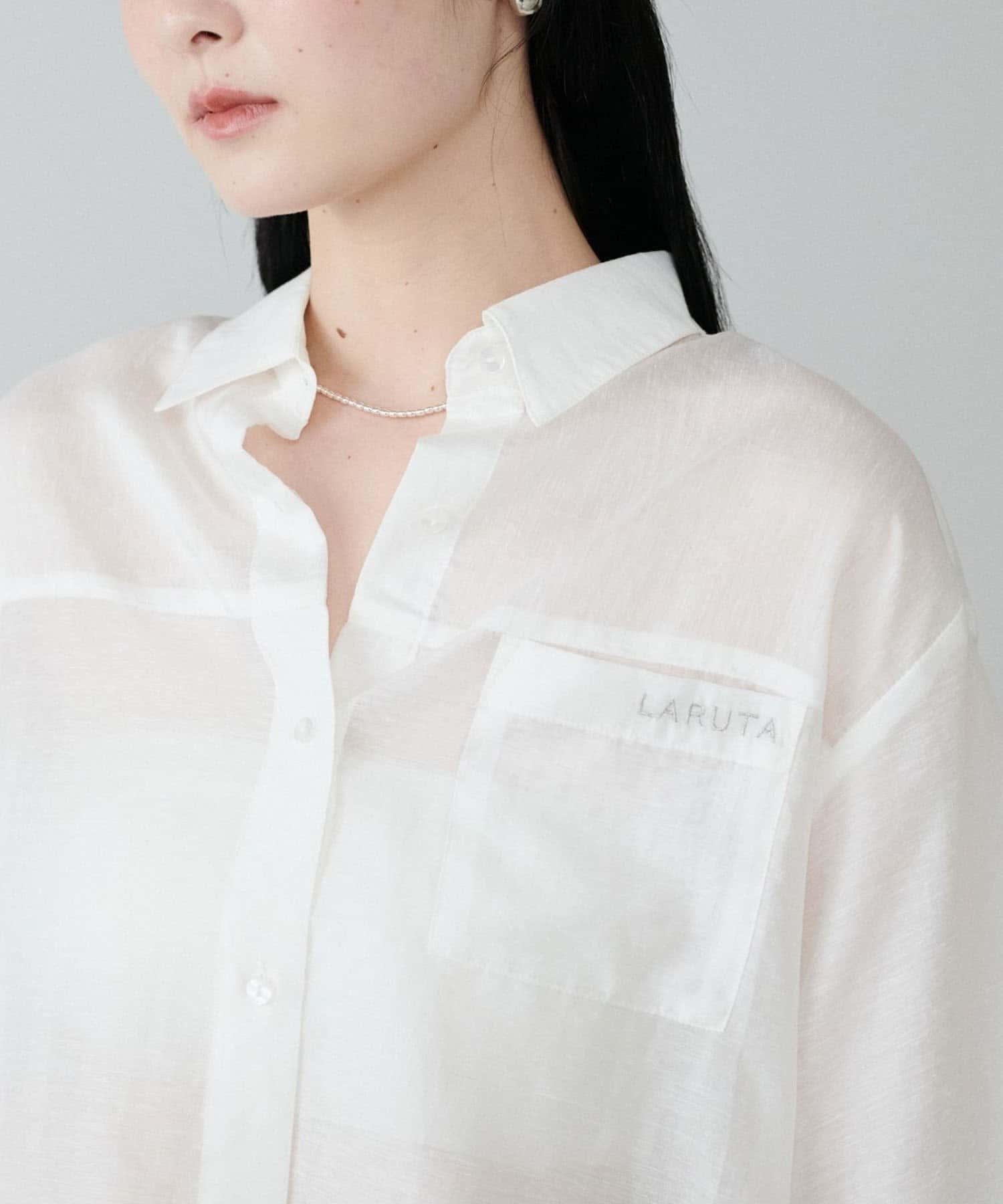 【LARUTA】シアー半袖刺繍ロゴシャツ