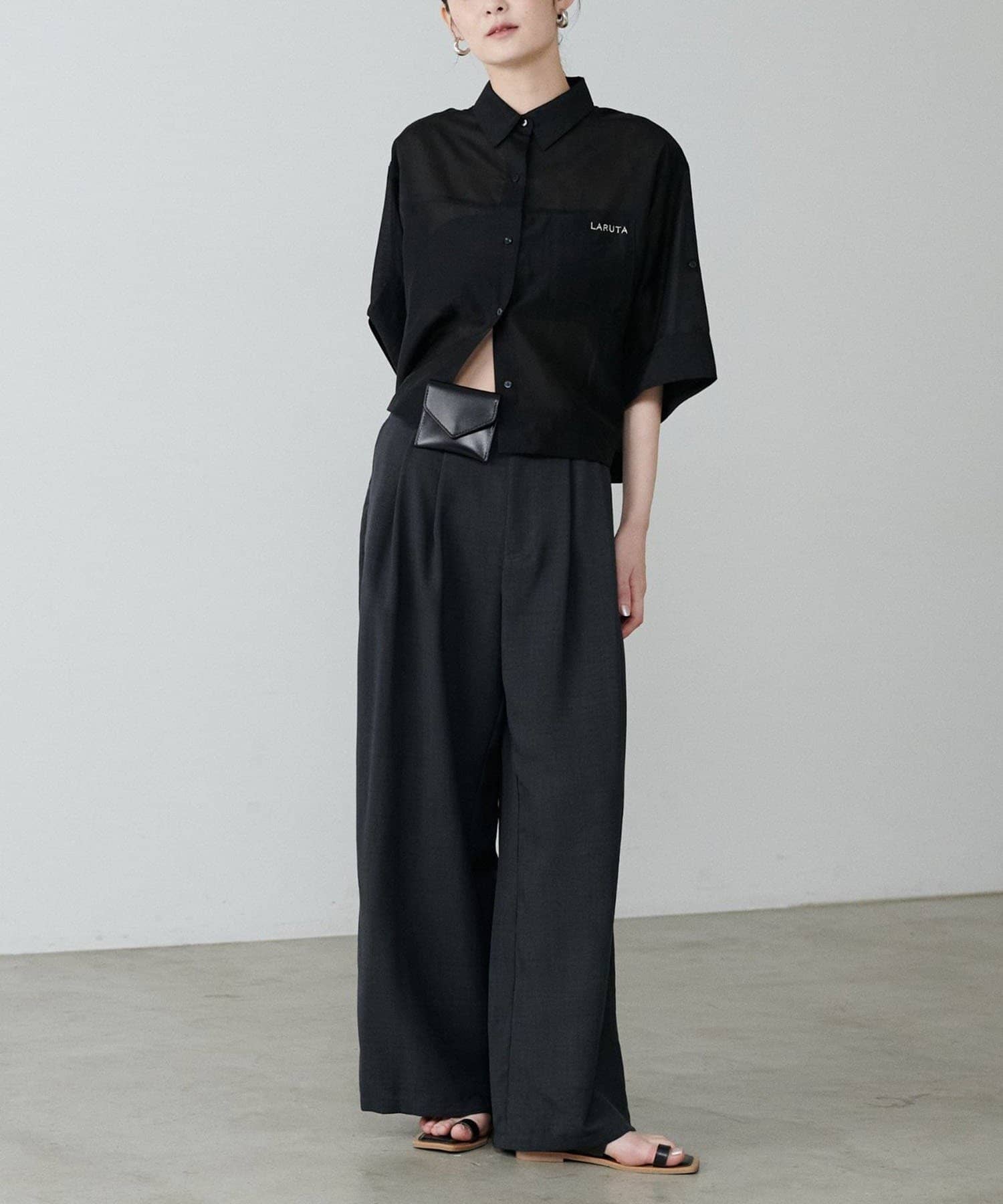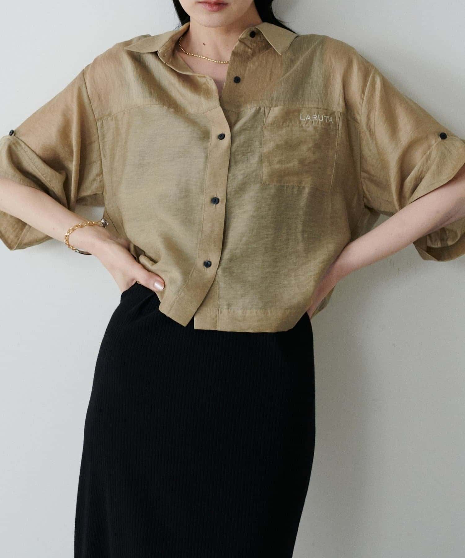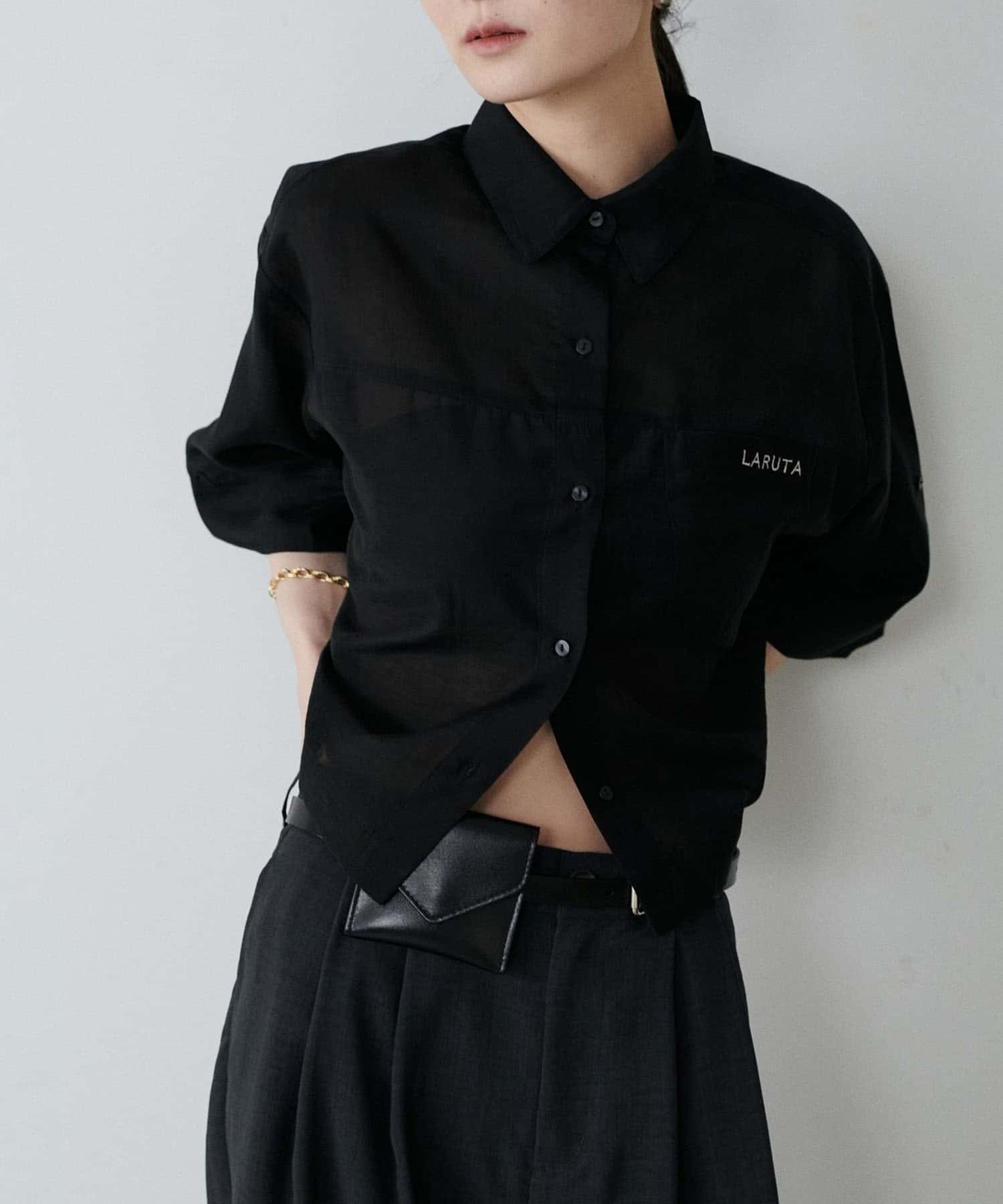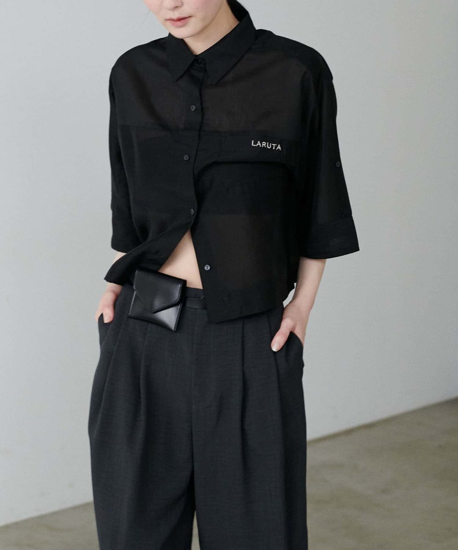 【LARUTA】シアー半袖刺繍ロゴシャツ