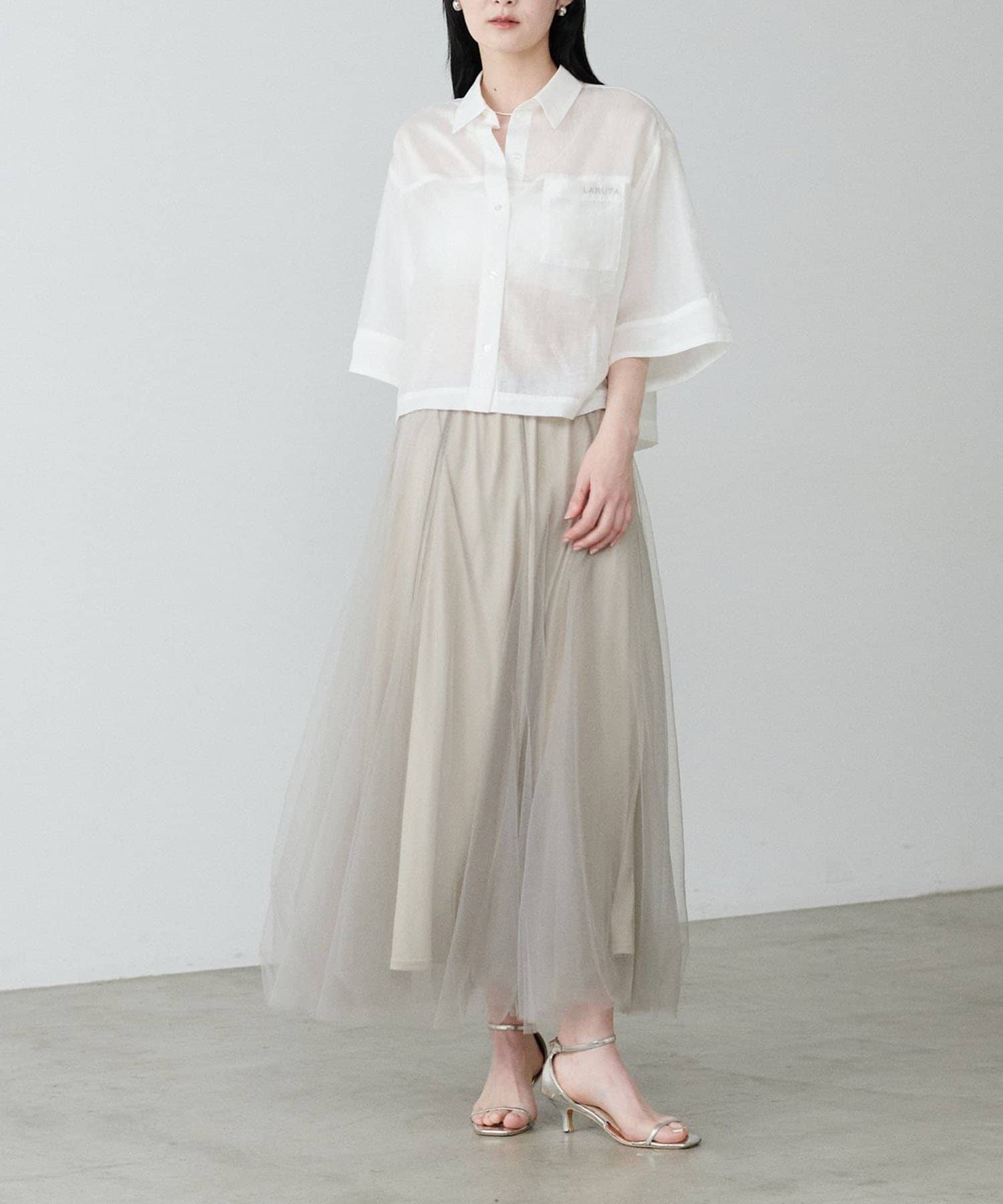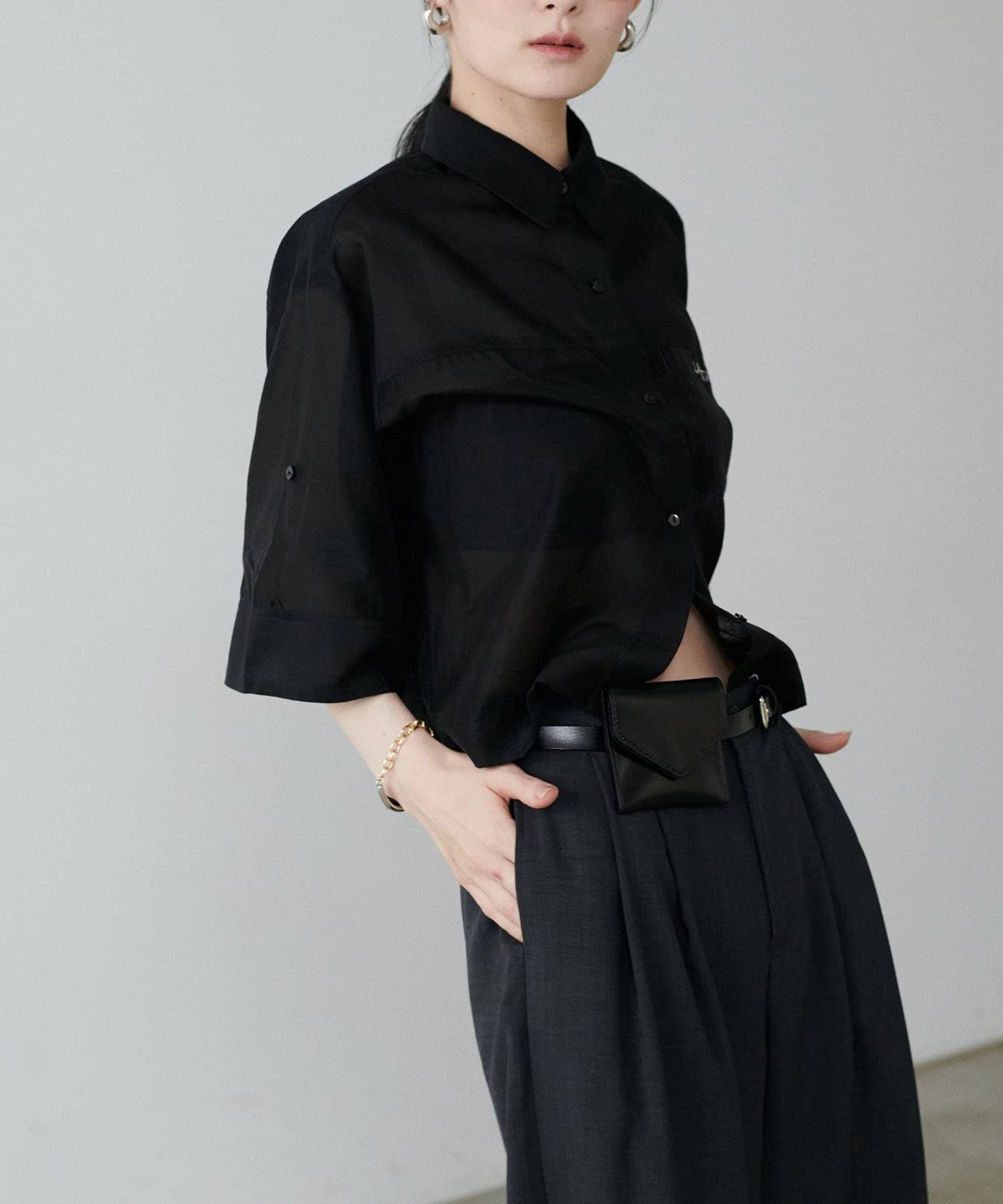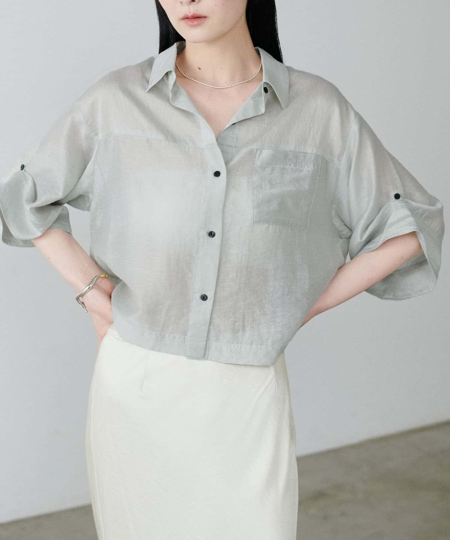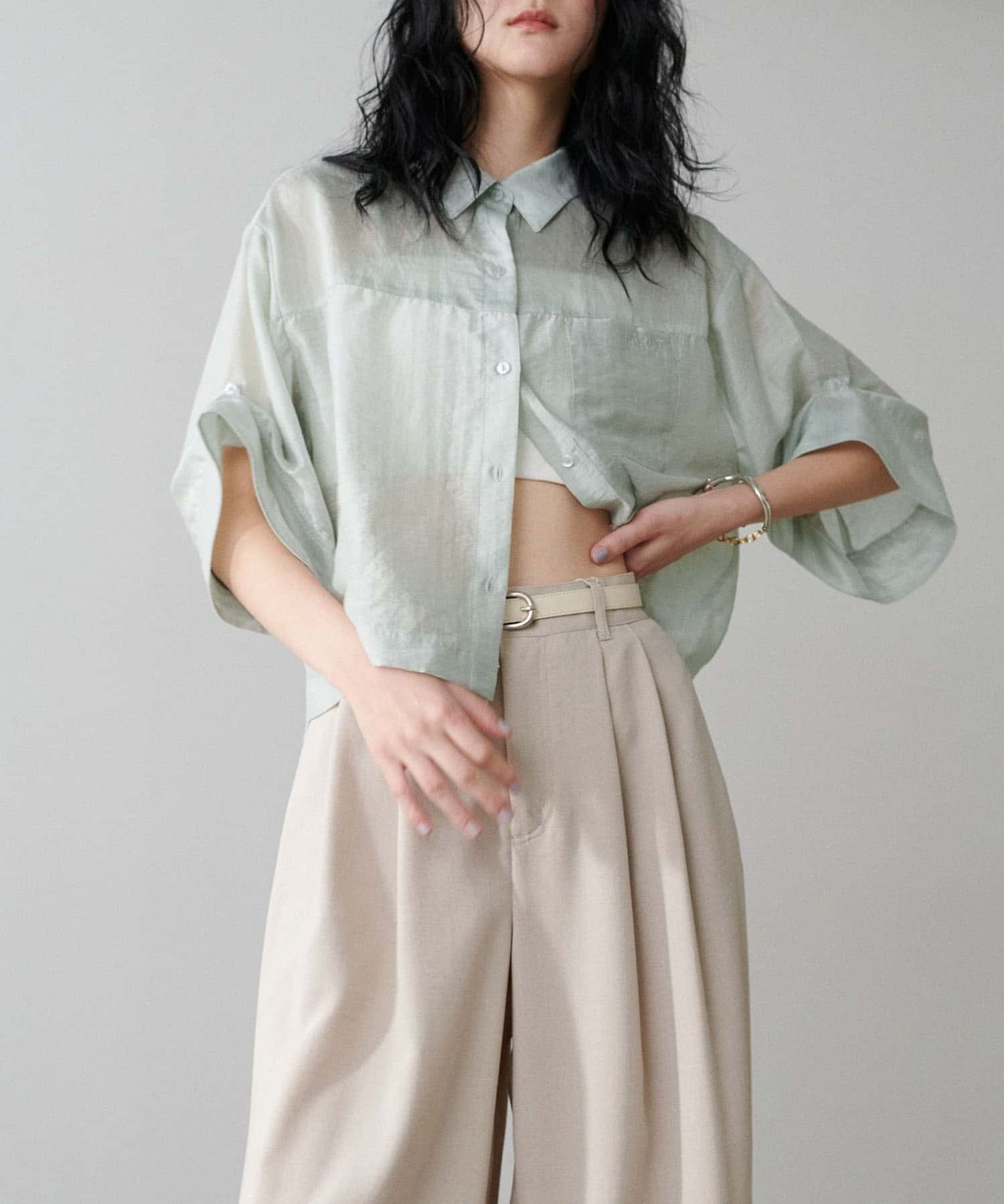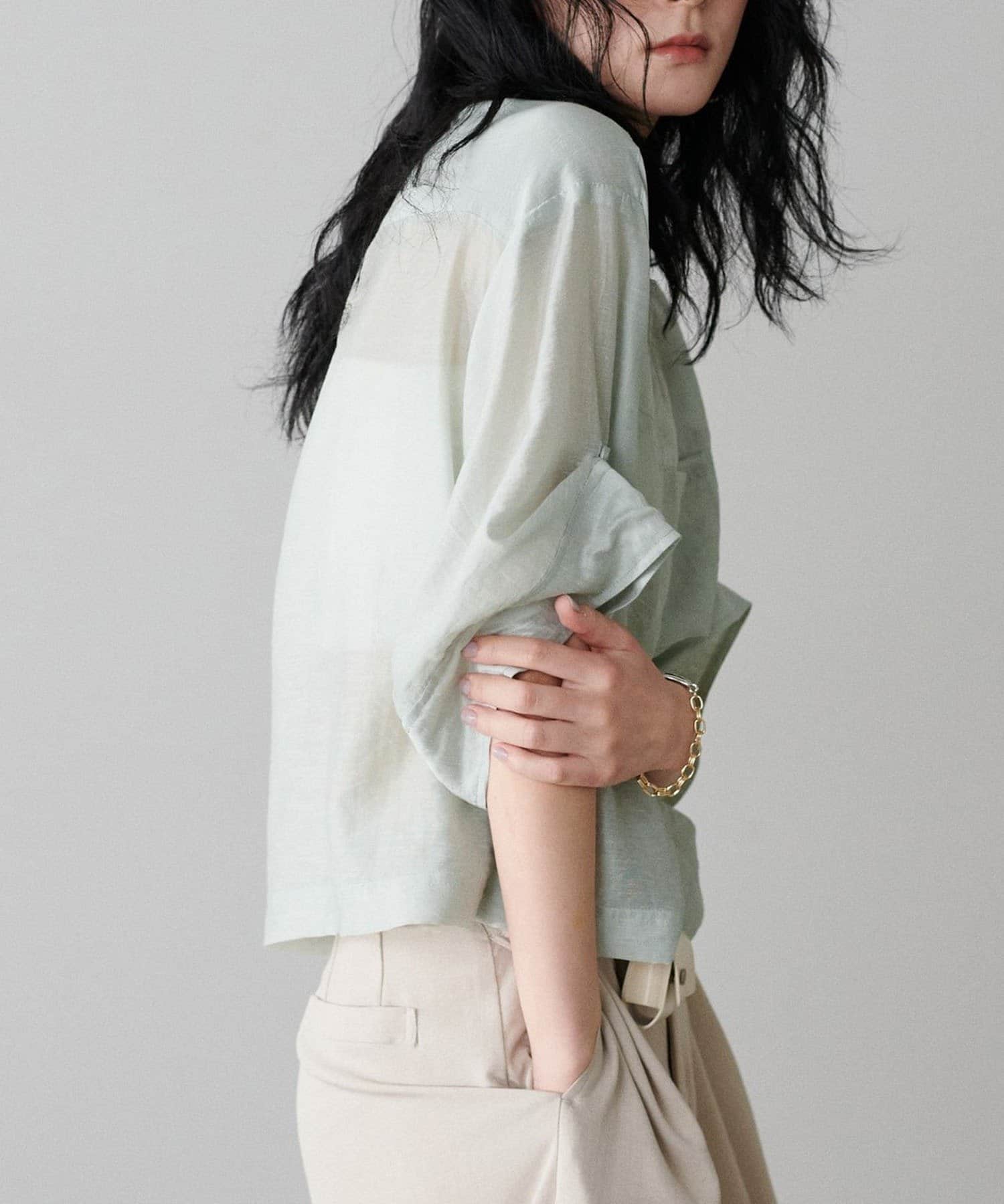 上品な透け感が涼し気な印象を与えるシアーシャツ。