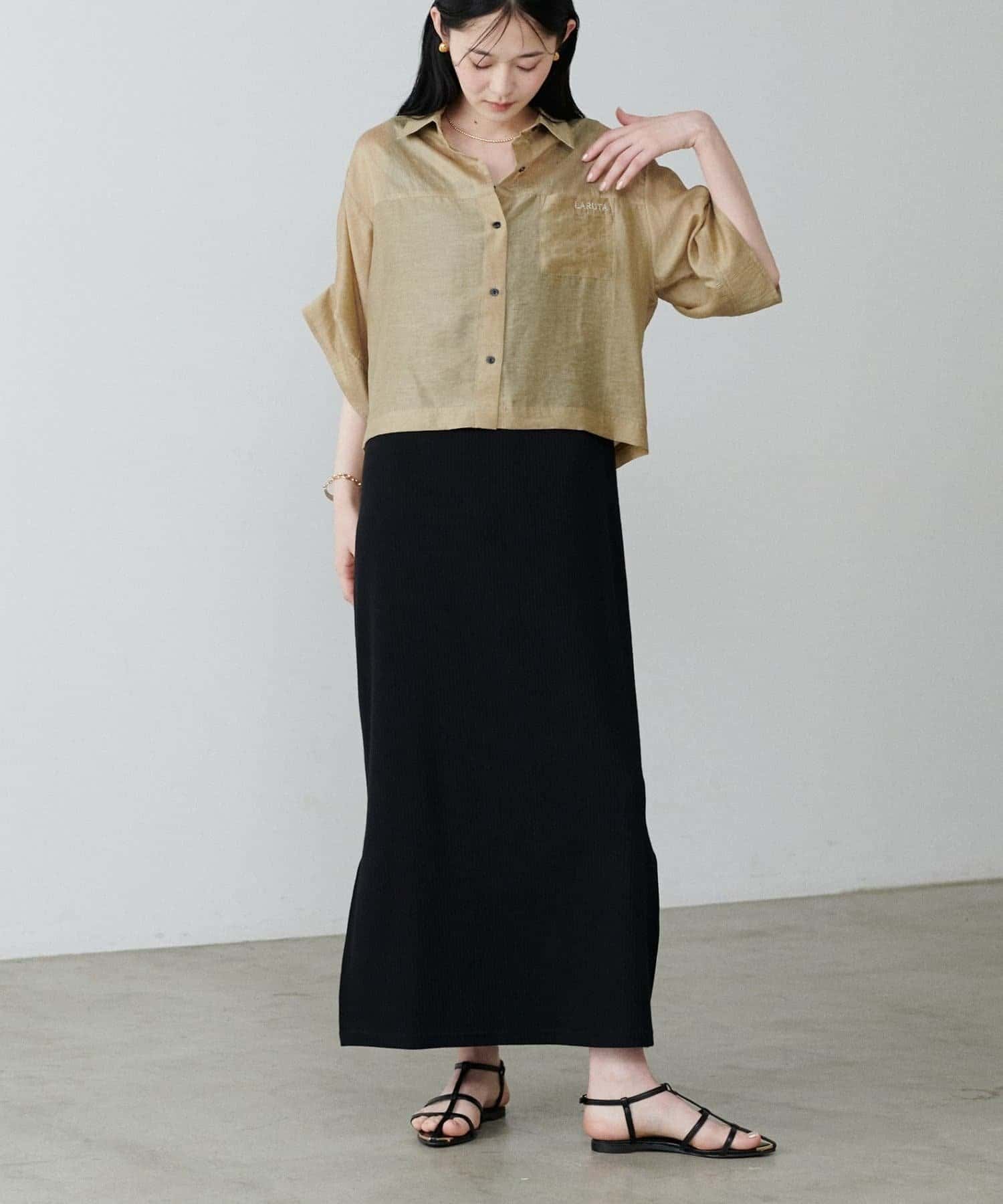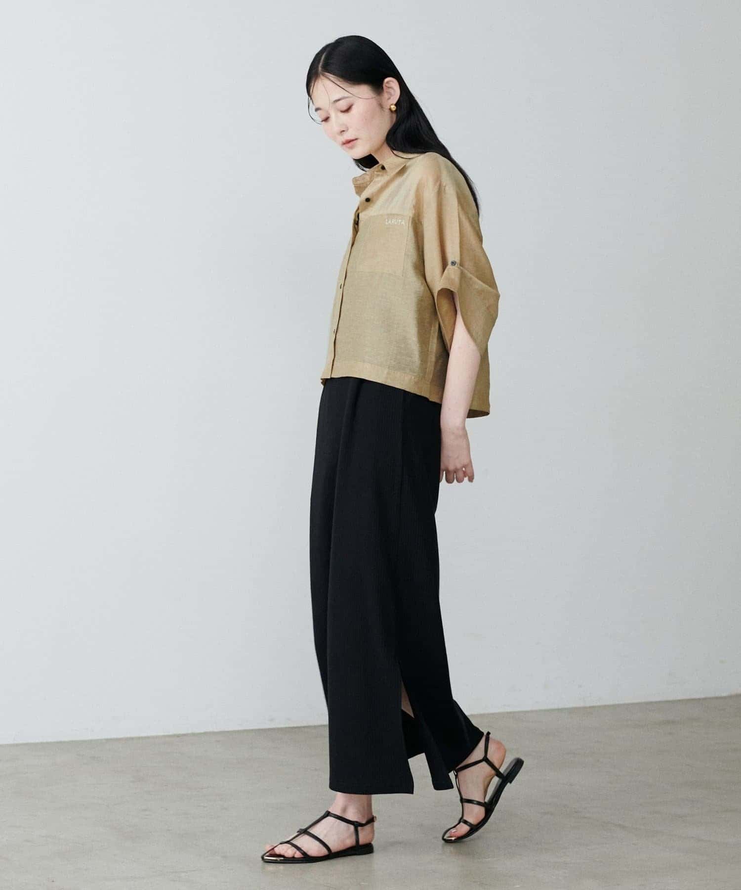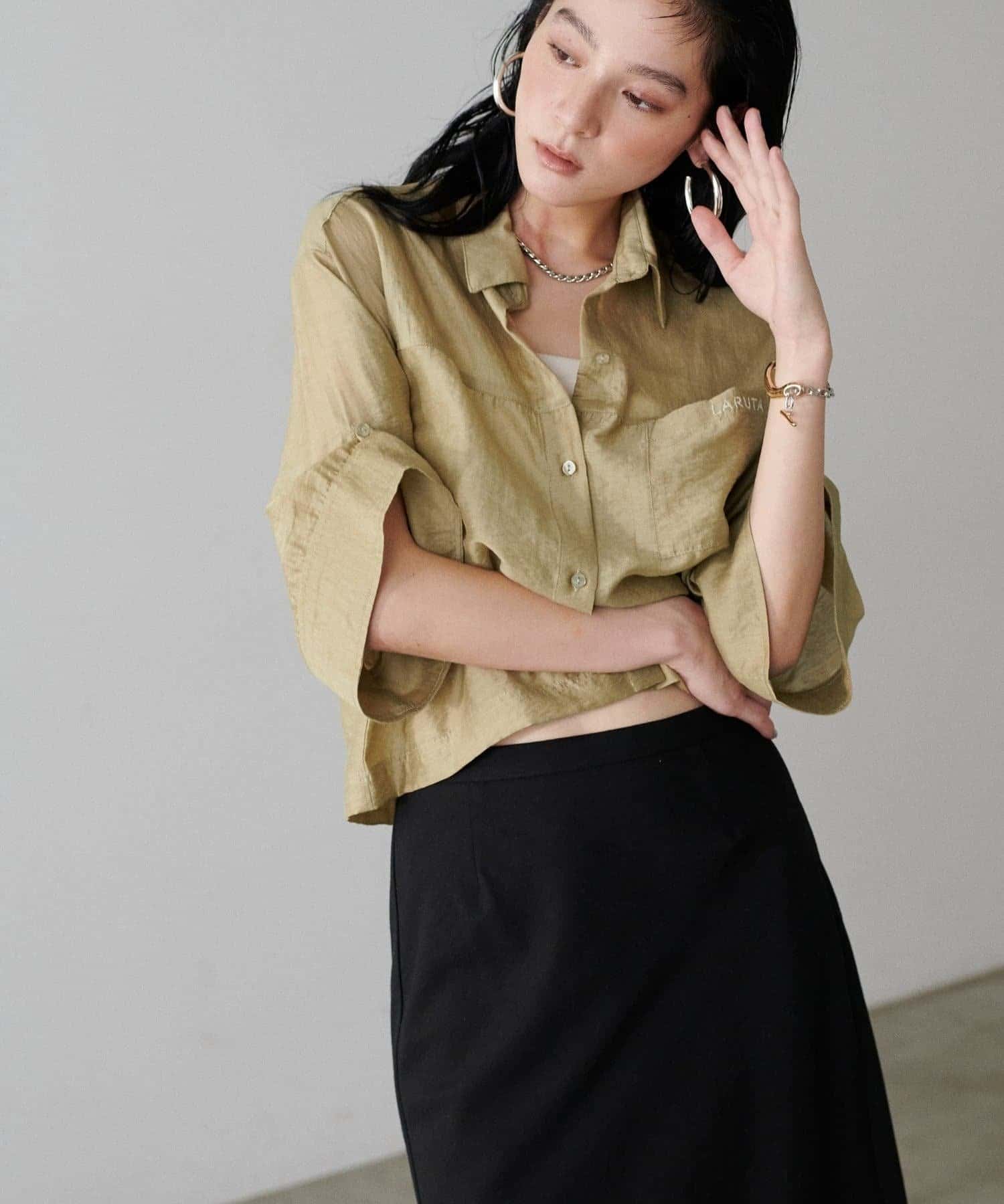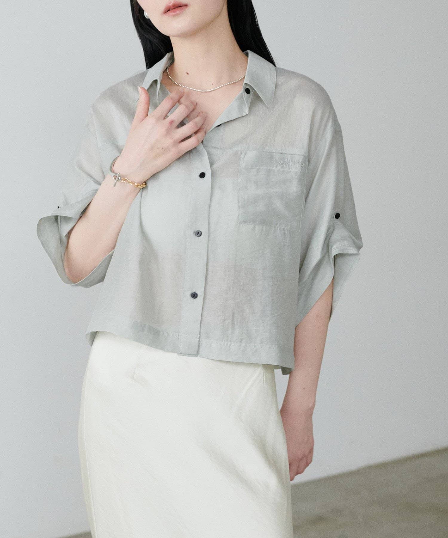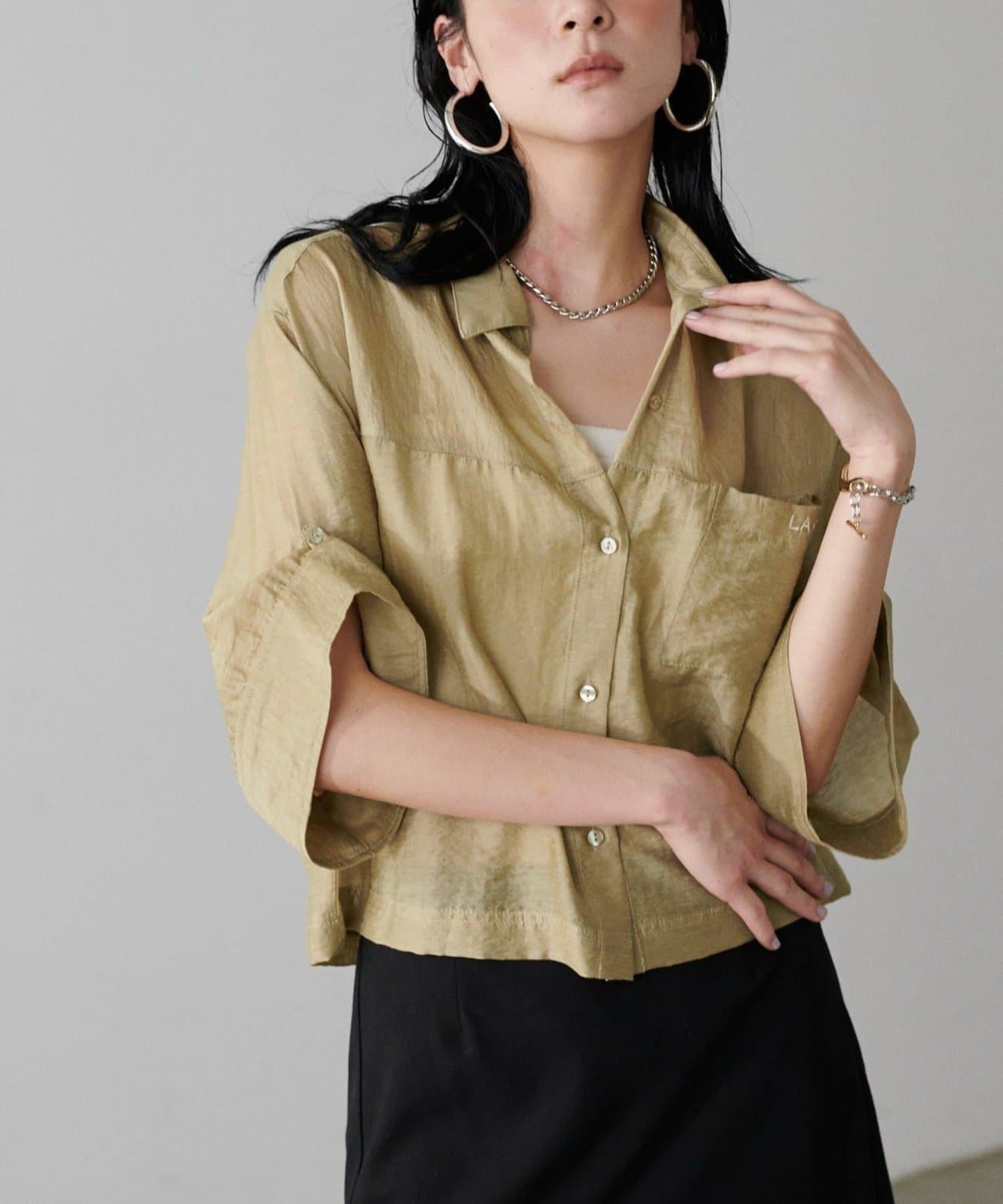 上品な透け感が涼し気な印象を与えるシアーシャツ。