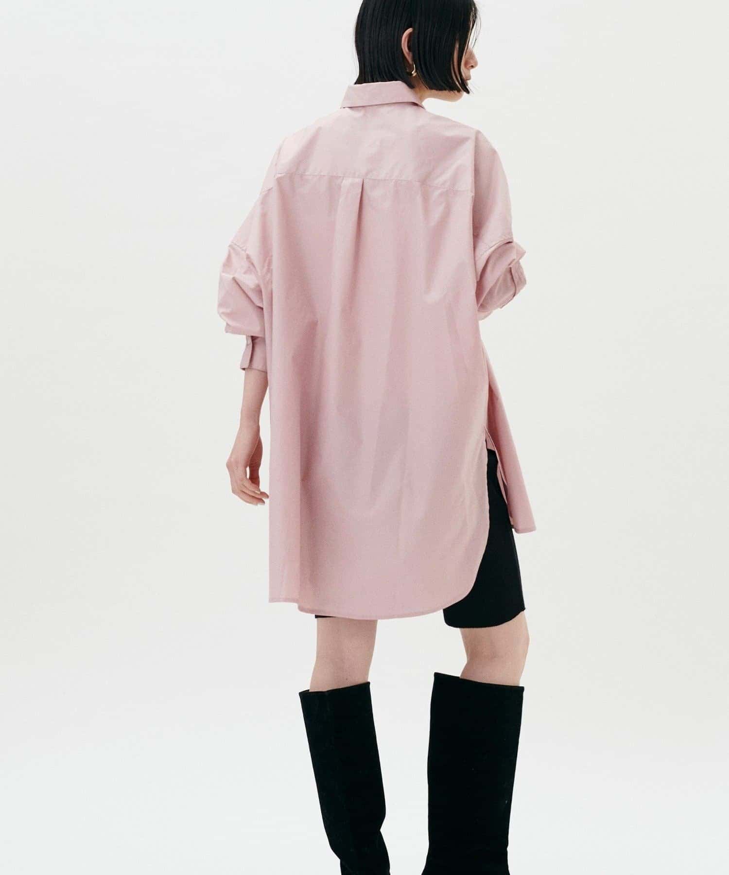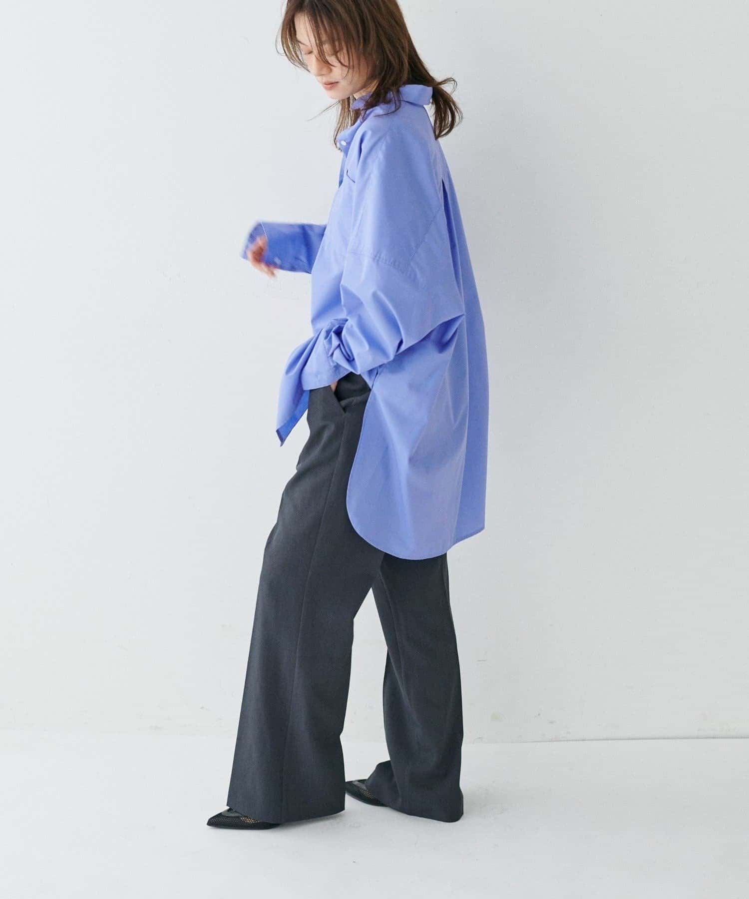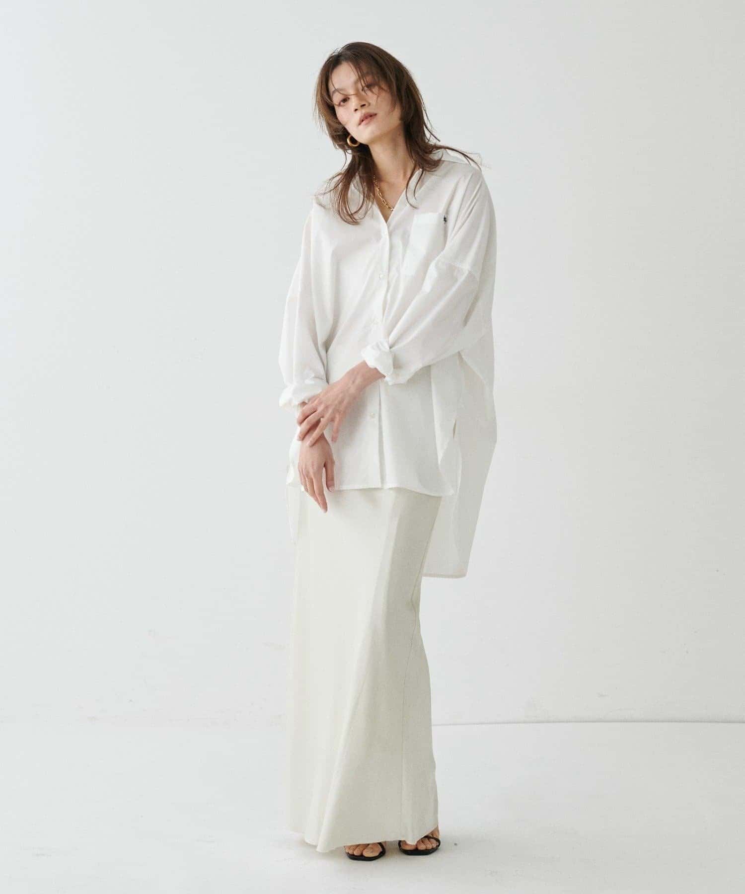 クリーンで爽やかな印象のレギュラーシャツを、身体が泳ぐような身幅と