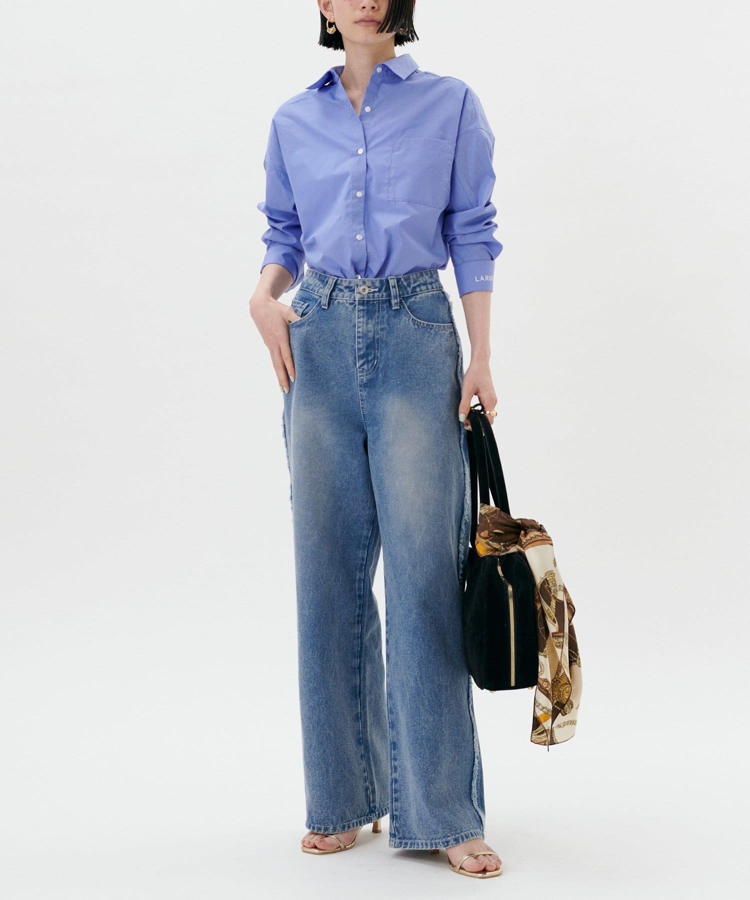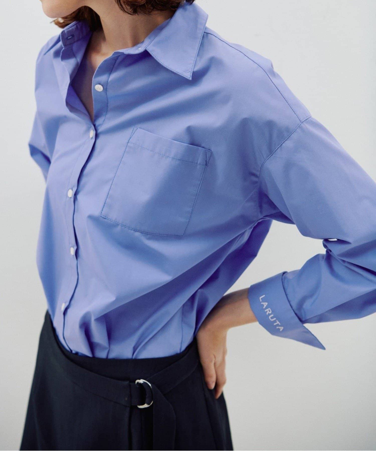 TOP > NICE CLAUP / OLIVE des OLIVE OUTLET > レディース > トップス > シャツ/ブラウス(ボタン) > 【LARUTA】ちびロゴ刺しゅうベーシックシャツ