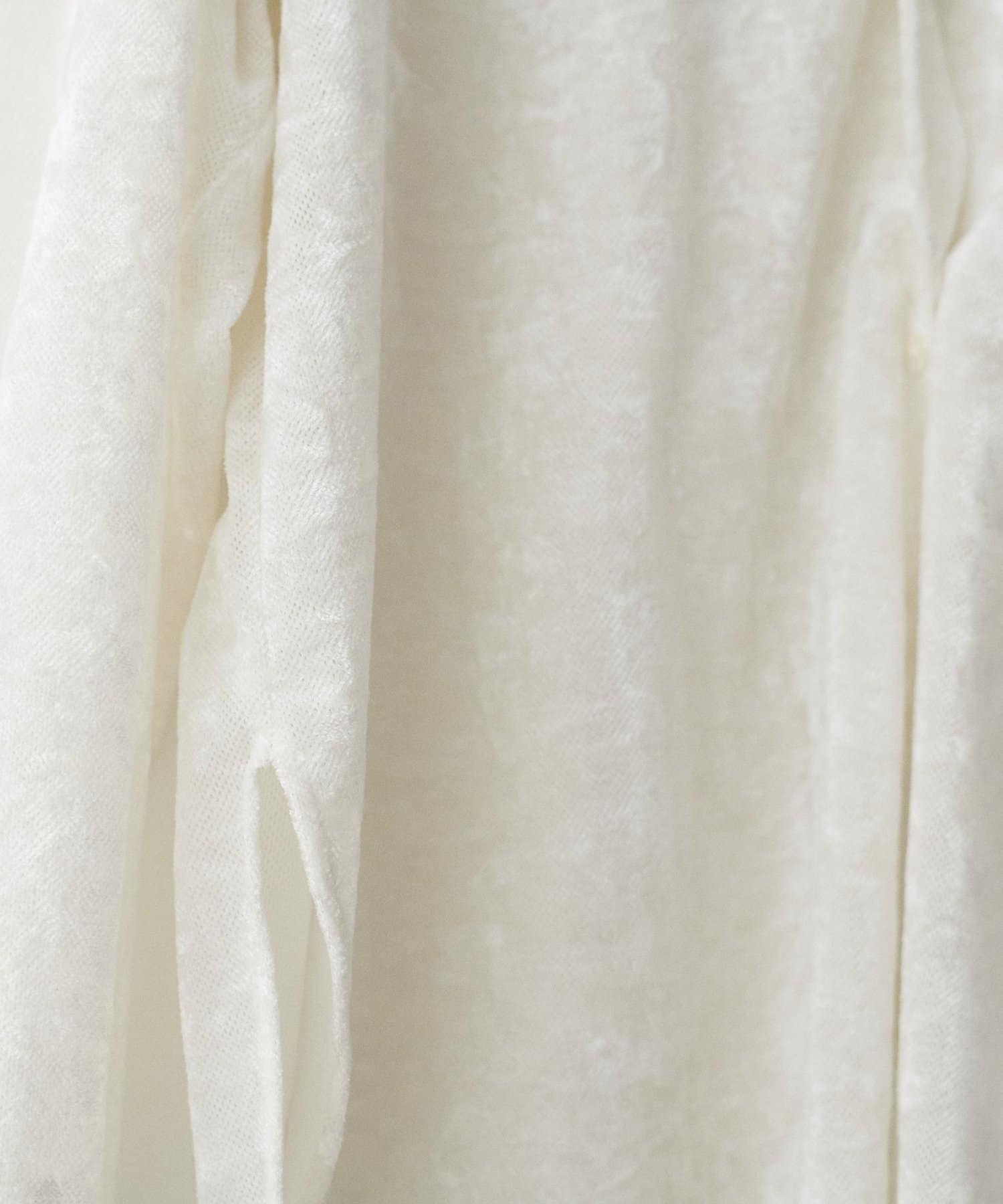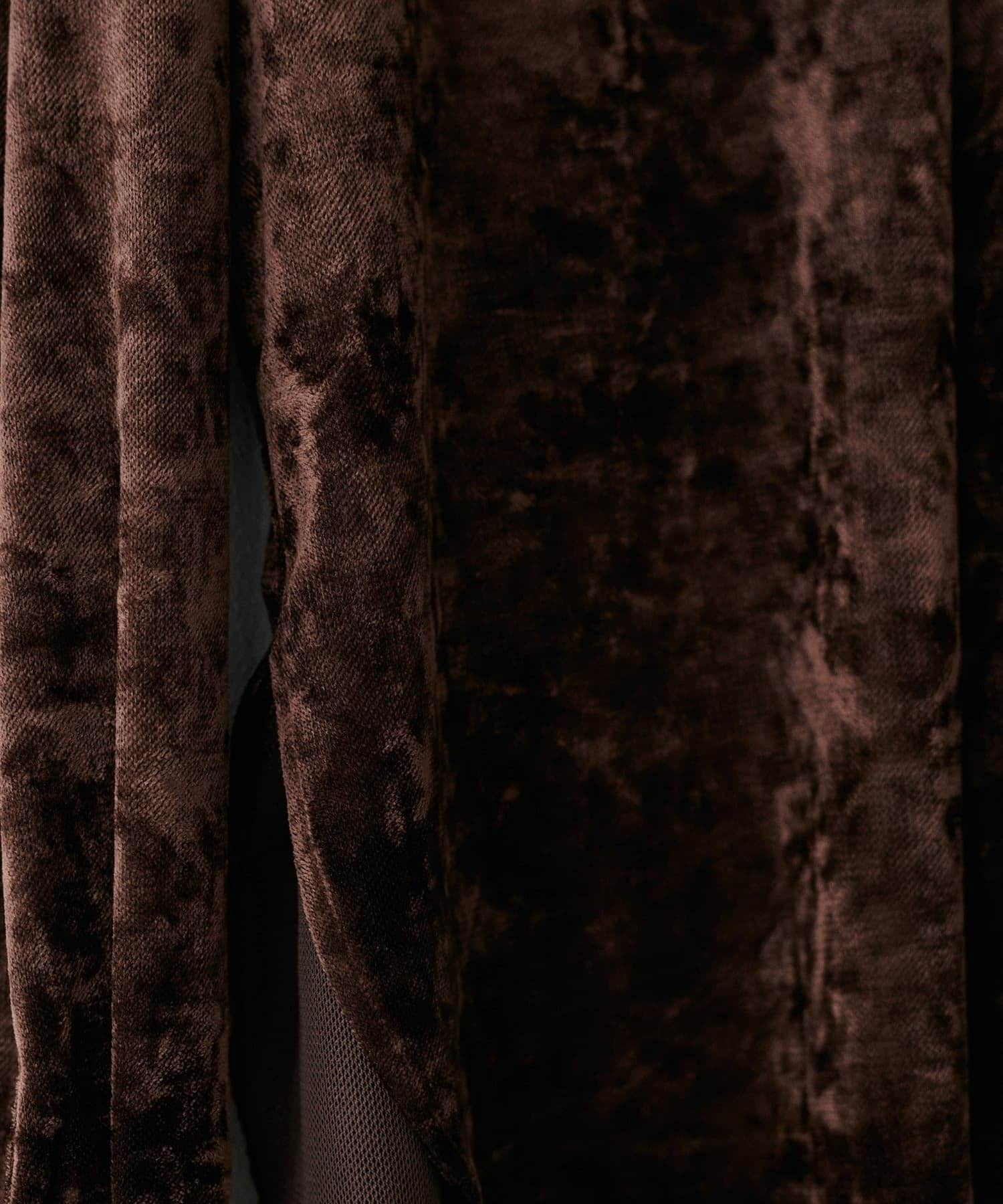 シアーメッシュの透け感と、ベロア調の上品な光沢を兼ね備えた素材。