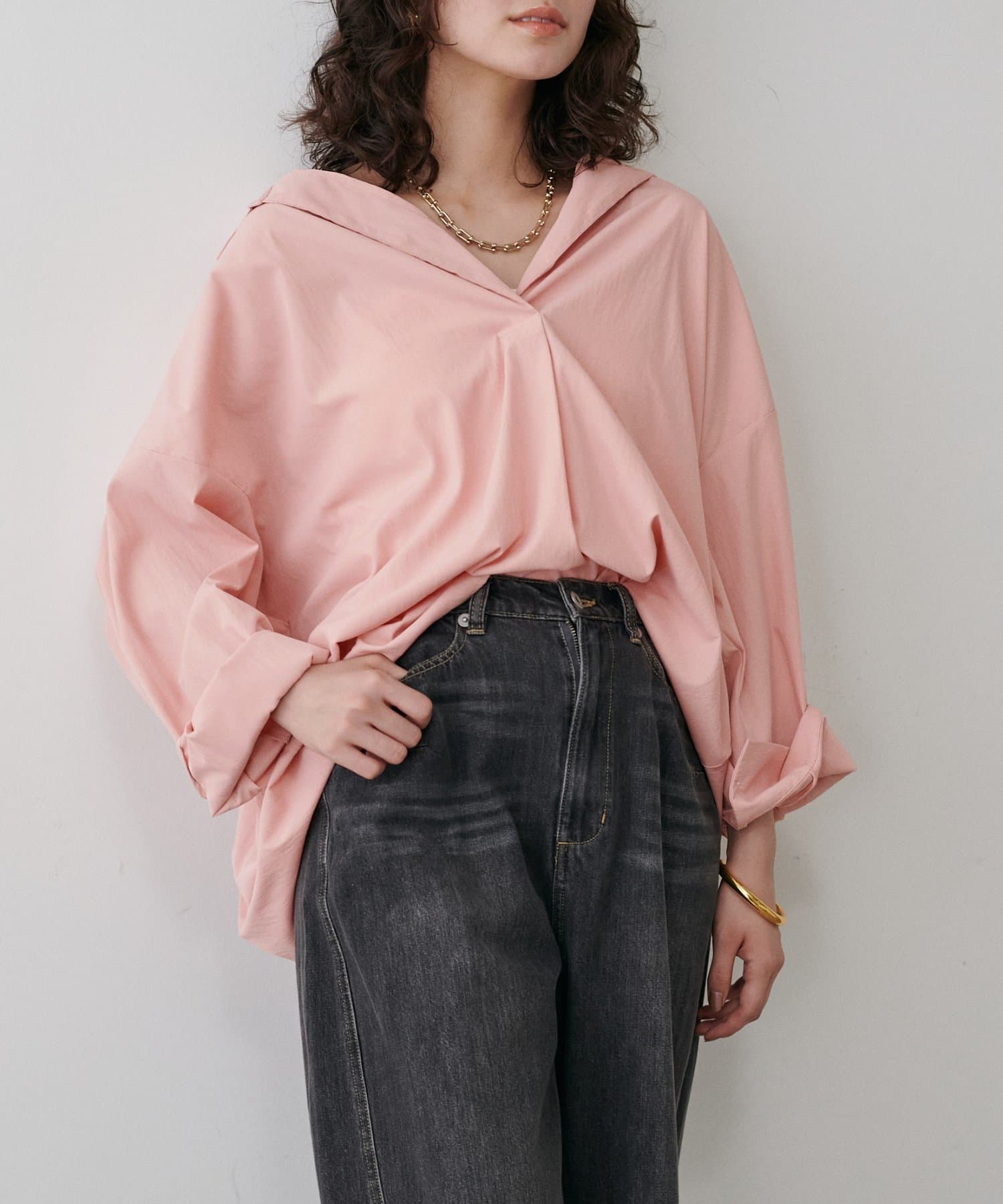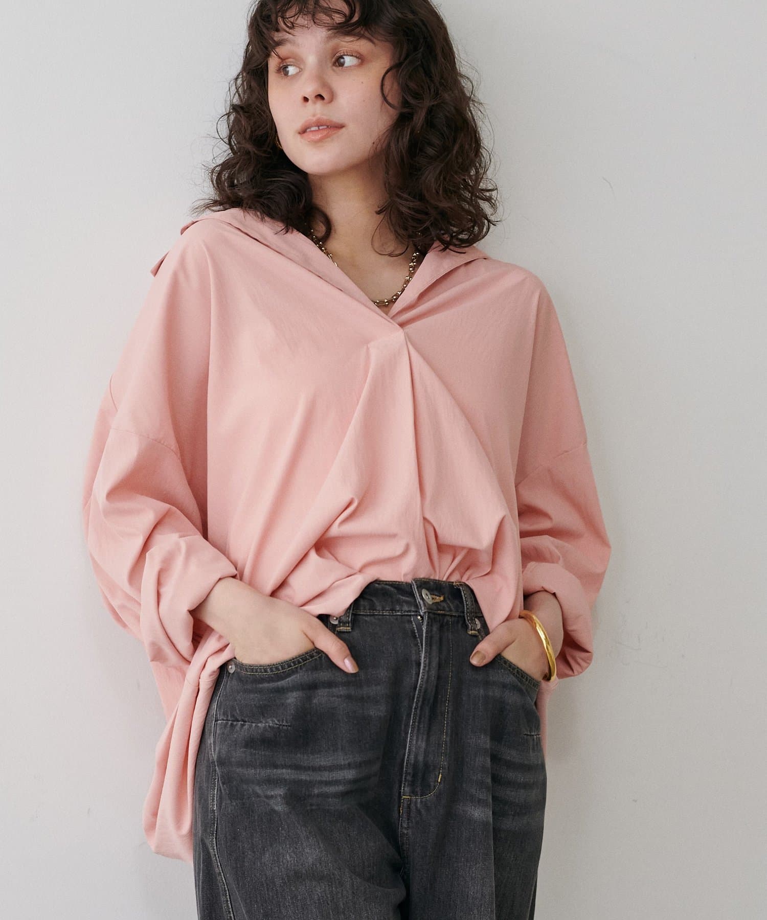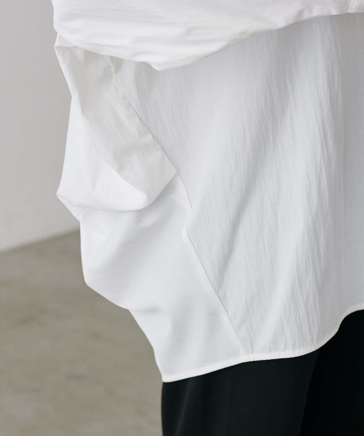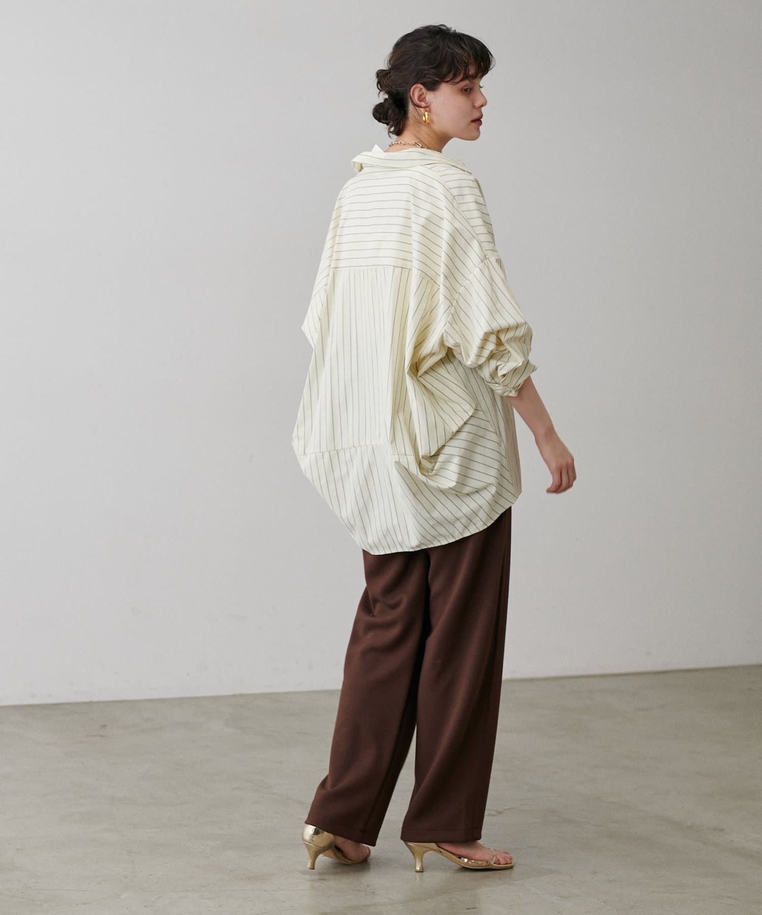 ゆったりとしたオーバーサイズで、脇線後ろのタックにより立体的なコクーンシルエットに。