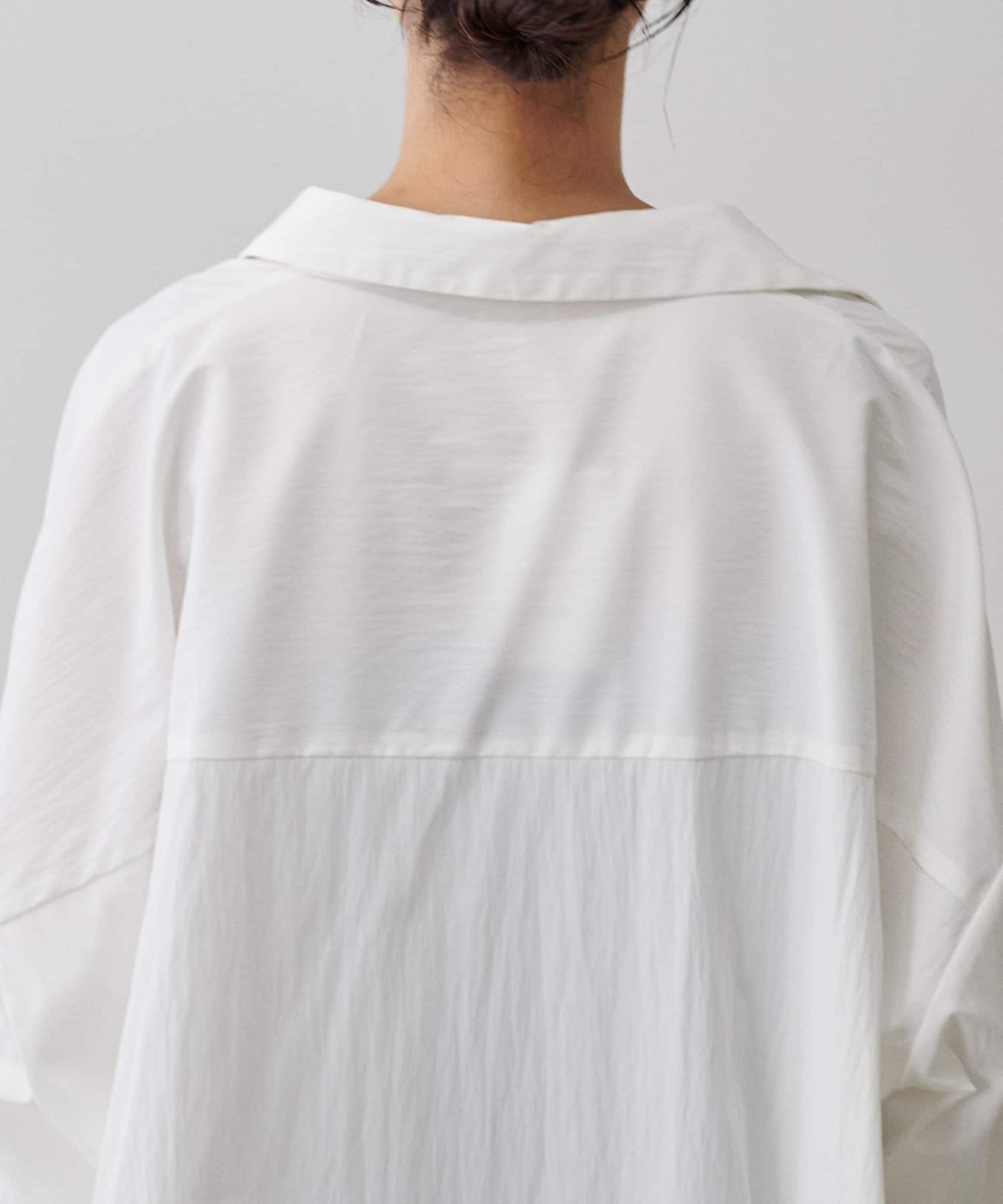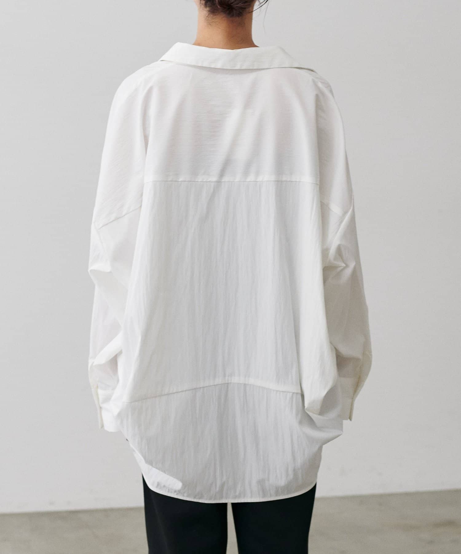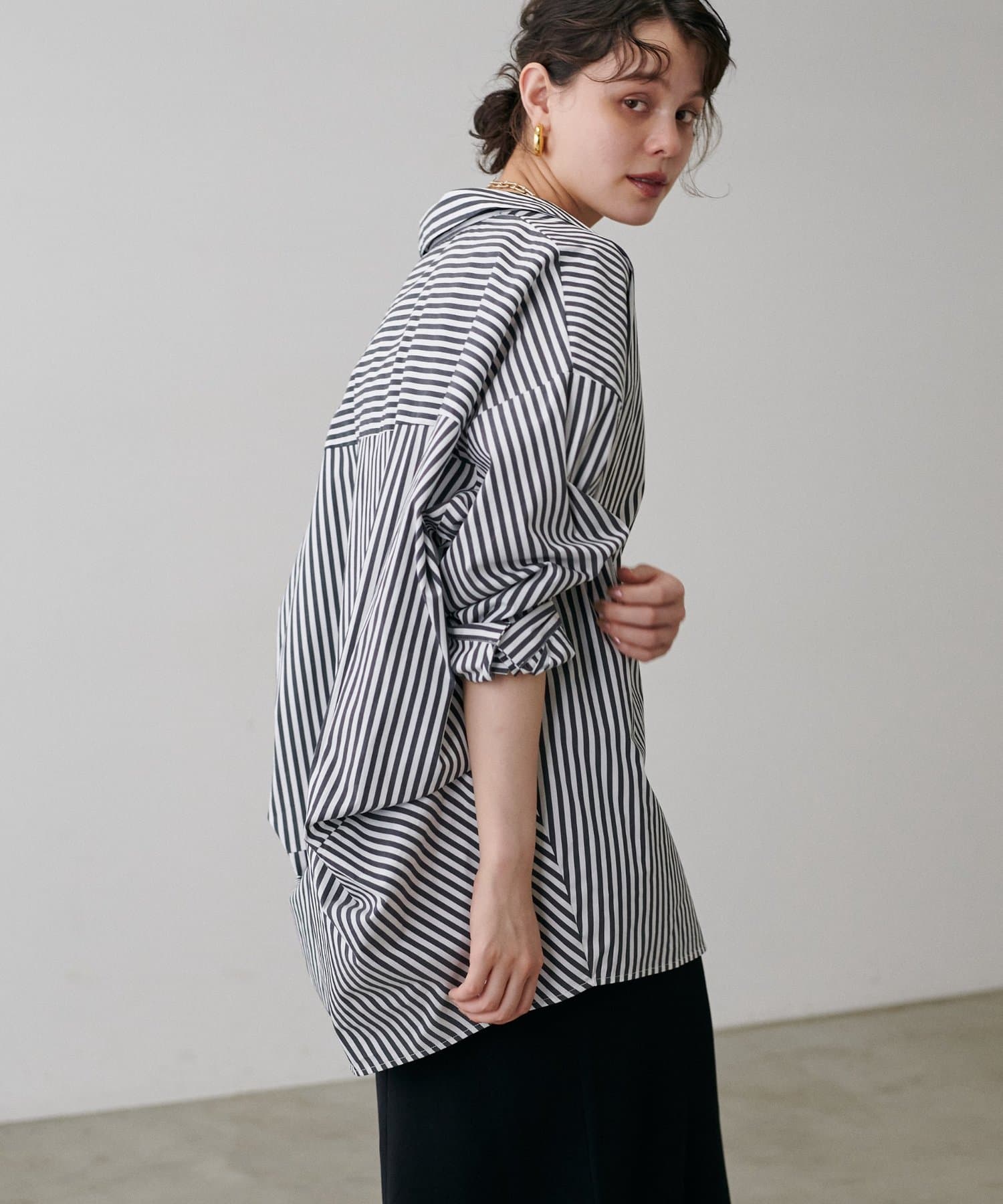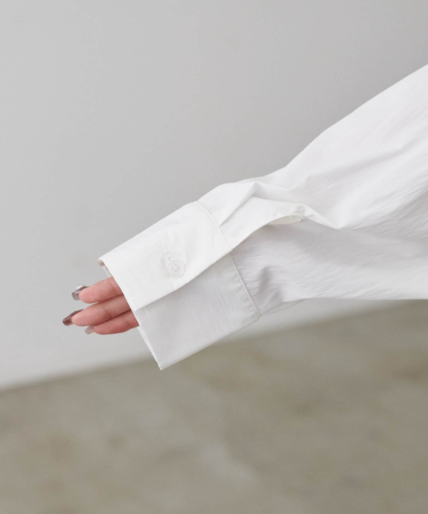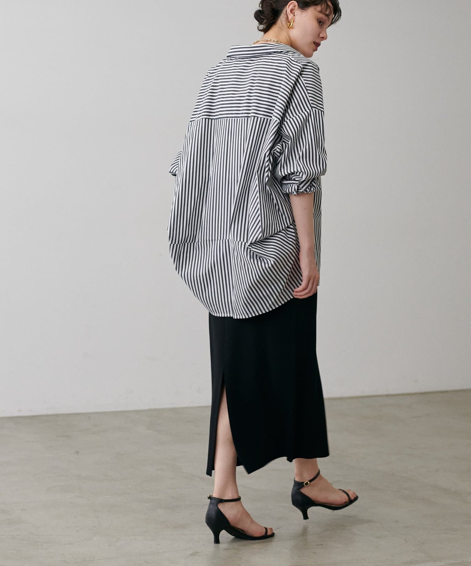 ゆったりとしたオーバーサイズで、脇線後ろのタックにより立体的なコクーンシルエットに。
