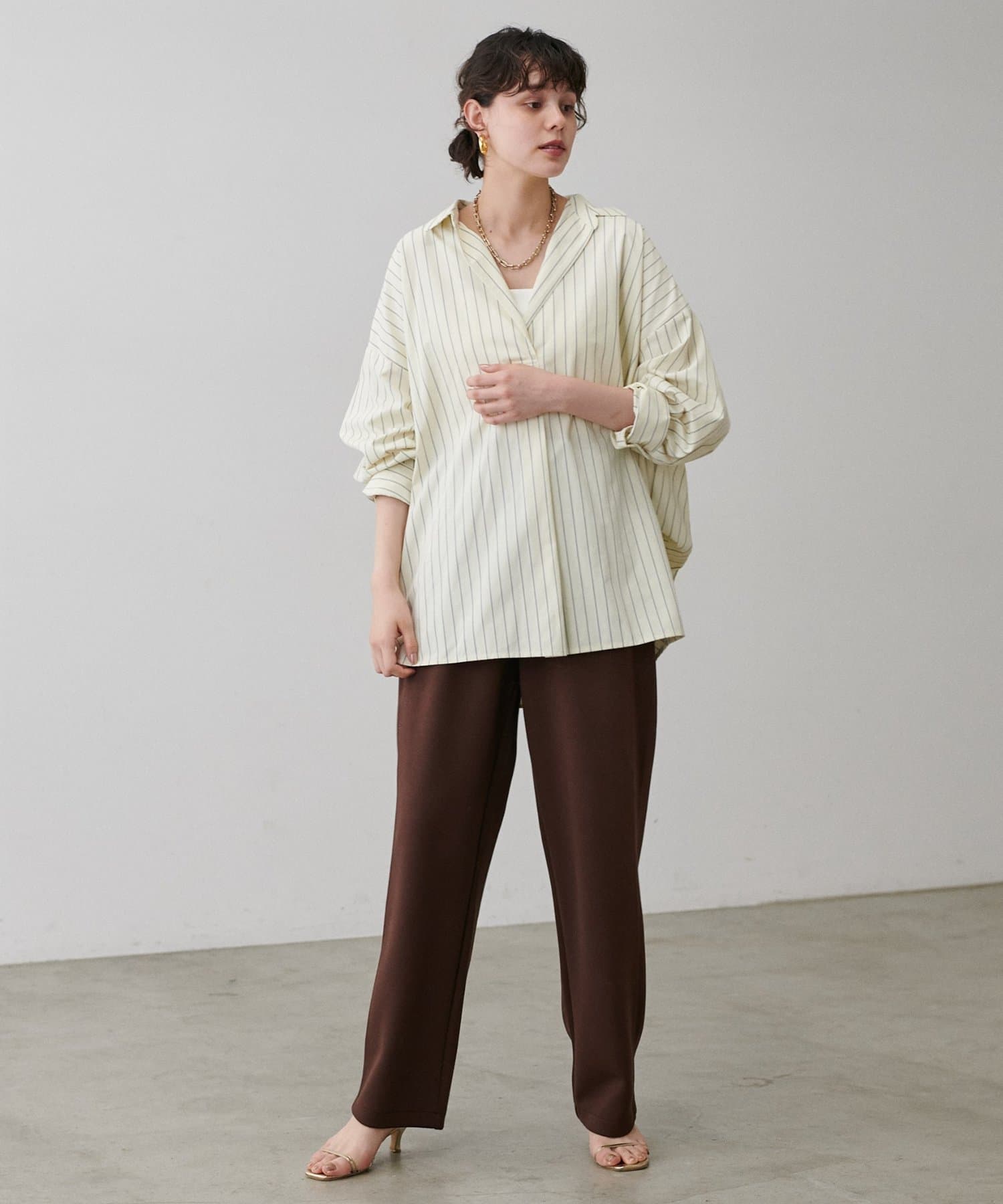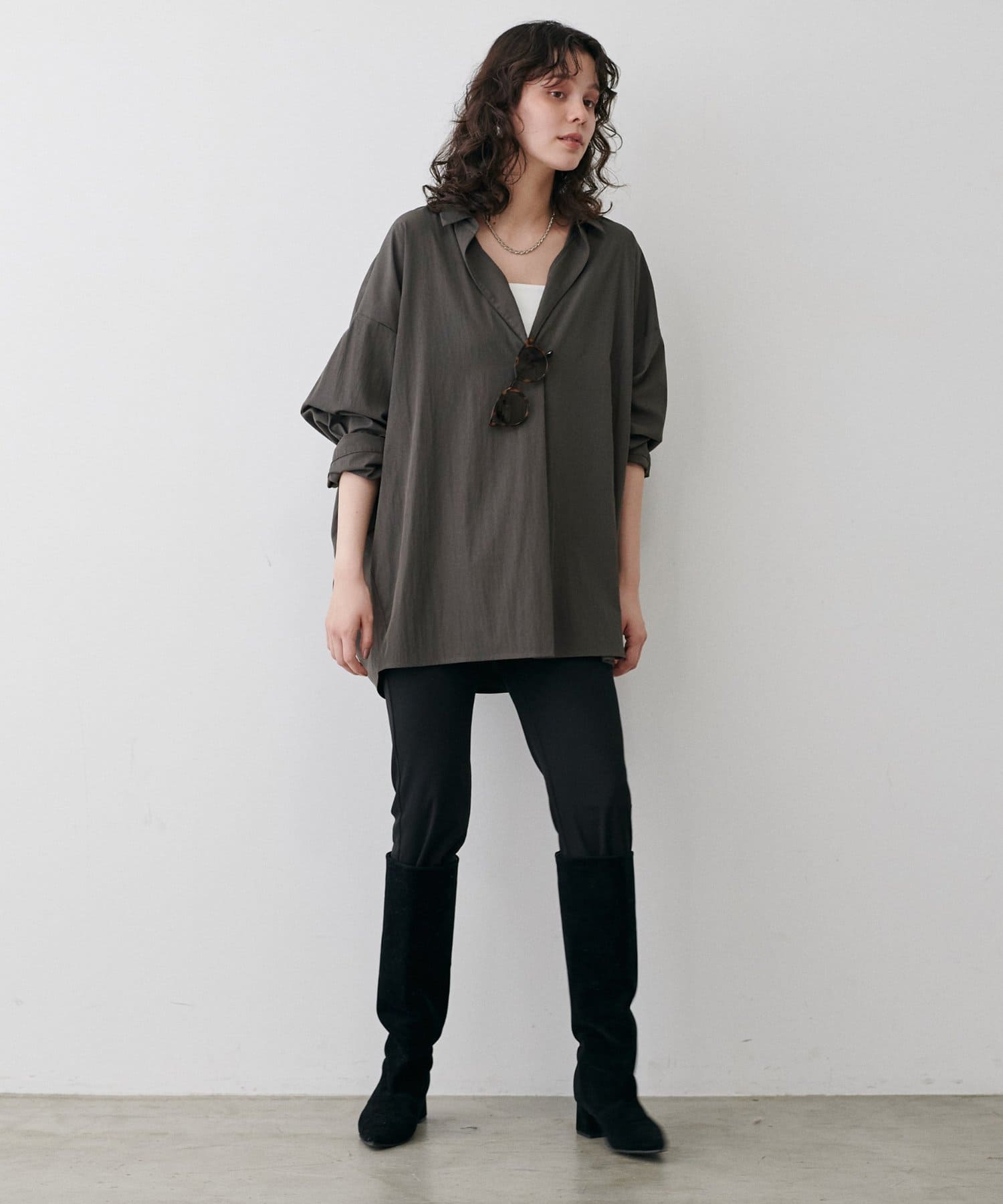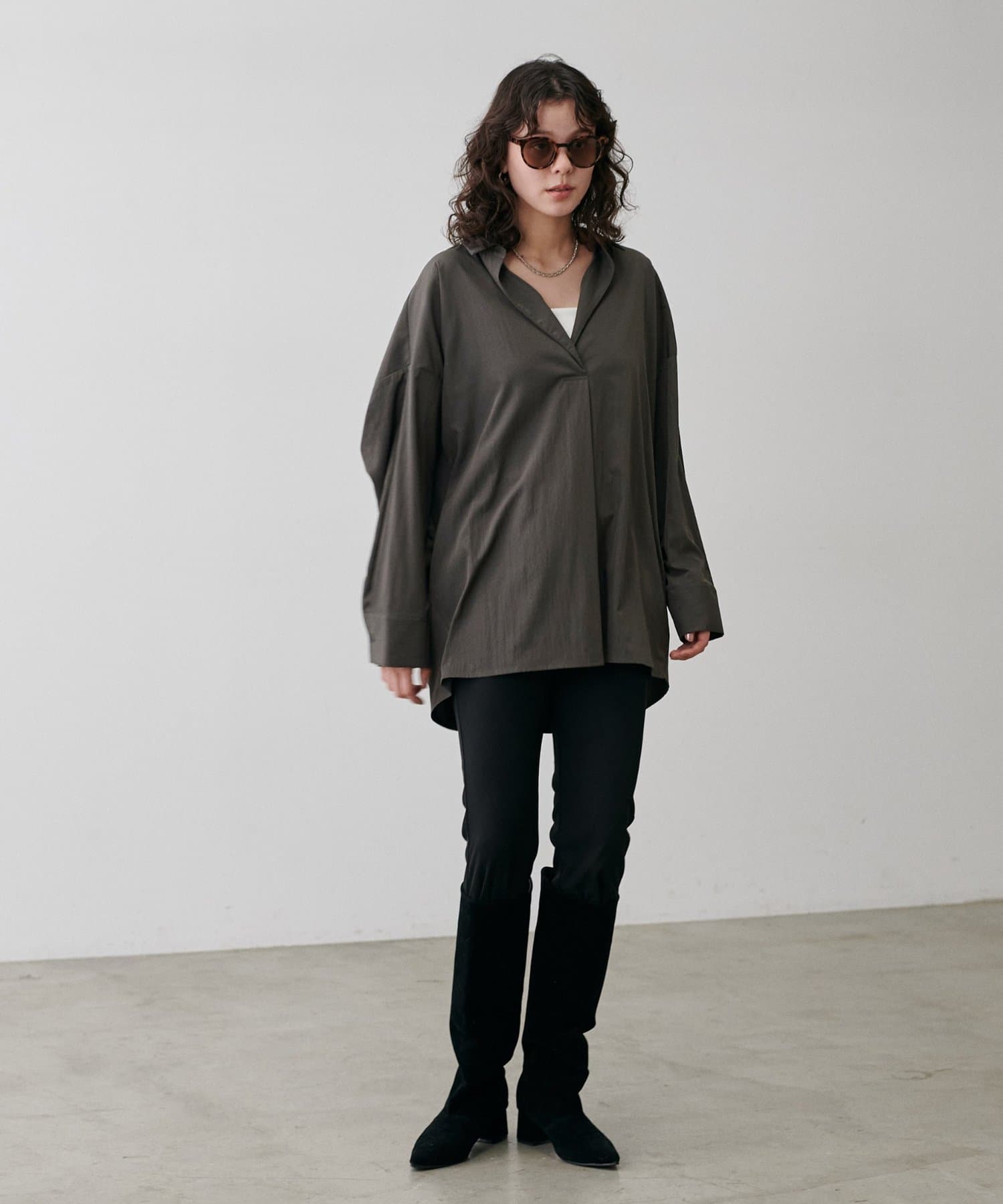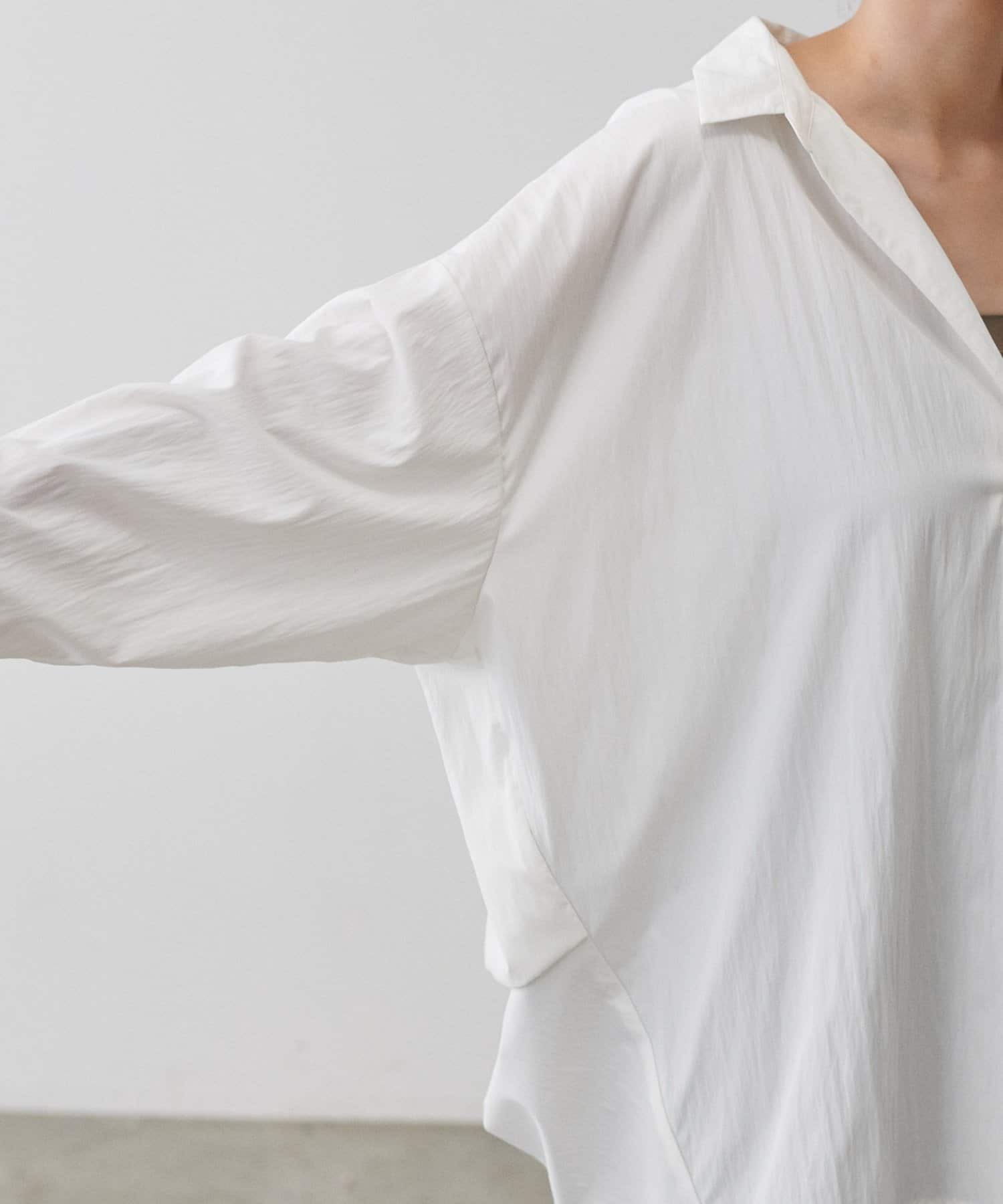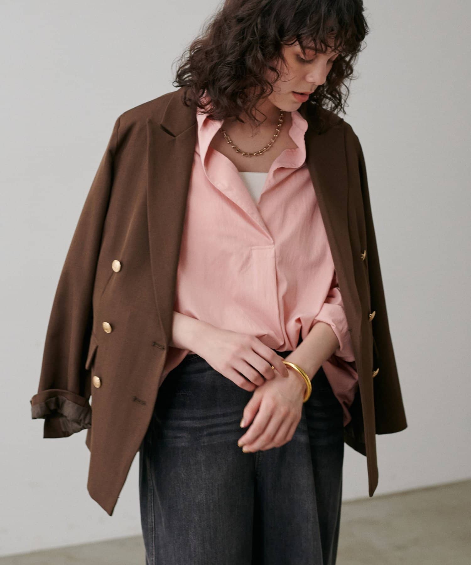 襟を抜いてニュアンス感のあるシルエットが楽しめます。