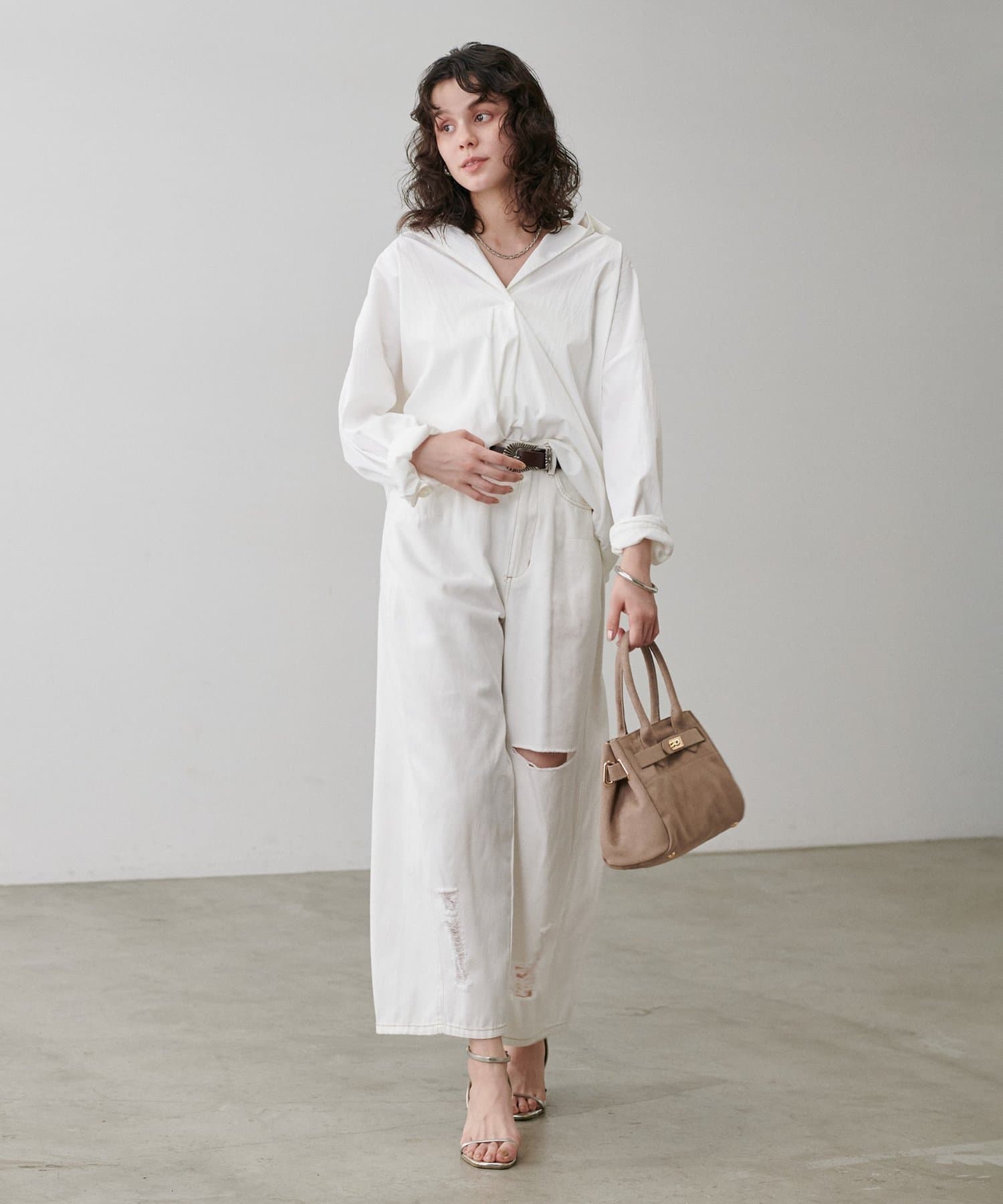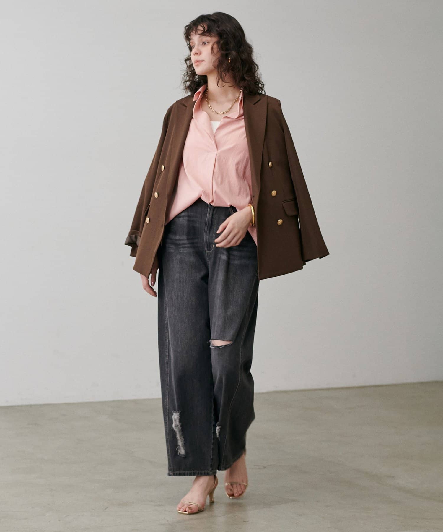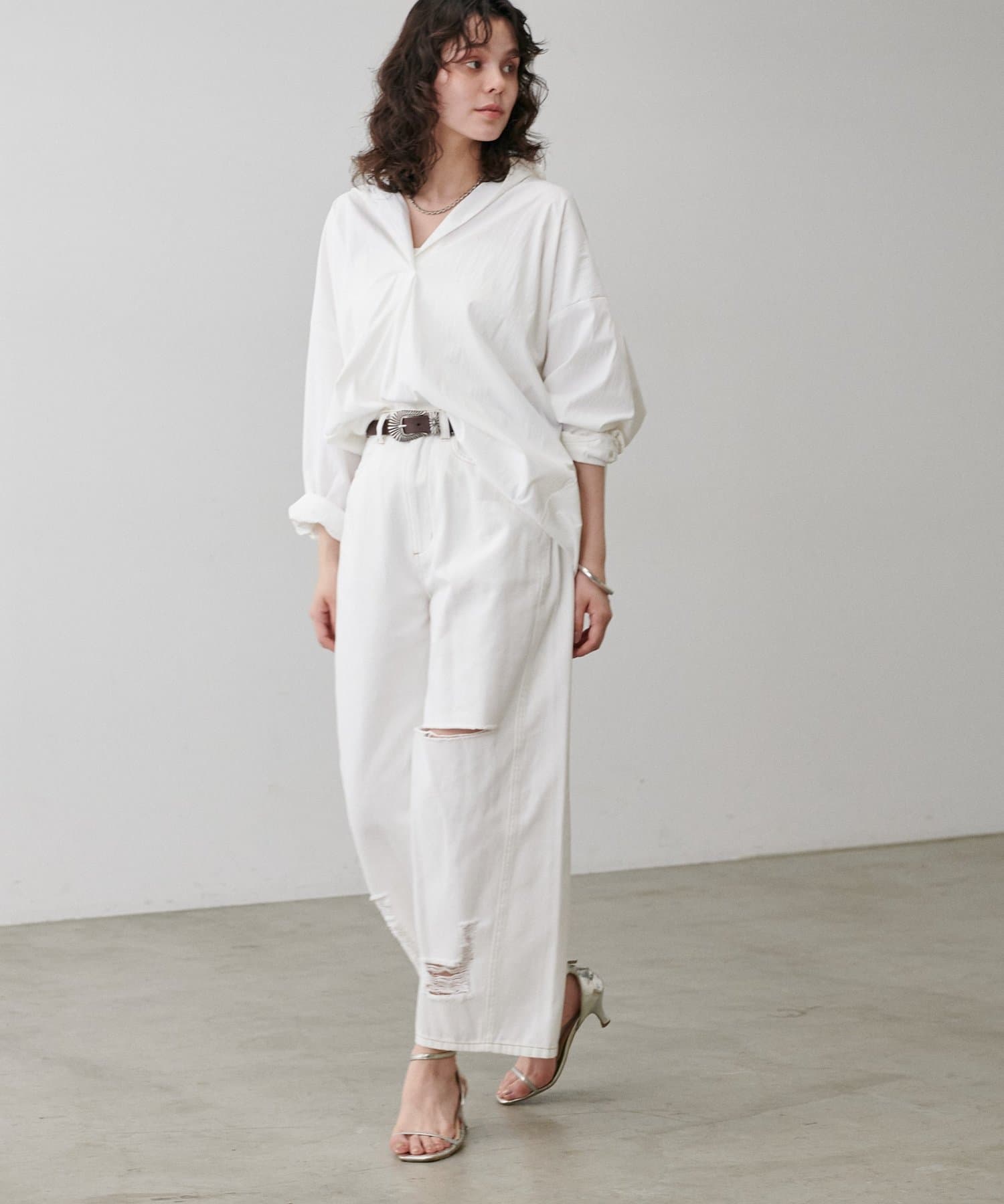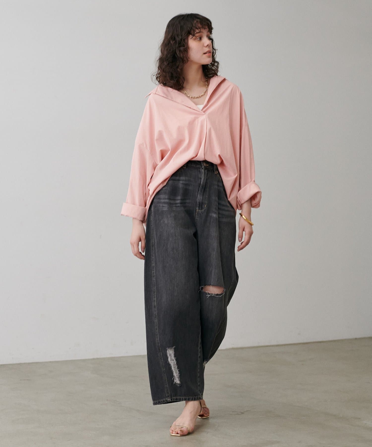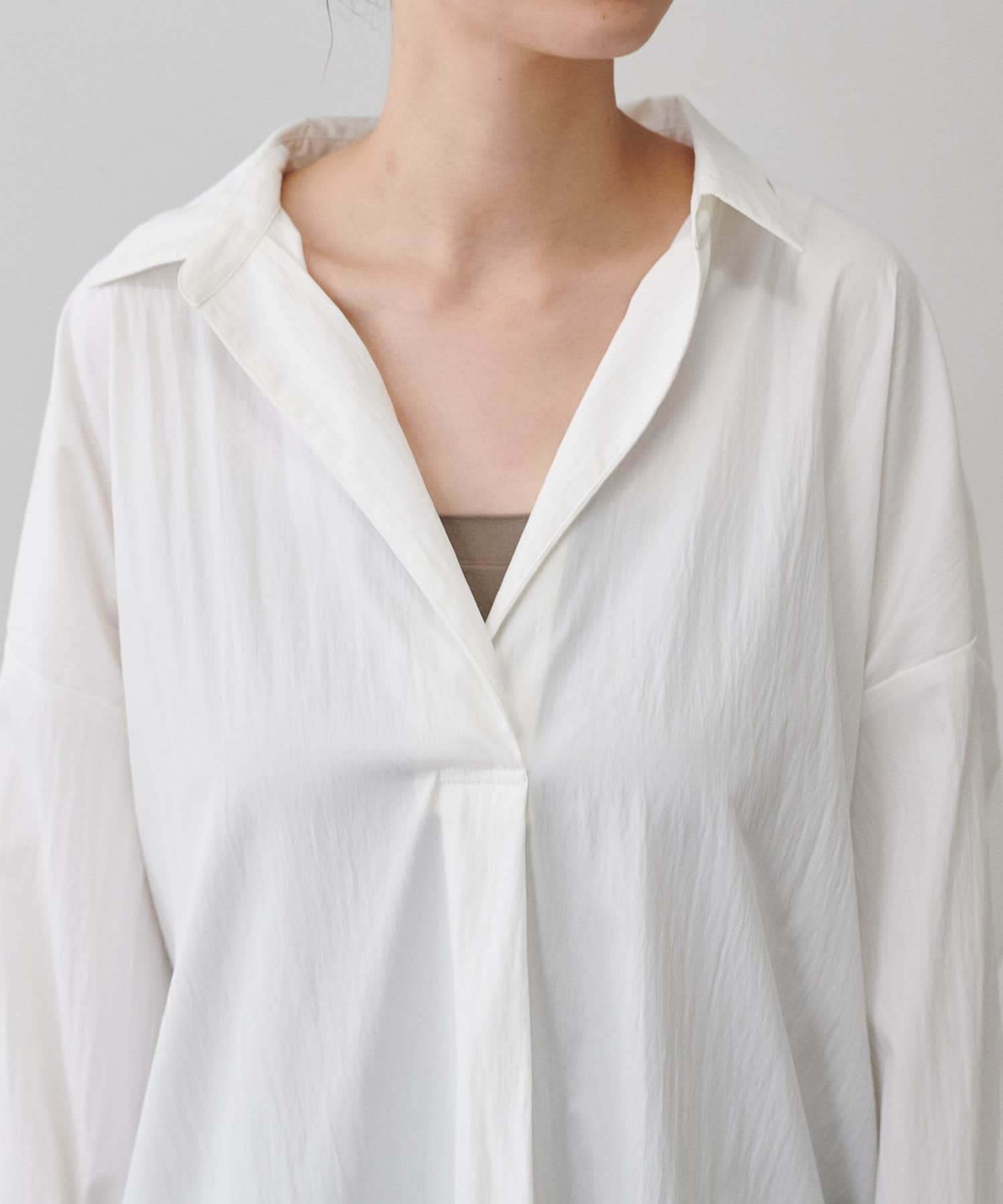 襟を抜いてニュアンス感のあるシルエットが楽しめます。