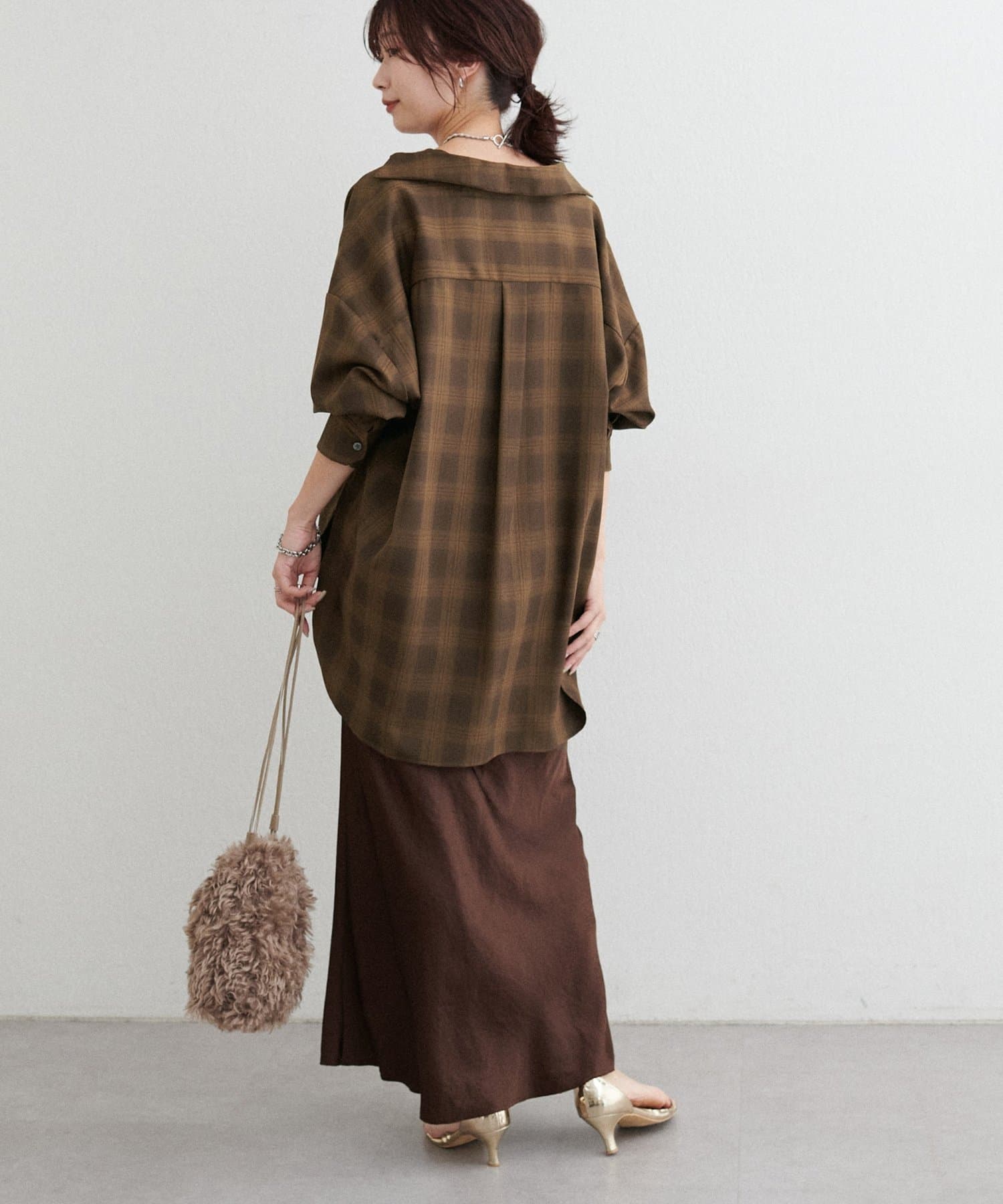 深いこだわりの秋らしいカラーでチェック柄でもカジュアルになりすぎません。