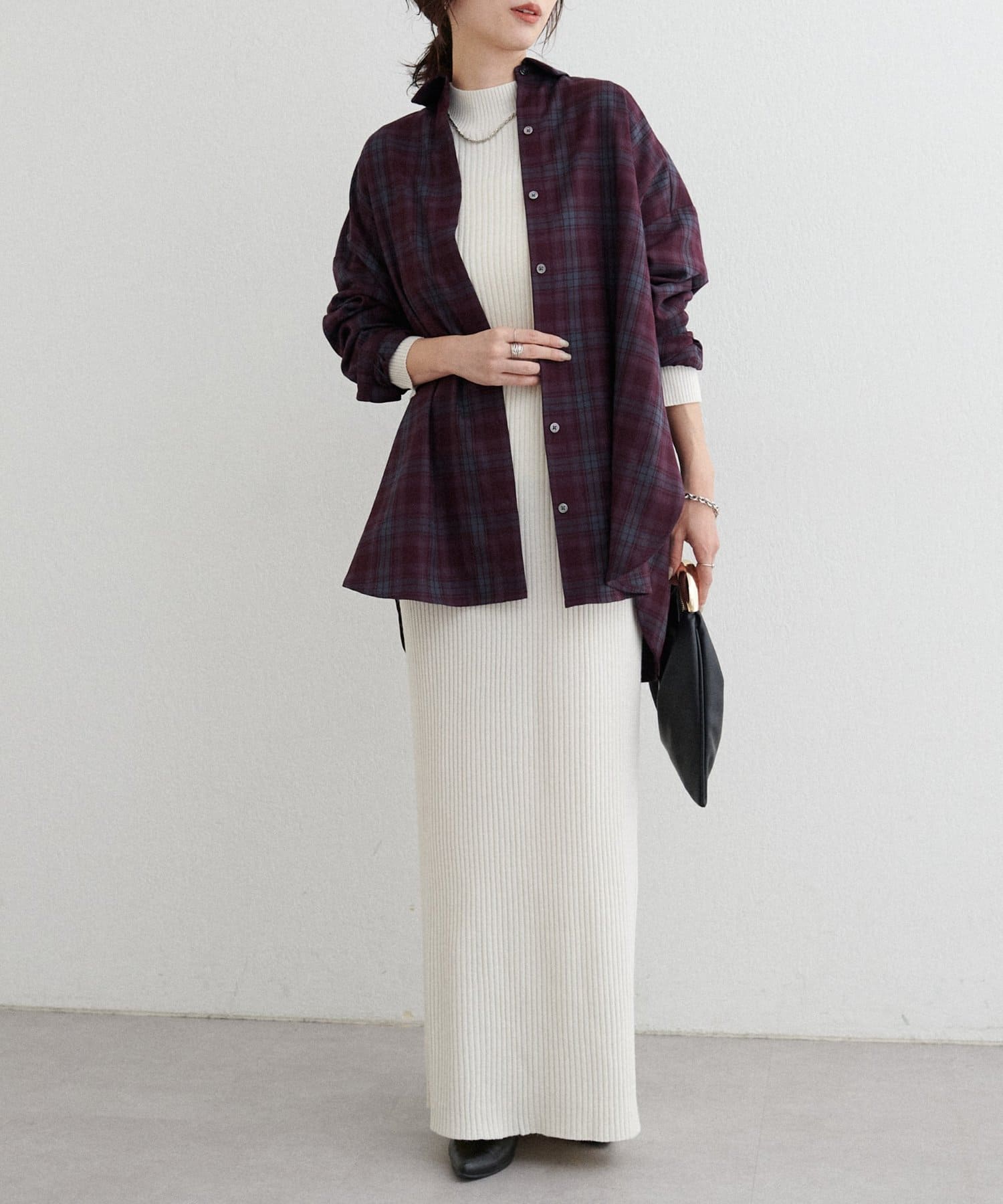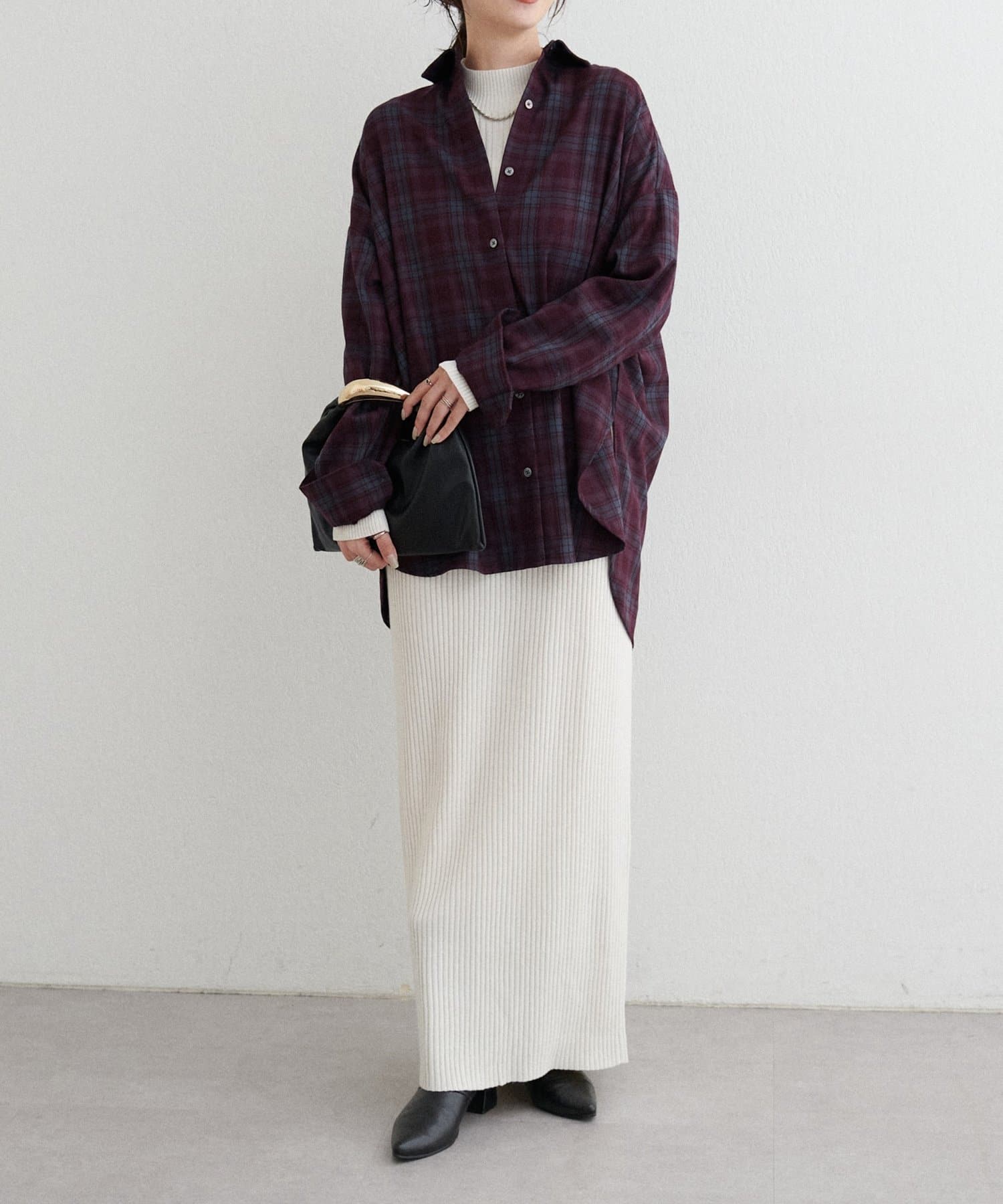 レイヤードコーデもおすすめ。ゆったりとしたシルエットですが