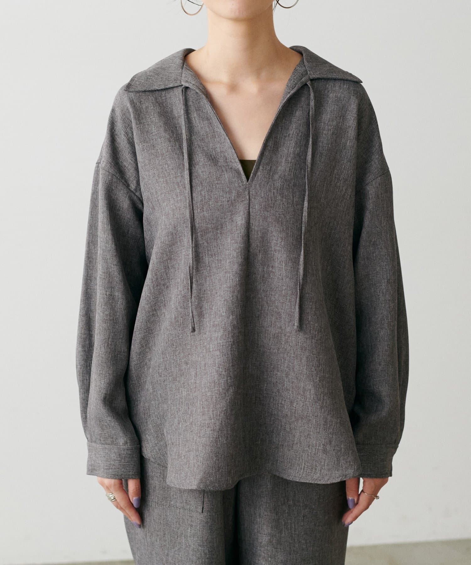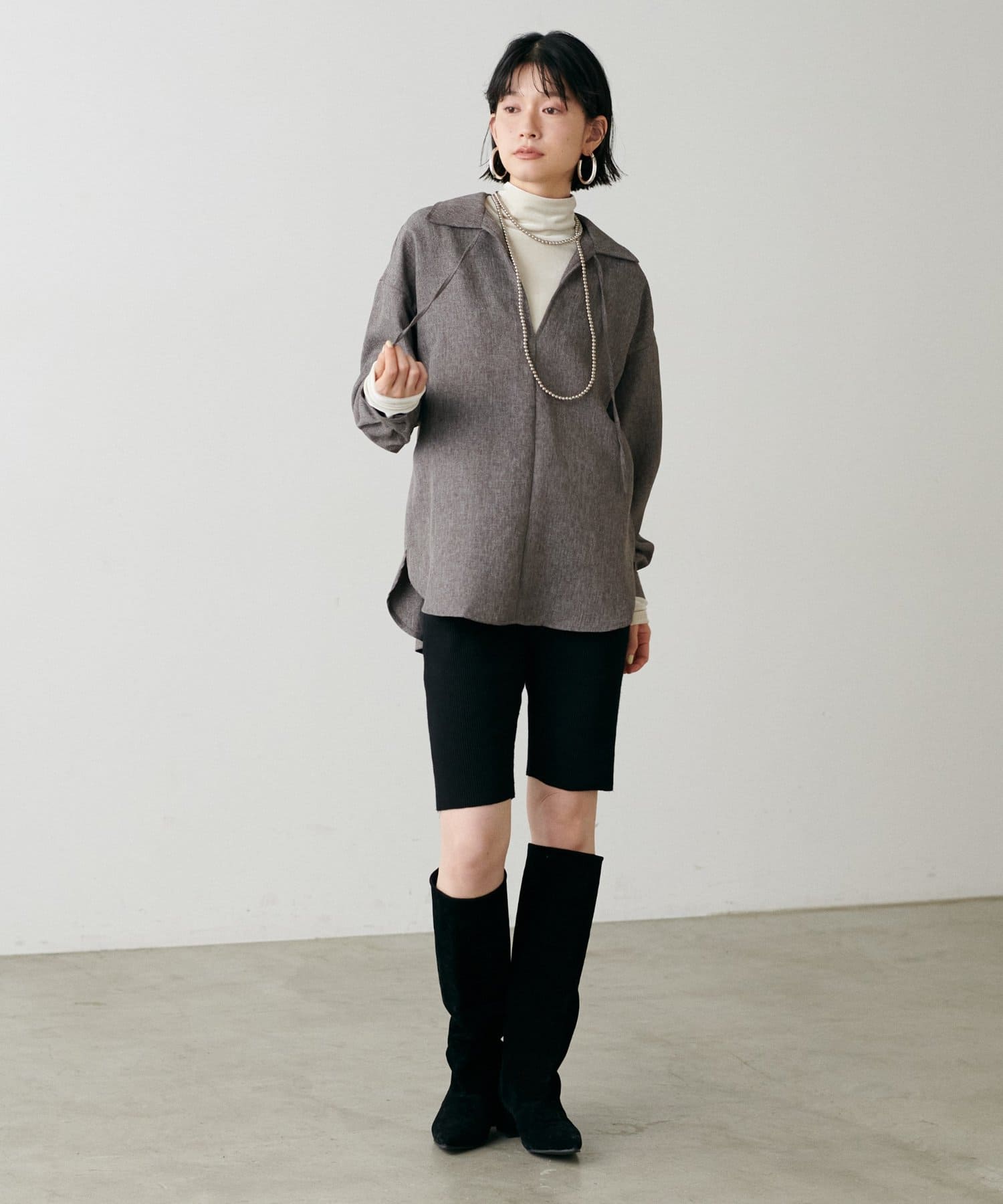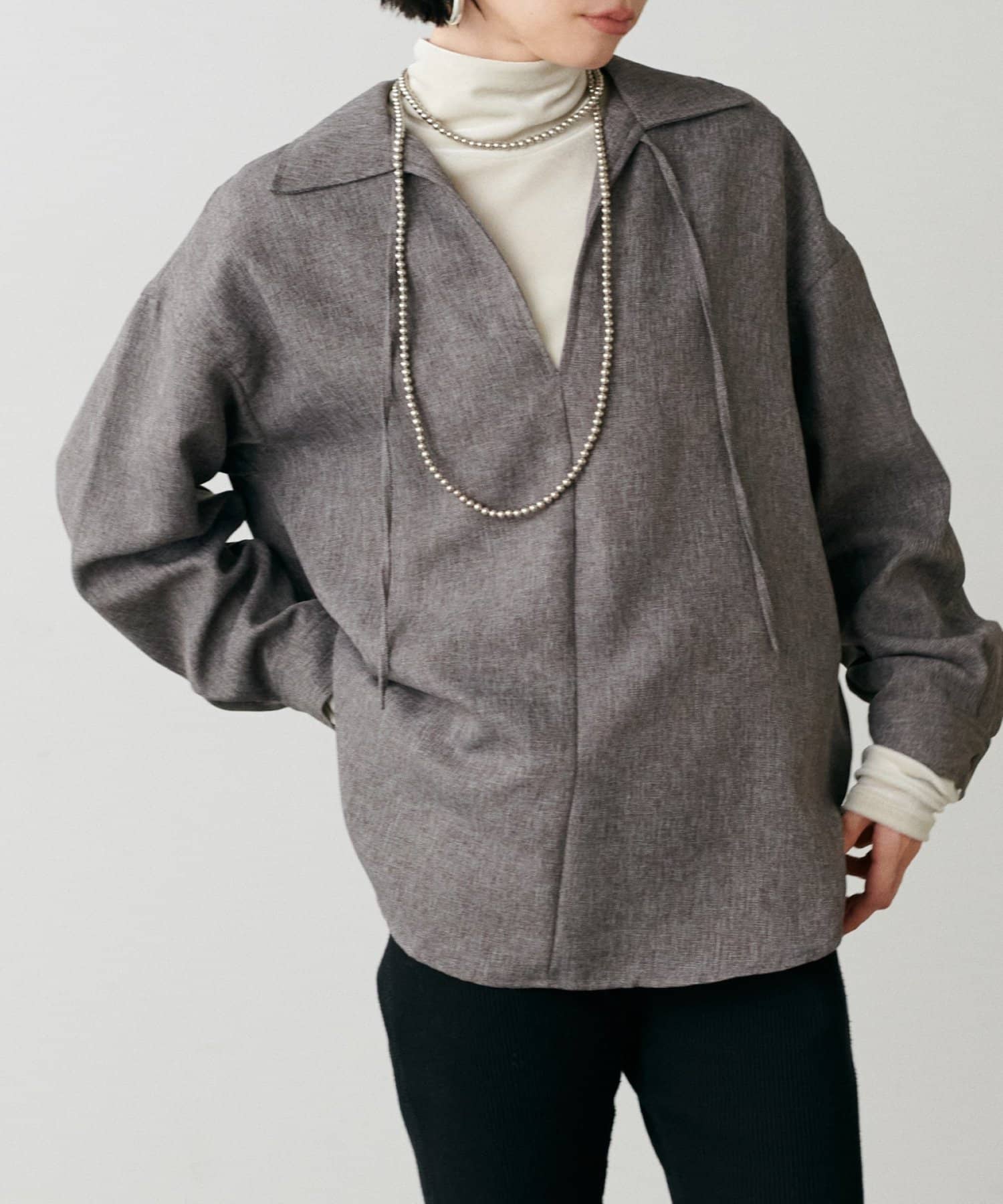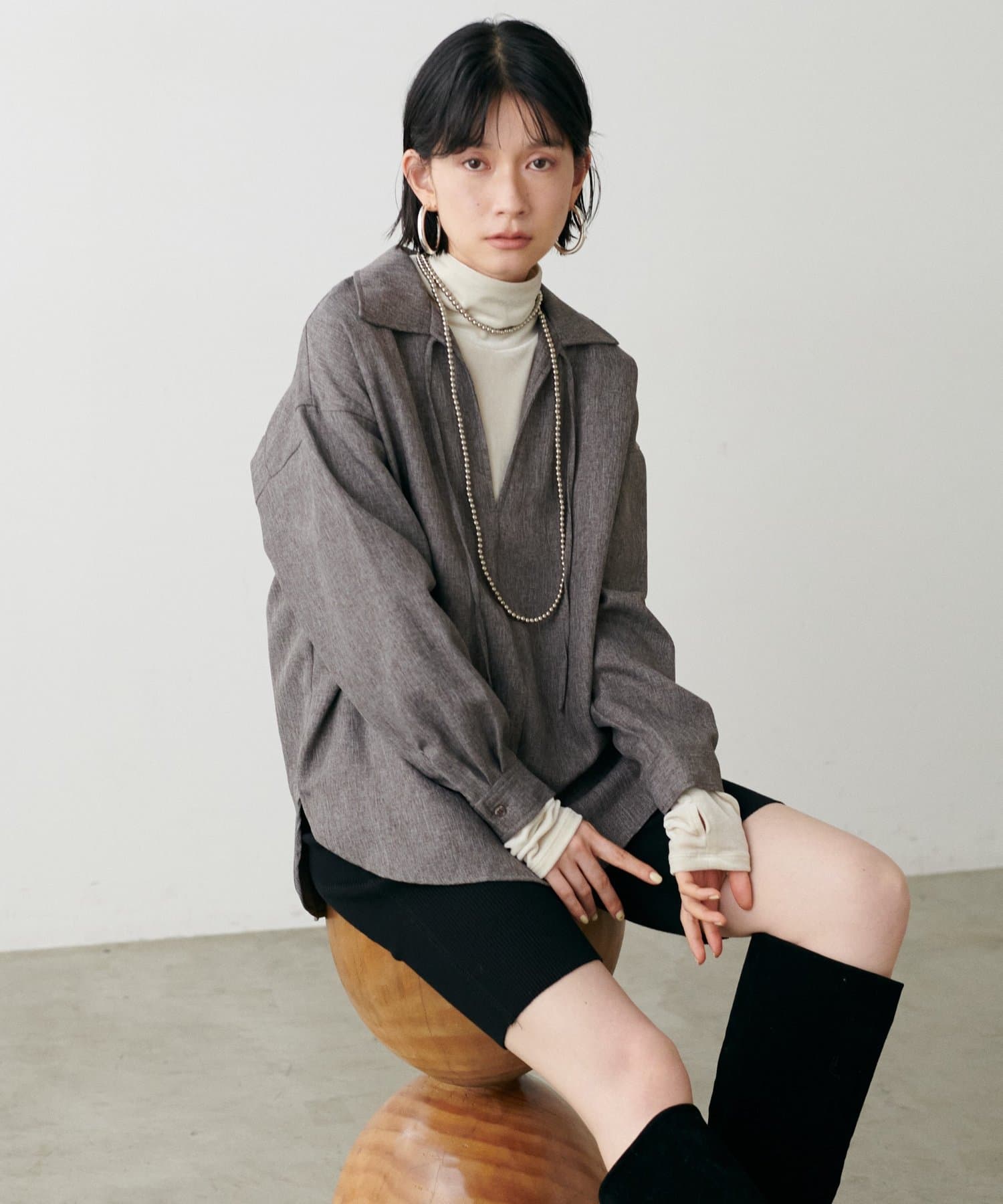 クラシカルなツイード調素材を使用したスキッパーシャツ。