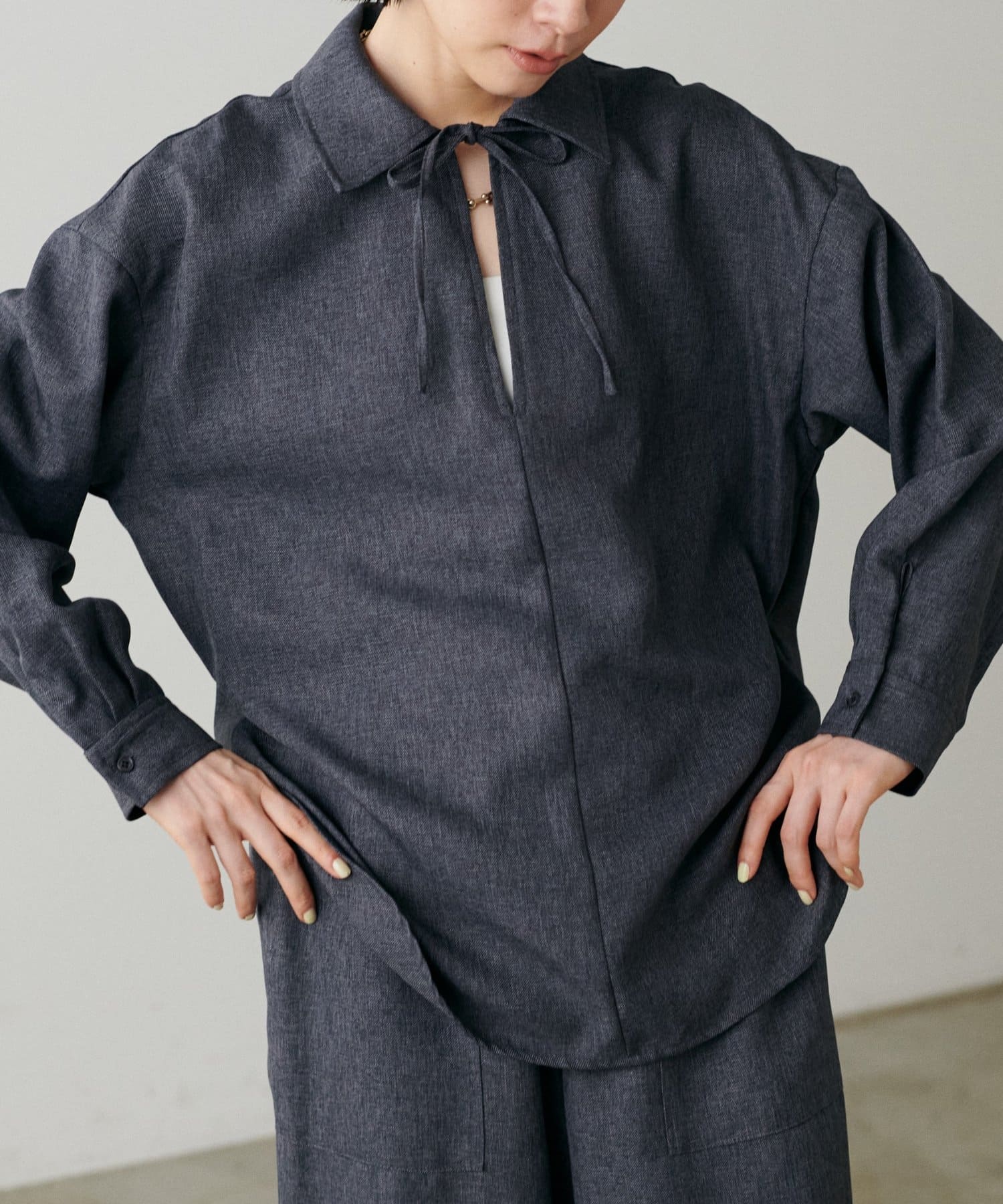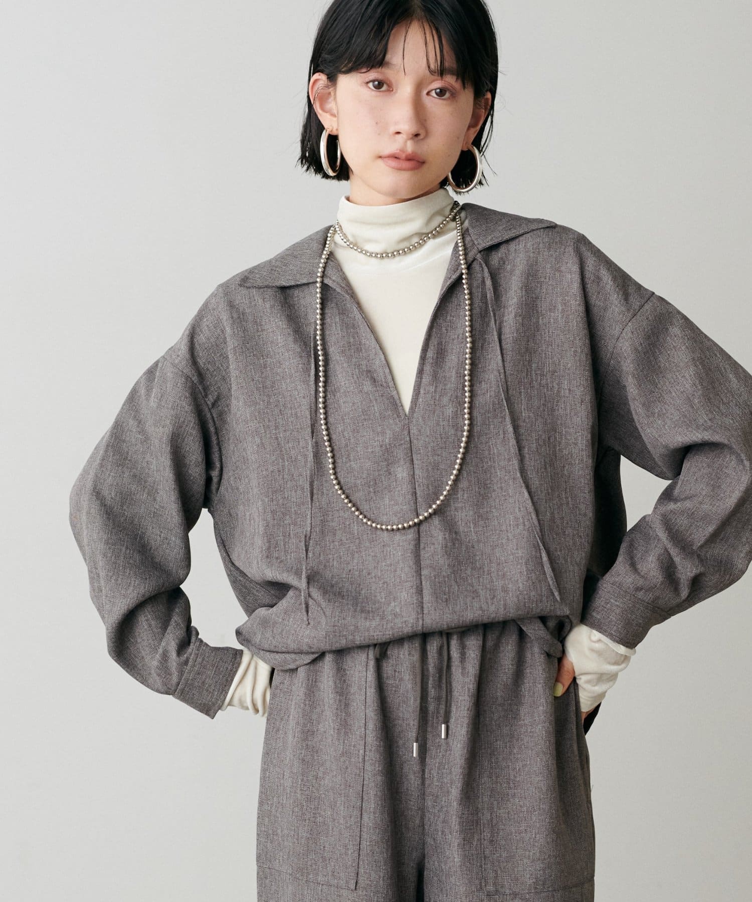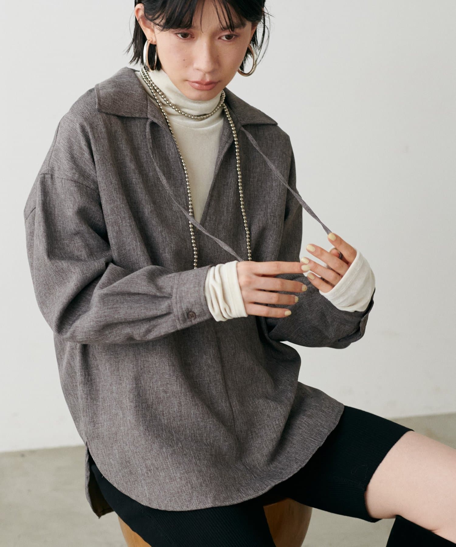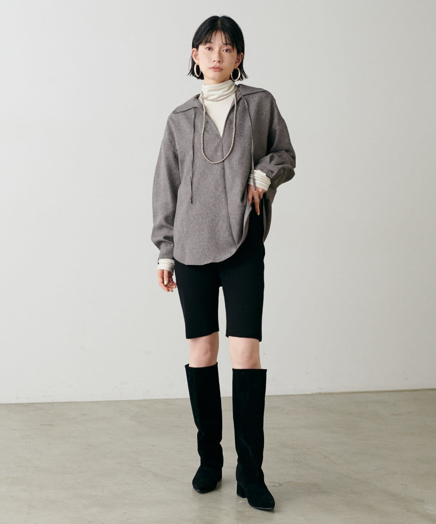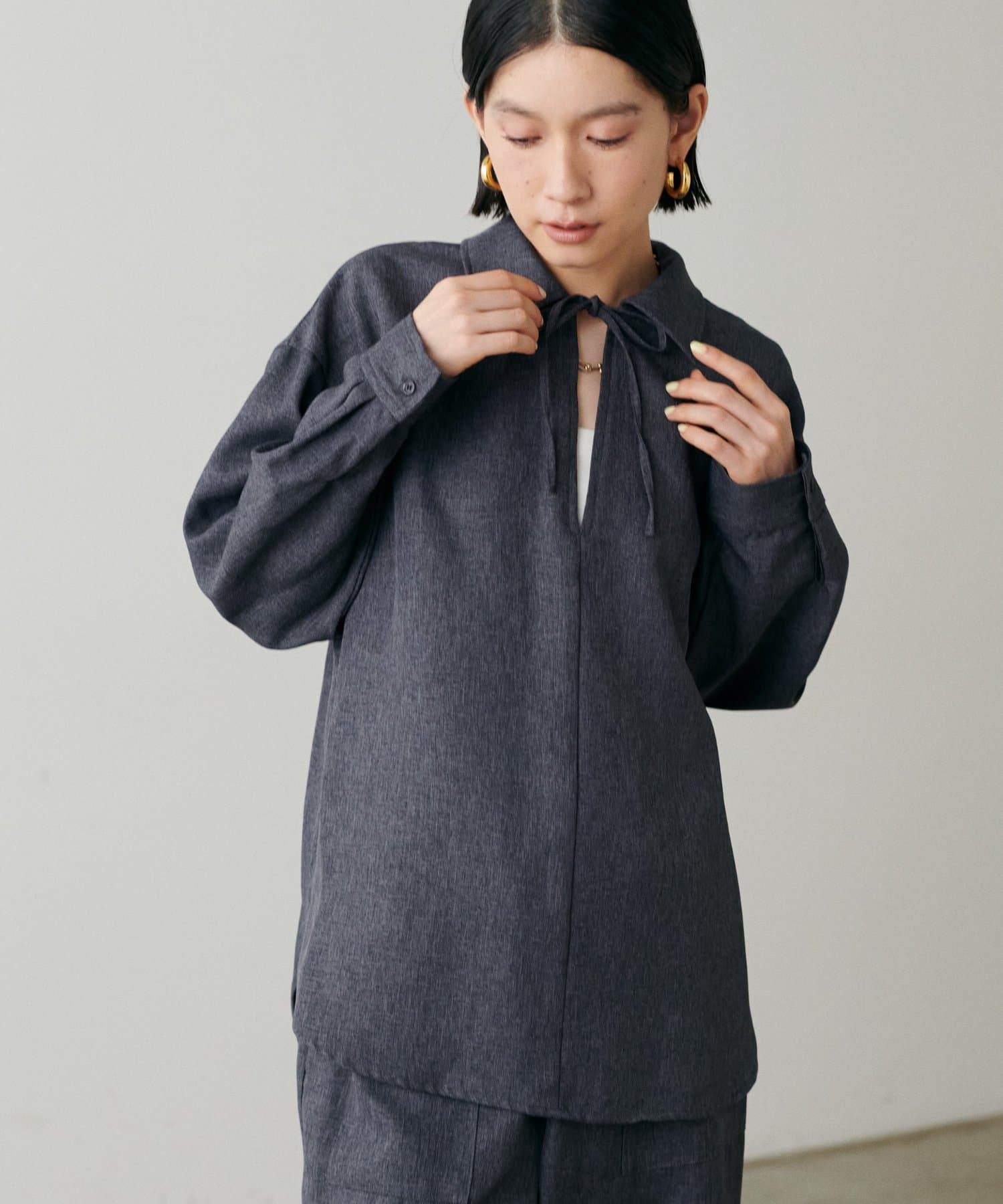 クラシカルなツイード調素材を使用したスキッパーシャツ。