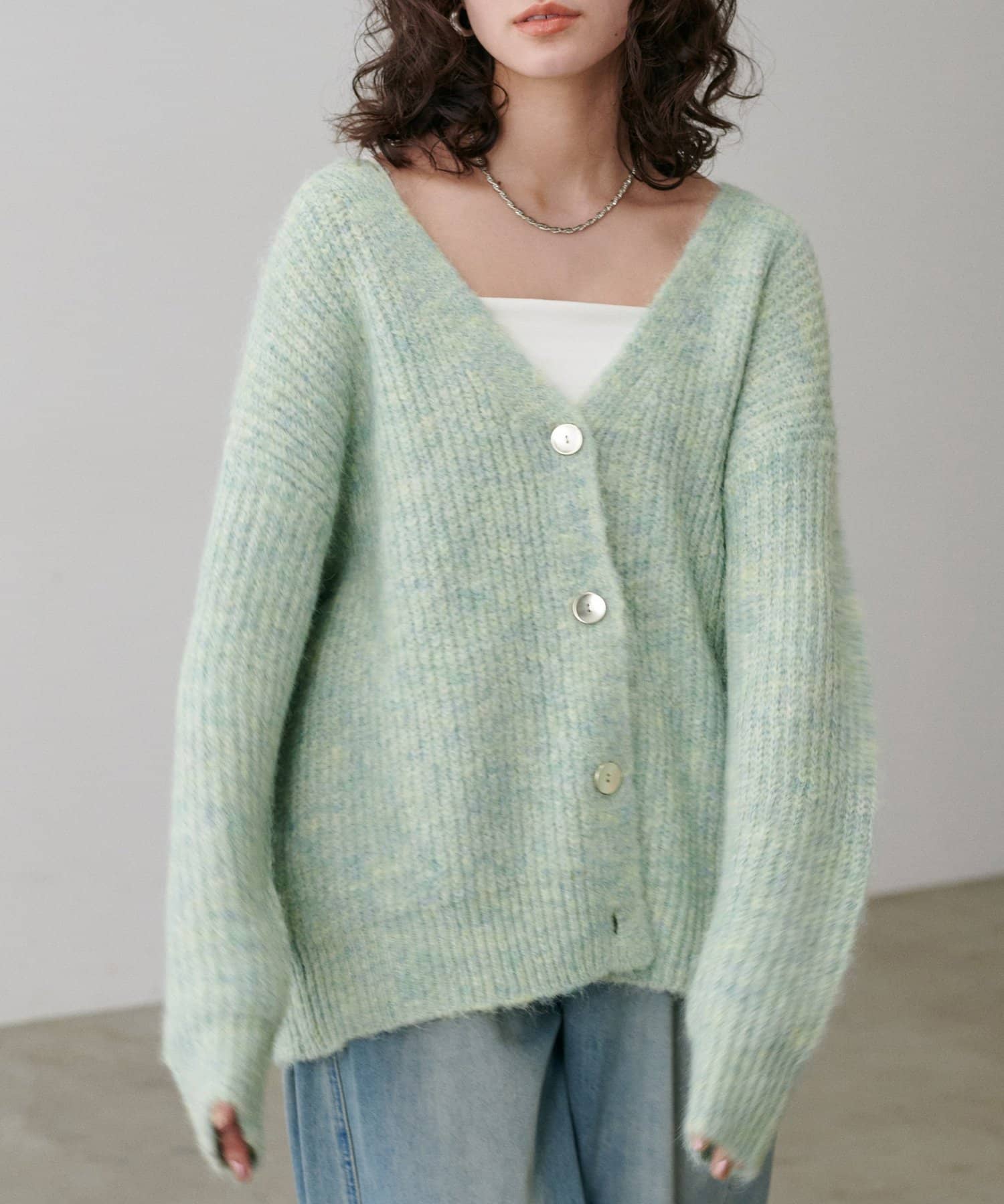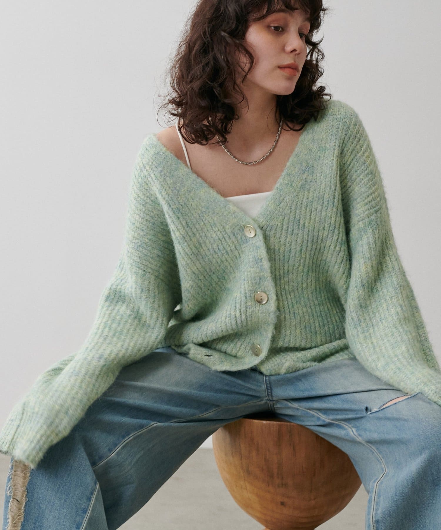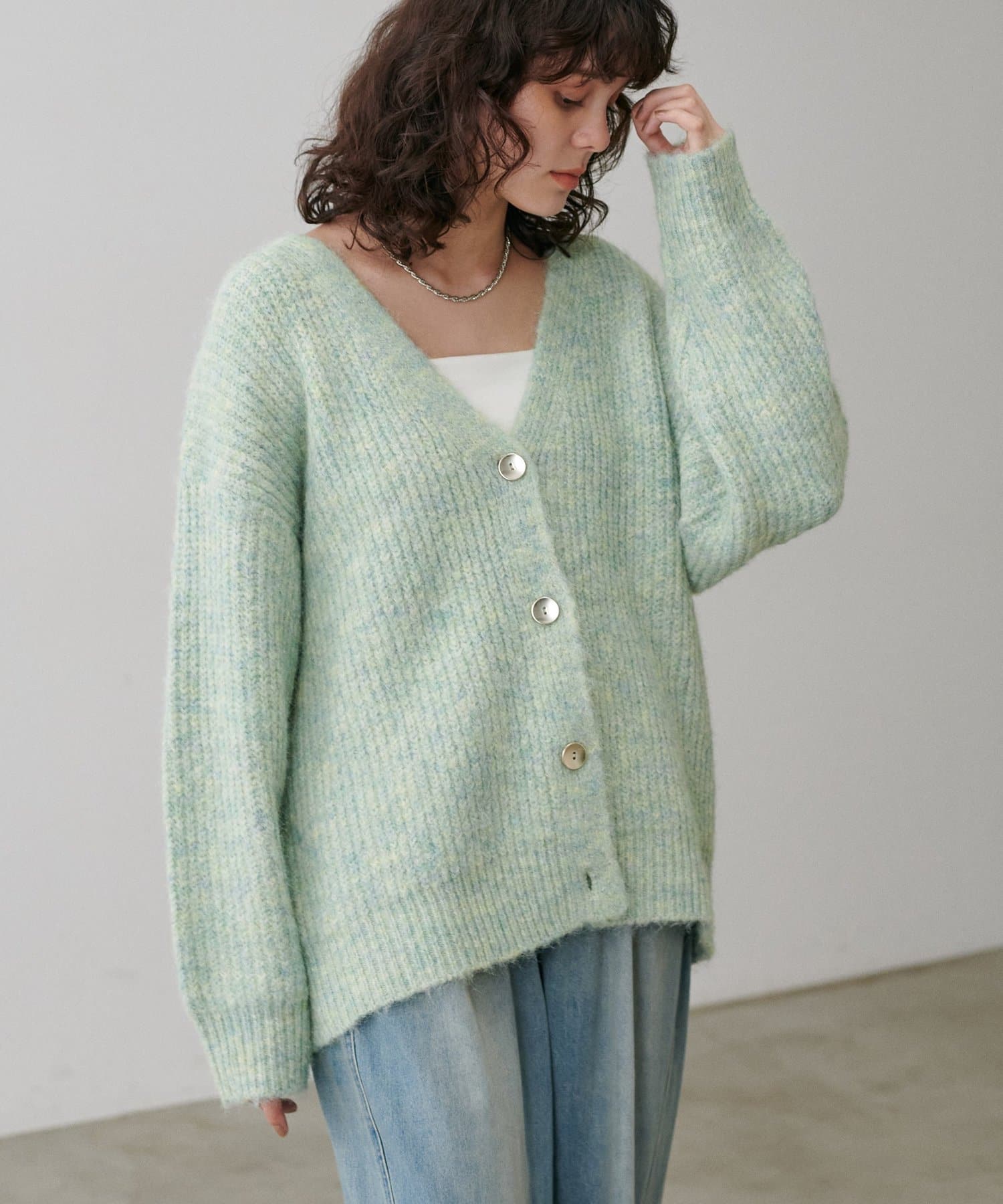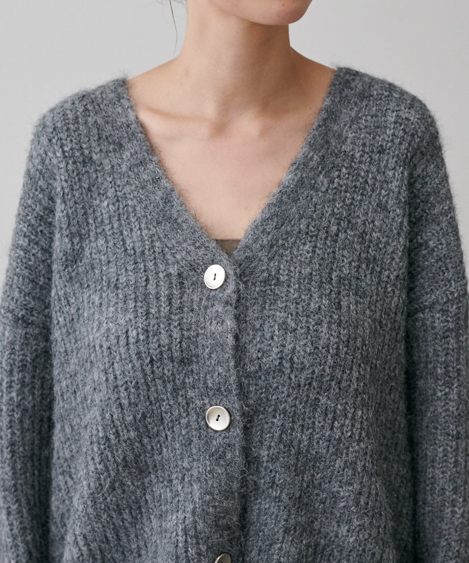 シャギー片畦Vネックニットカーディガン