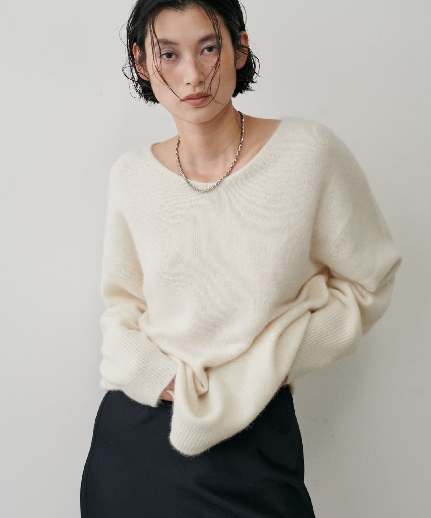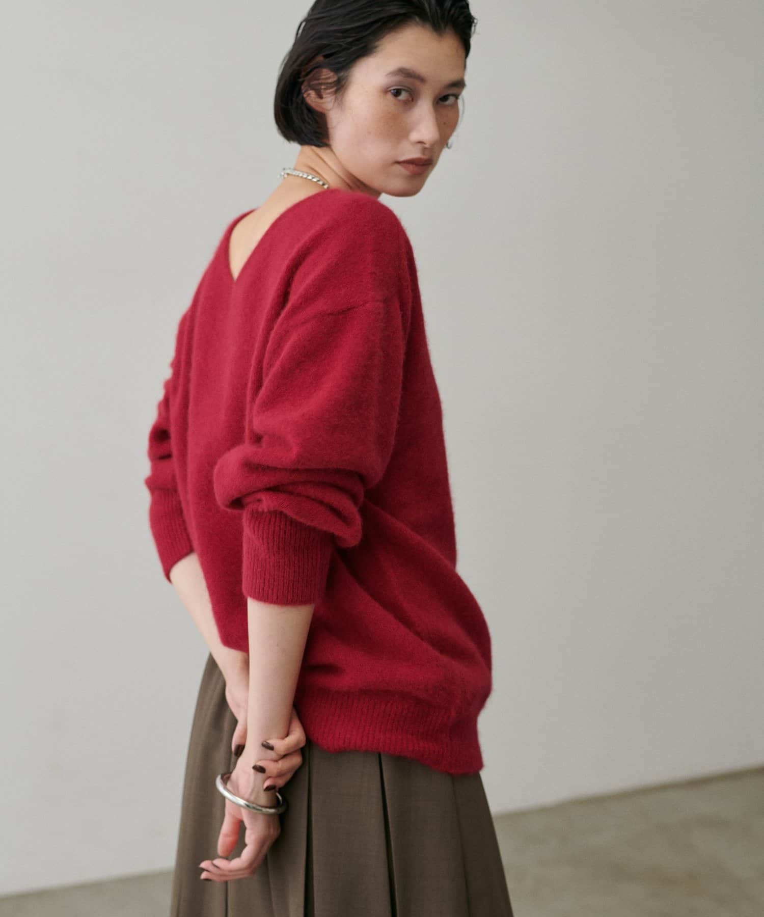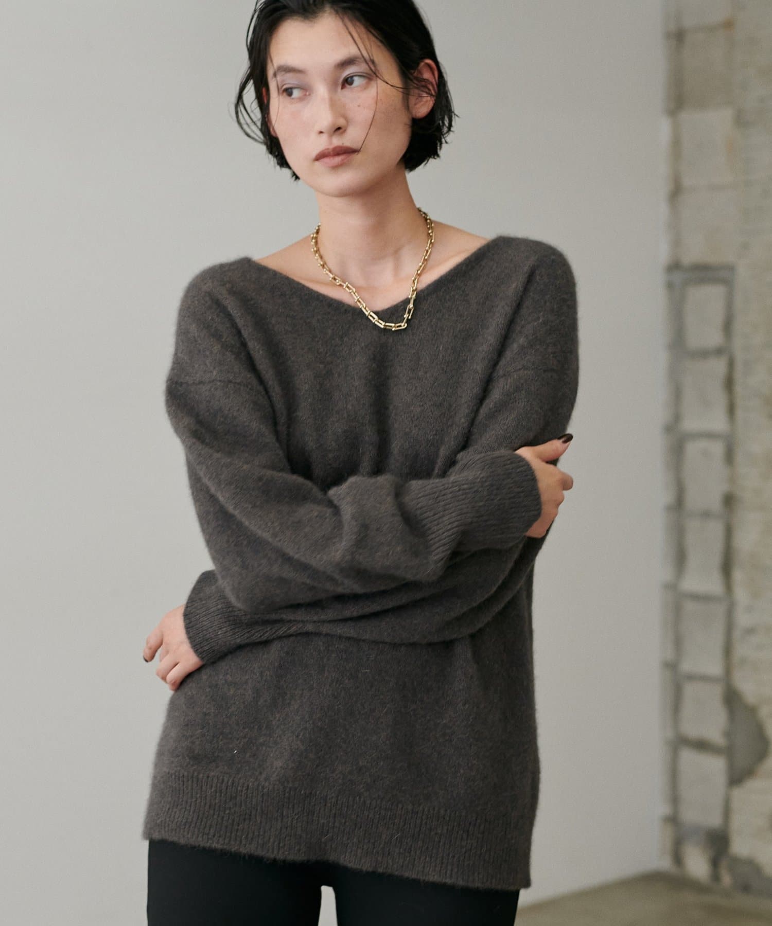 ゆるめのVネックデザインが顔回りをスッキリと見せてくれます。