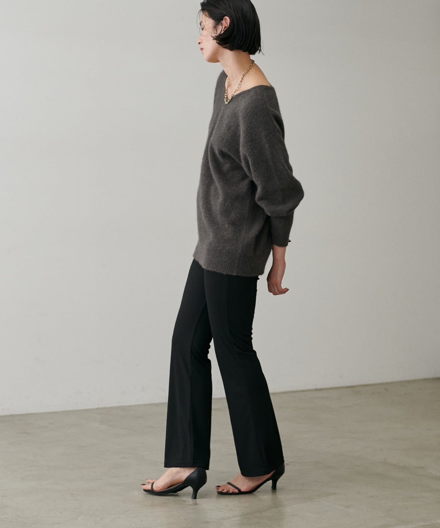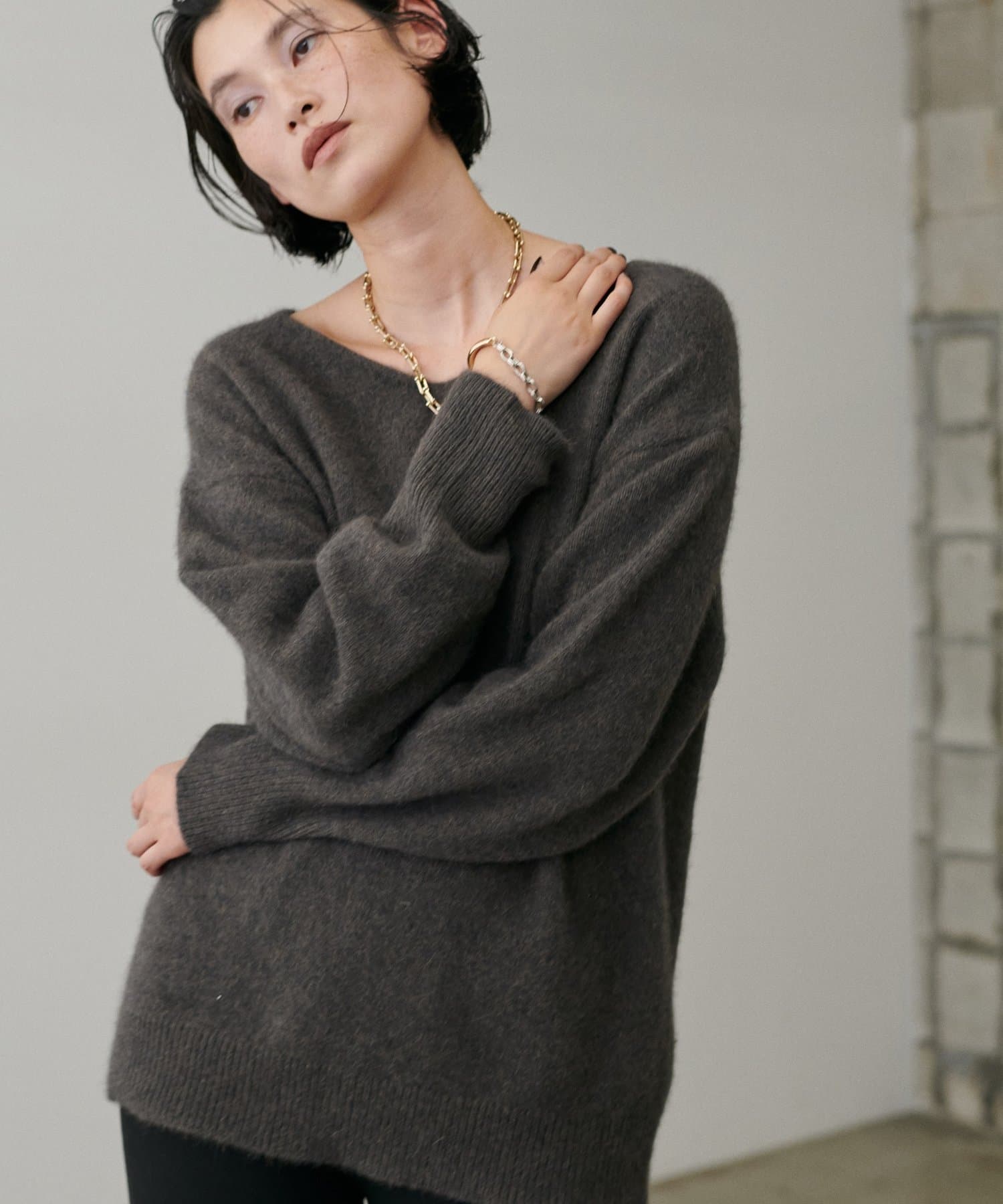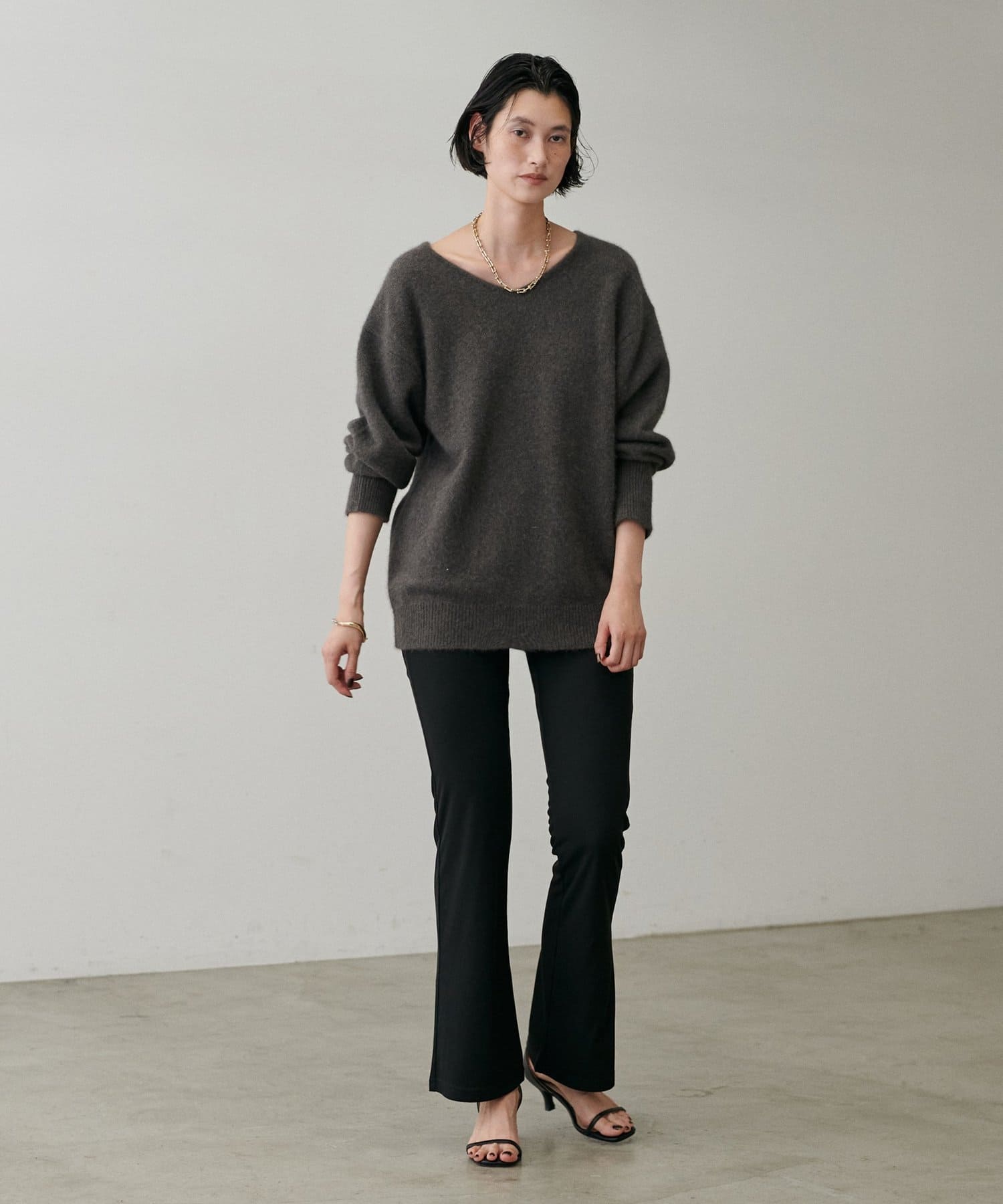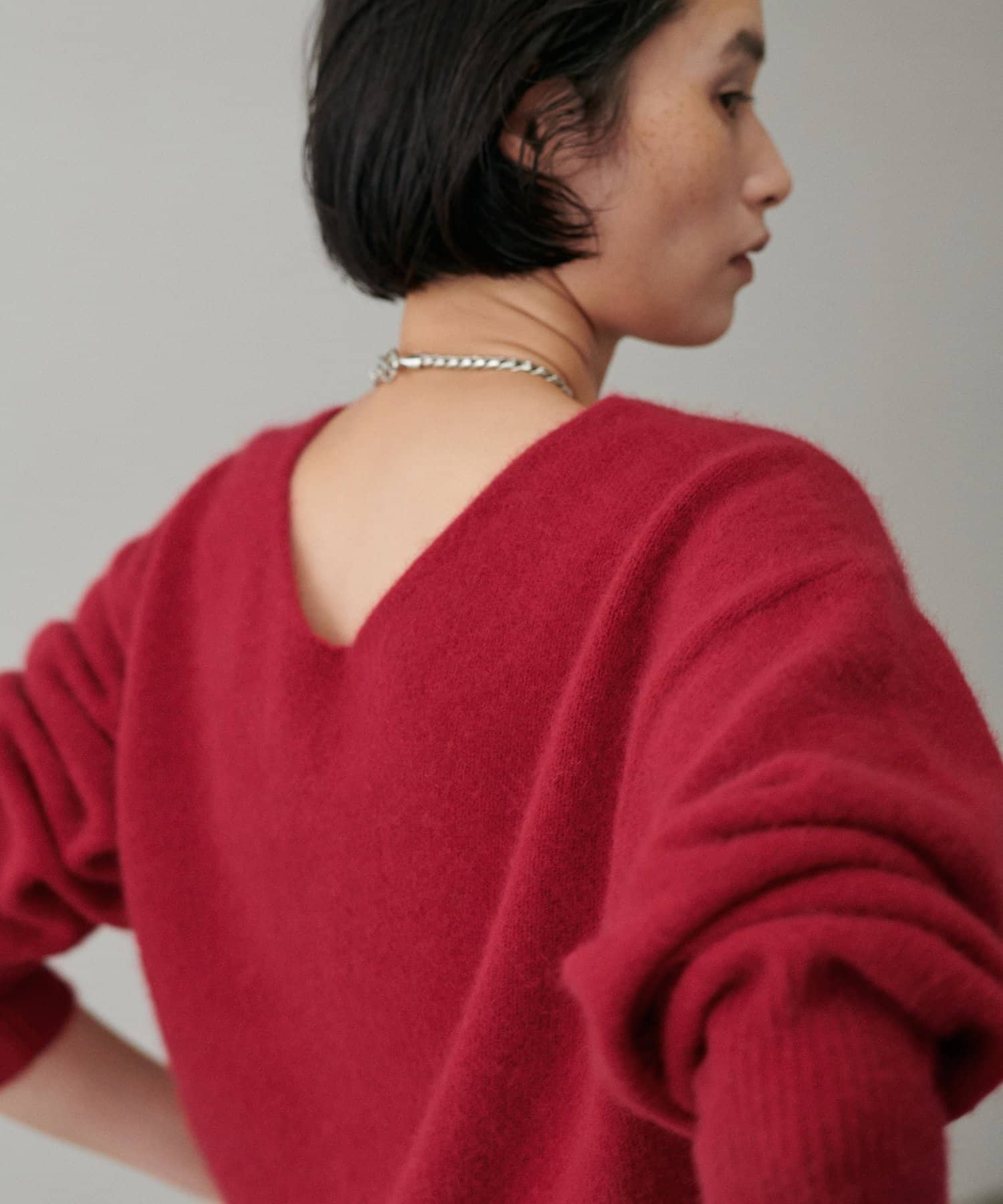 ゆるめのVネックデザインが顔回りをスッキリと見せてくれます。