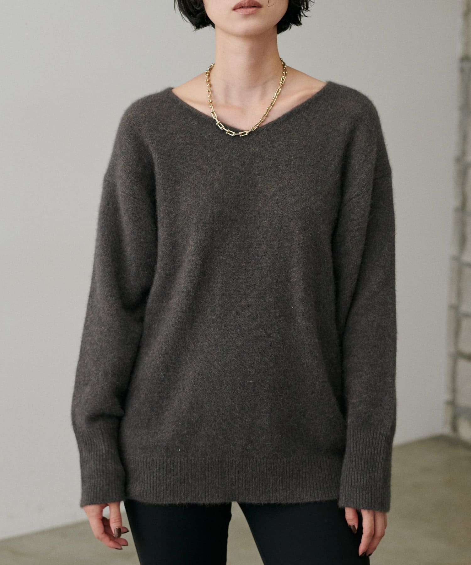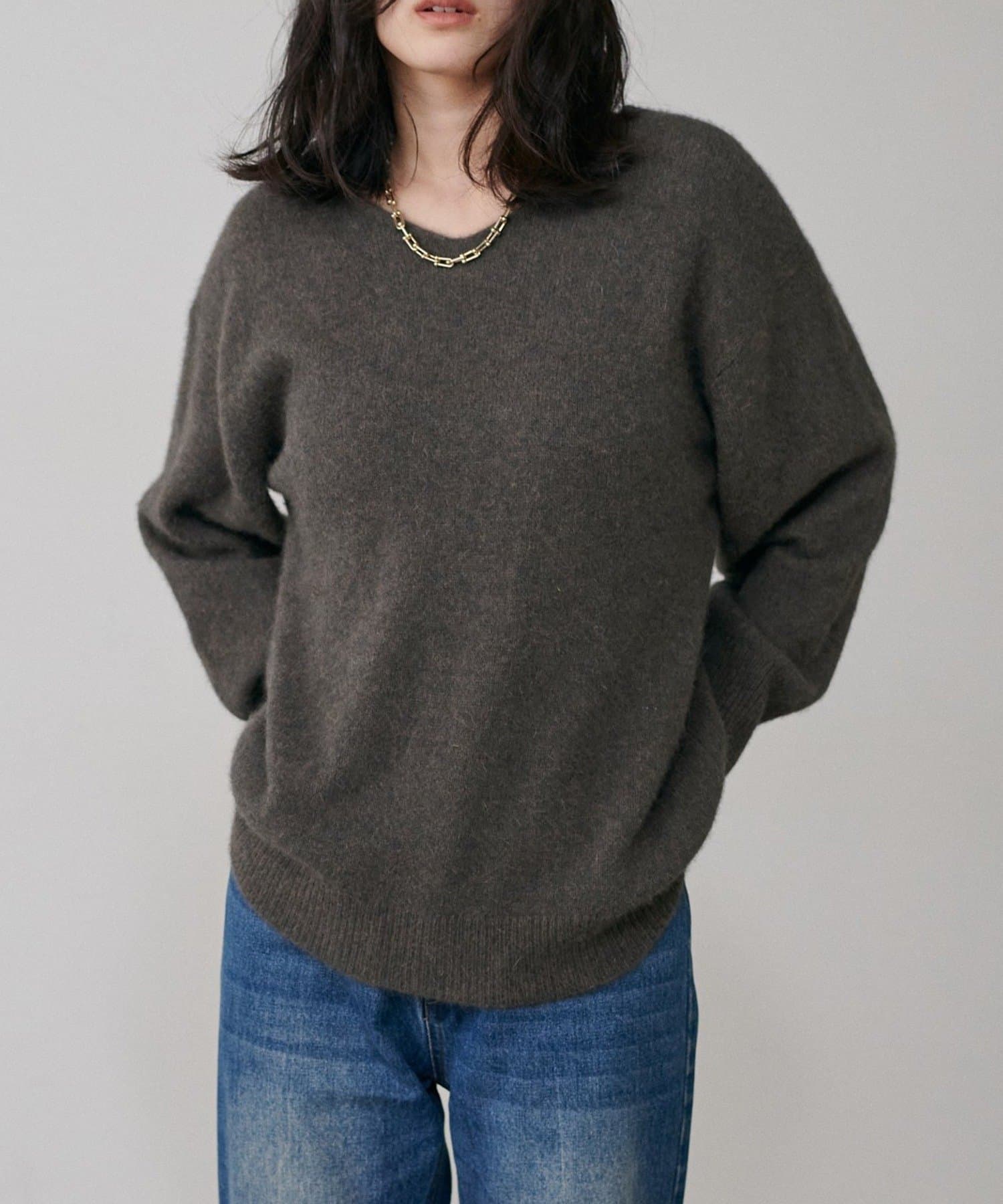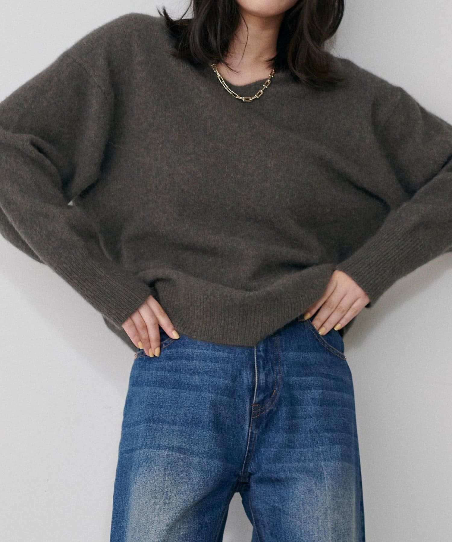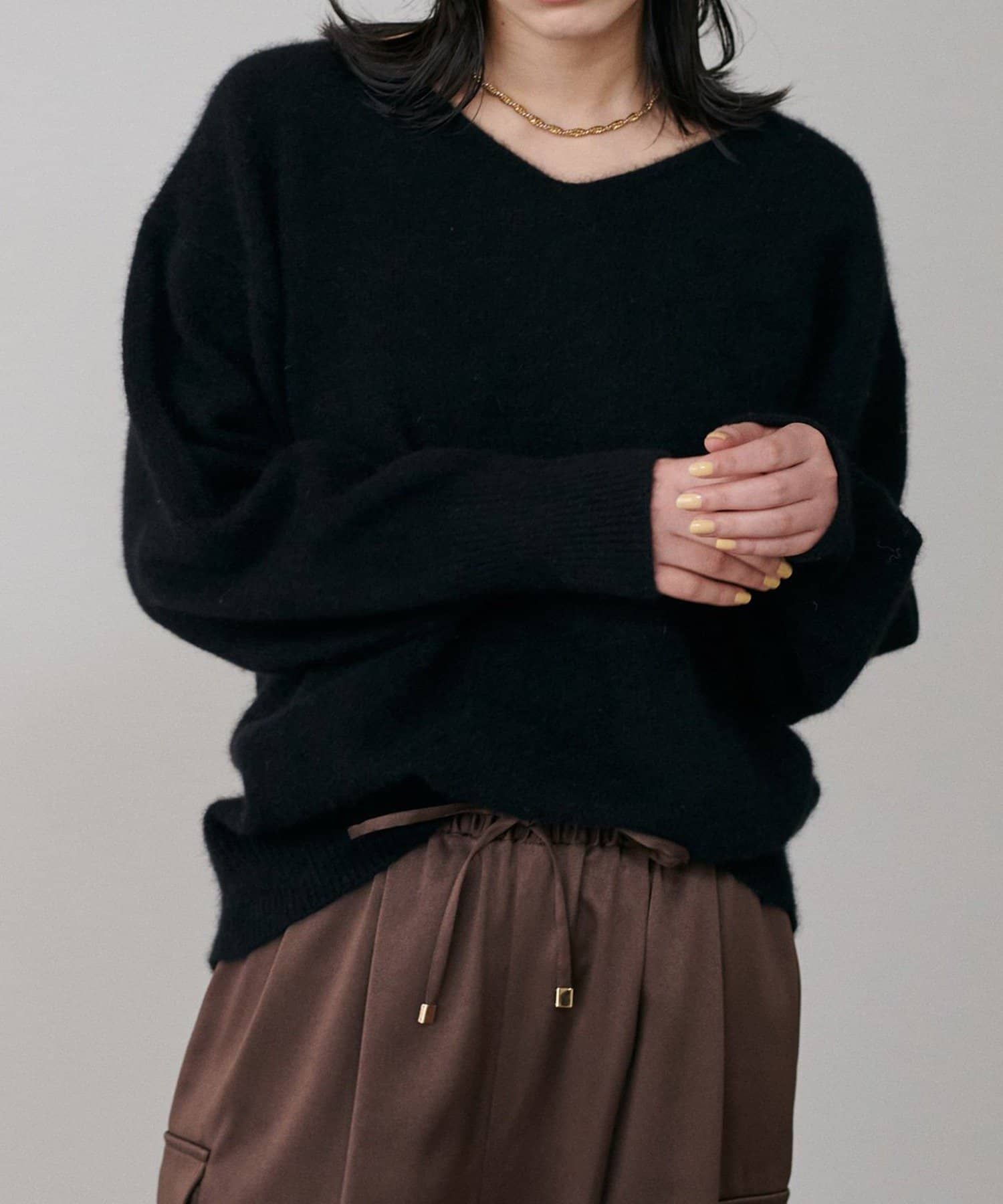 ゆるめのVネックデザインが顔回りをスッキリと見せてくれます。
