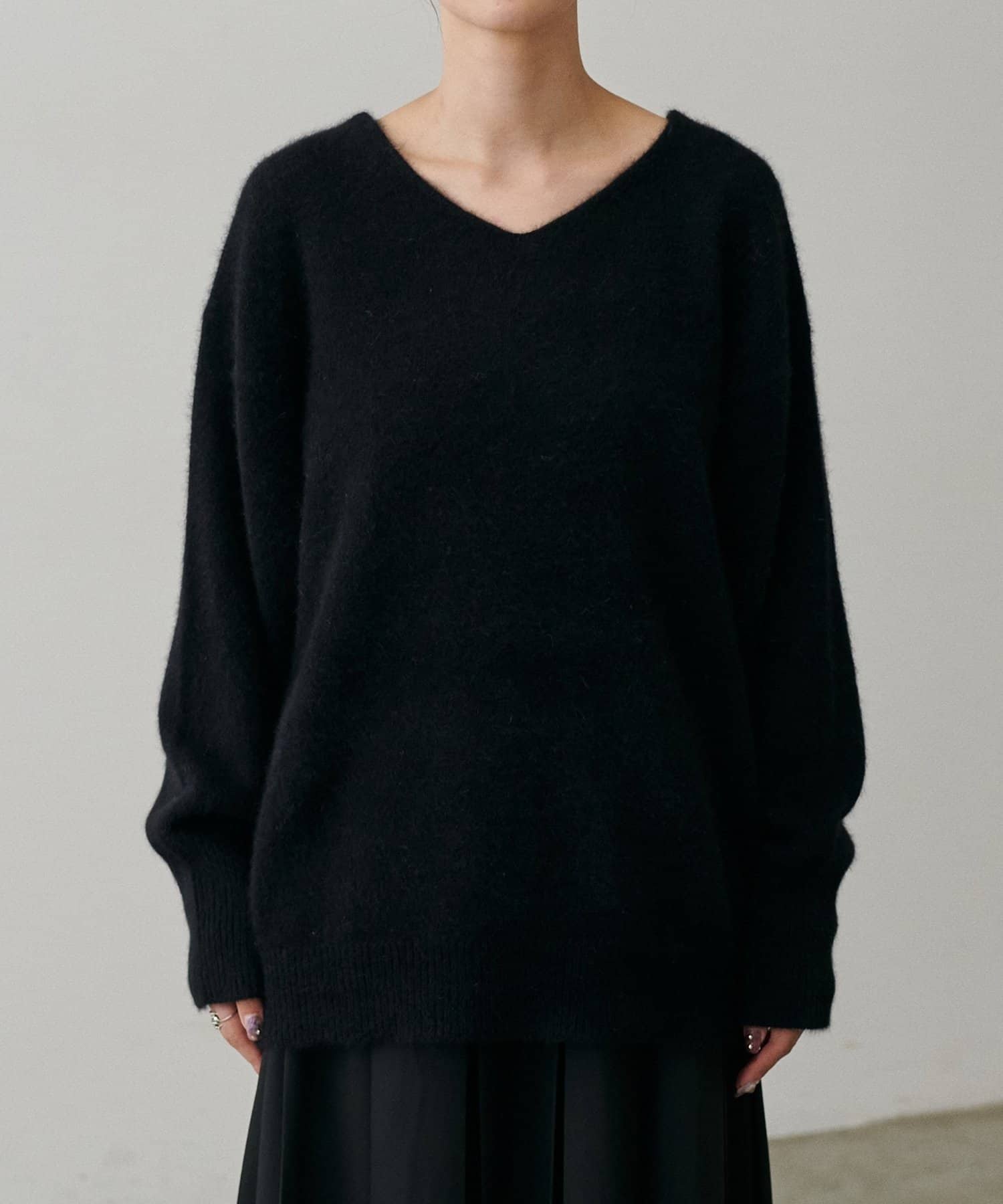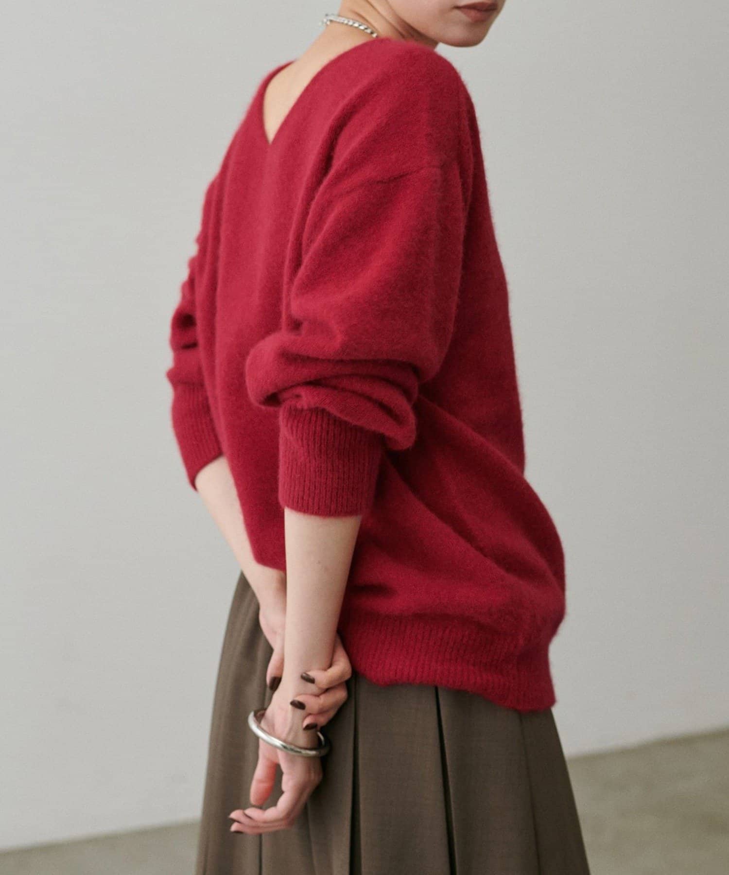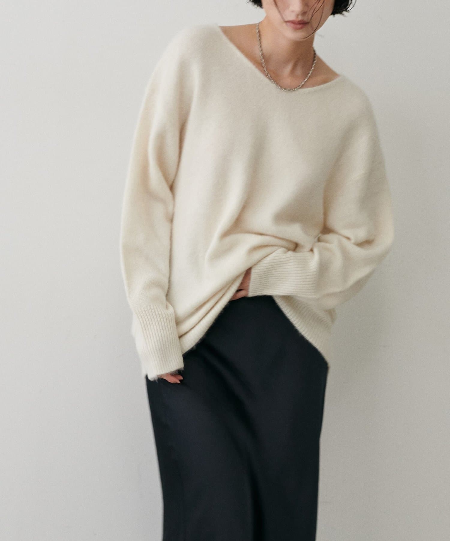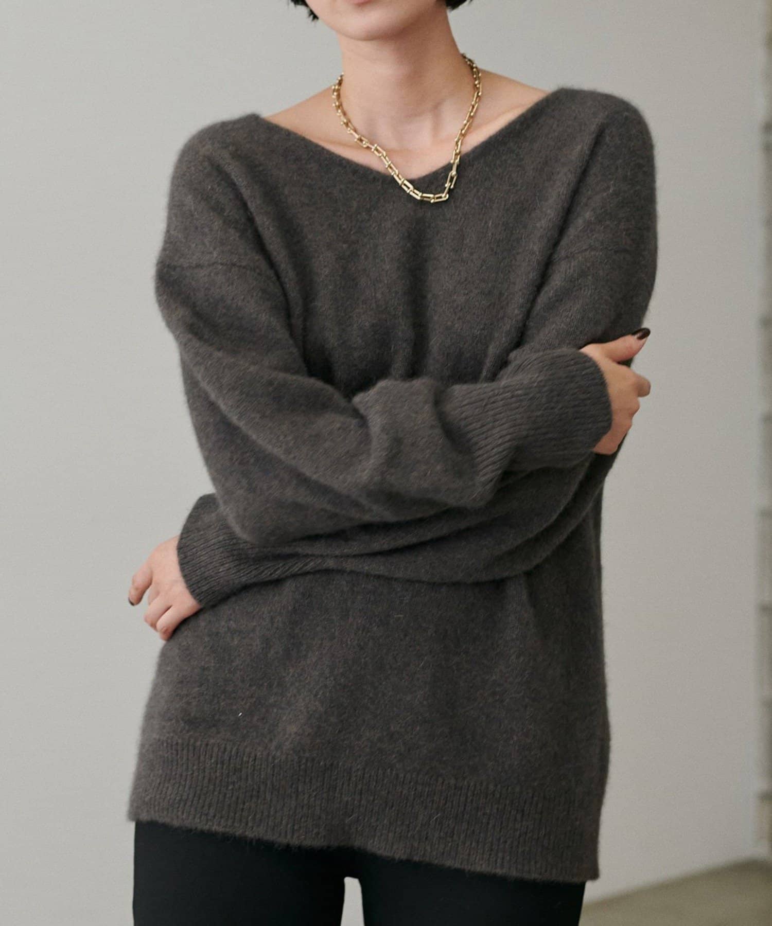 ゆるめのVネックデザインが顔回りをスッキリと見せてくれます。
