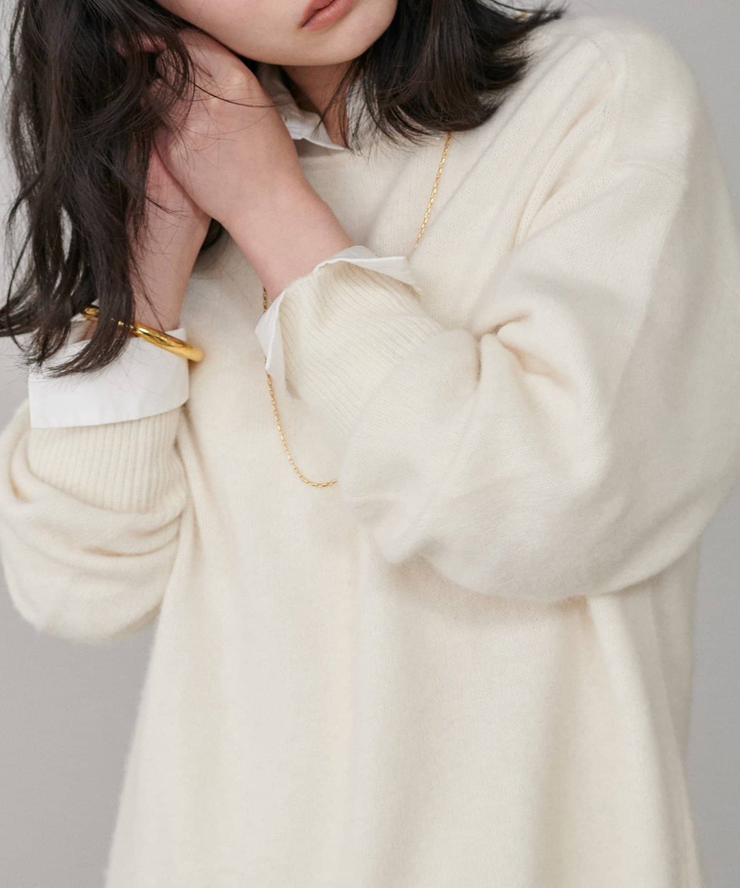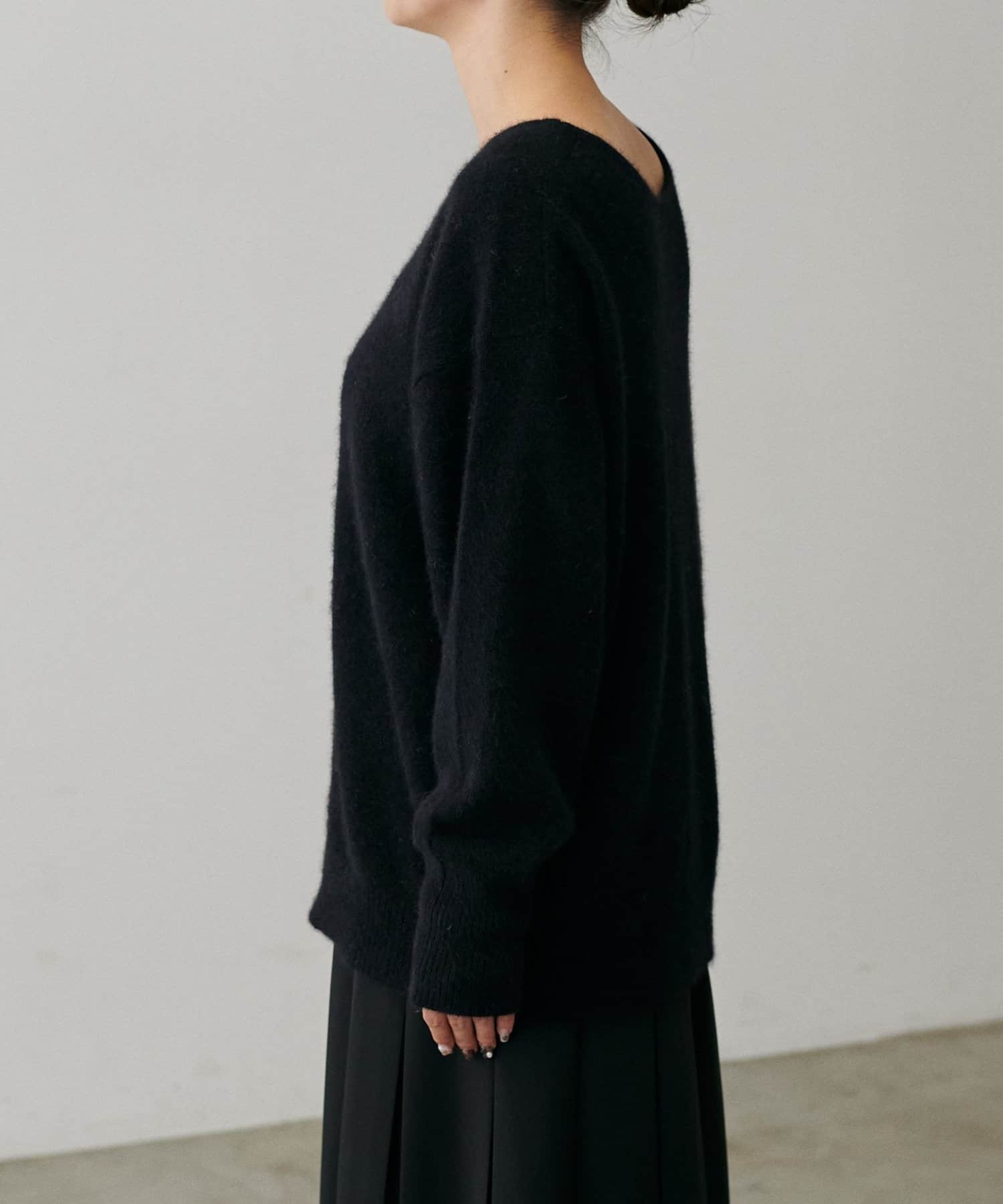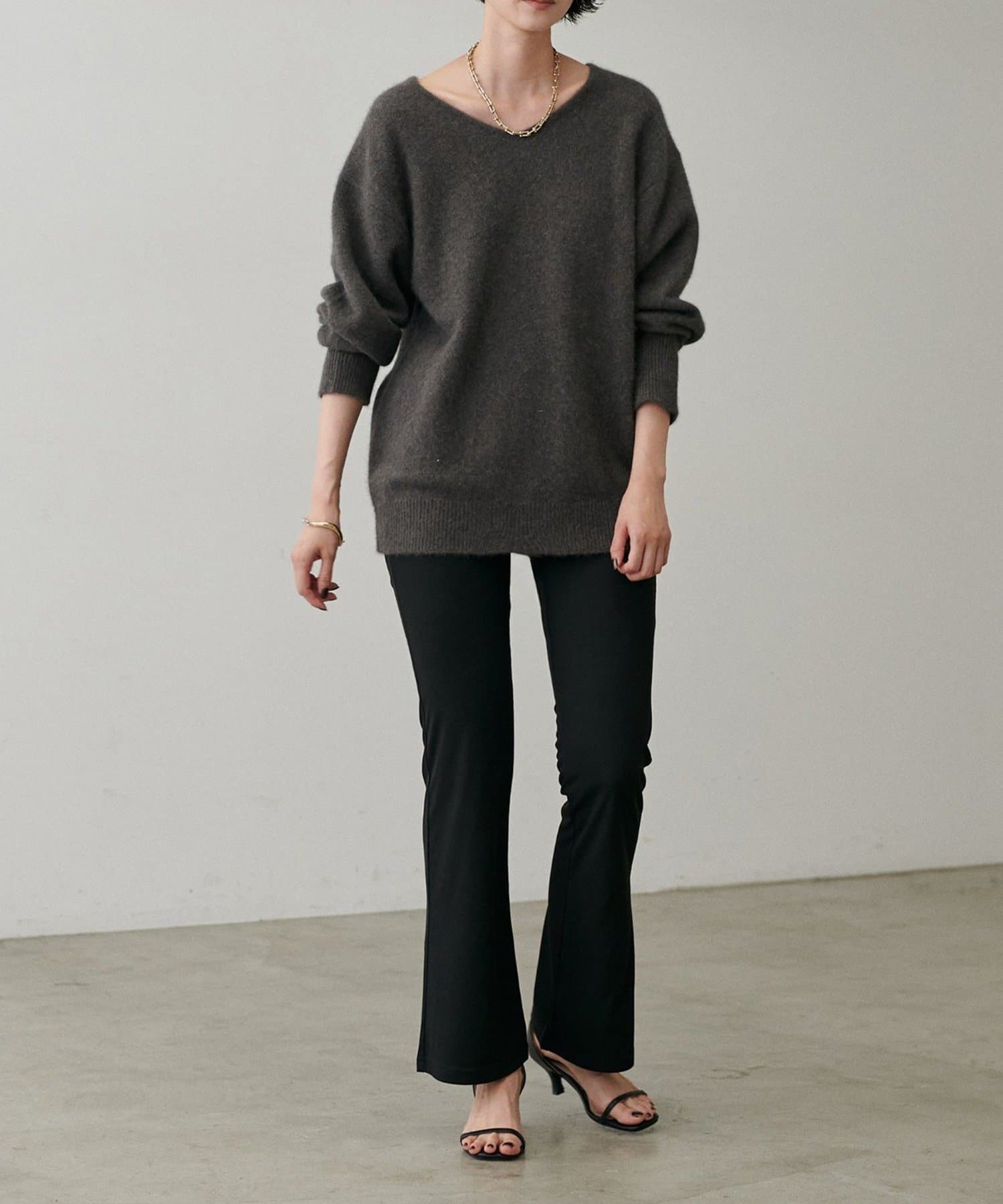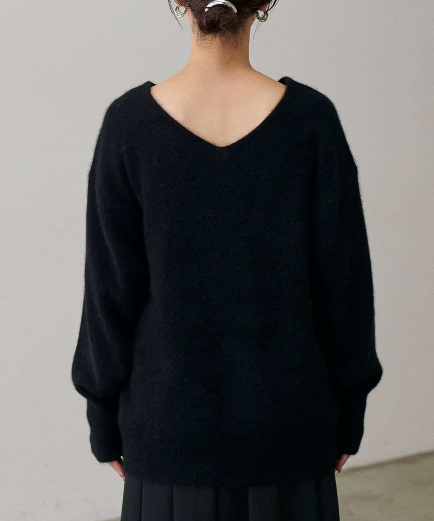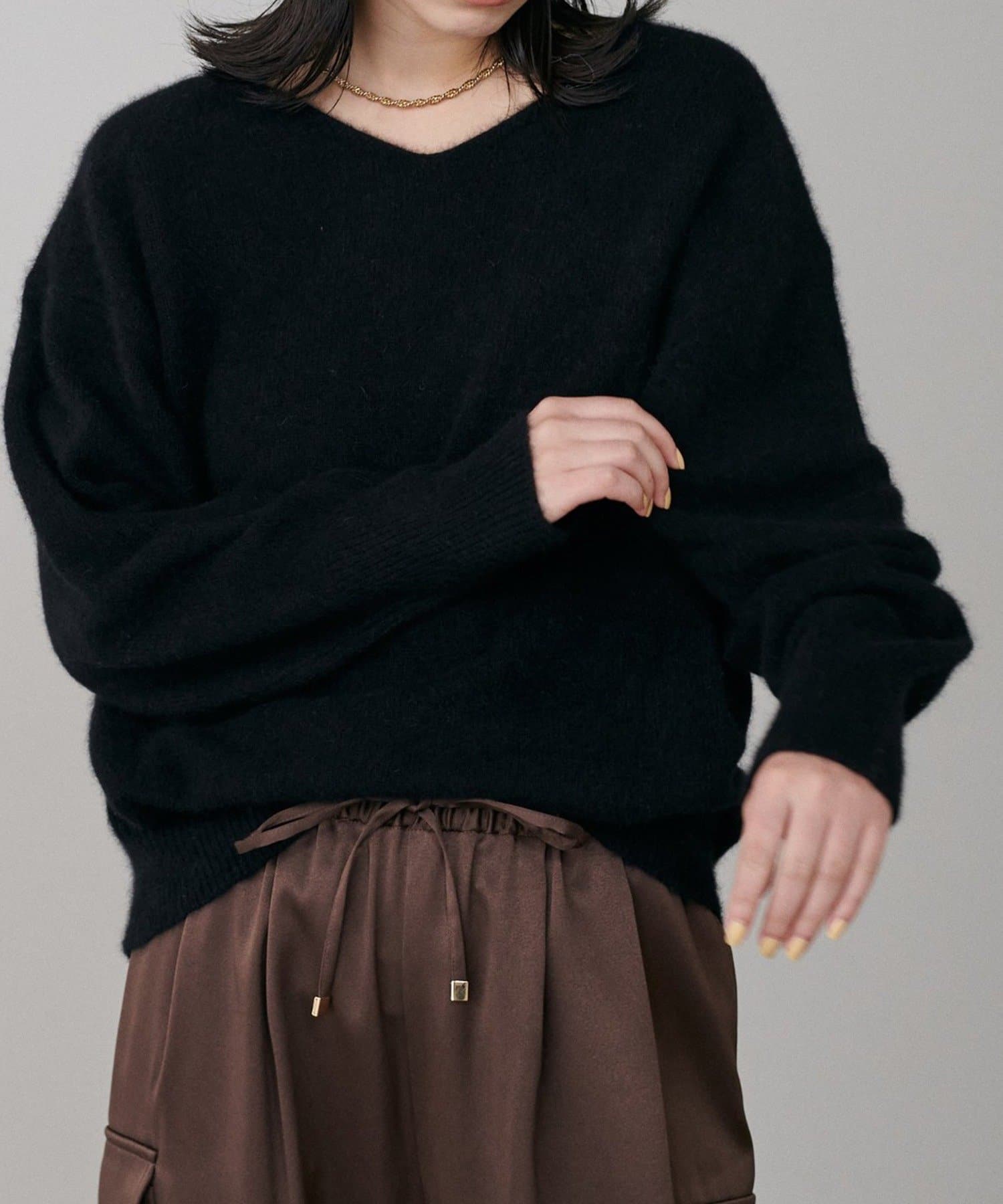 ゆるめのVネックデザインが顔回りをスッキリと見せてくれます。