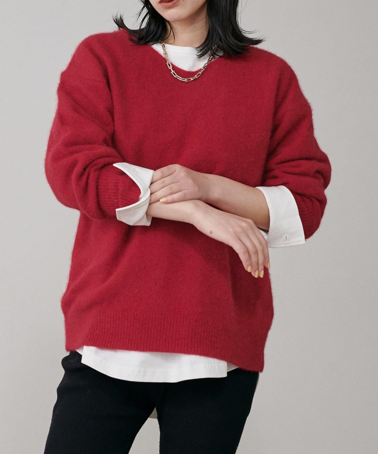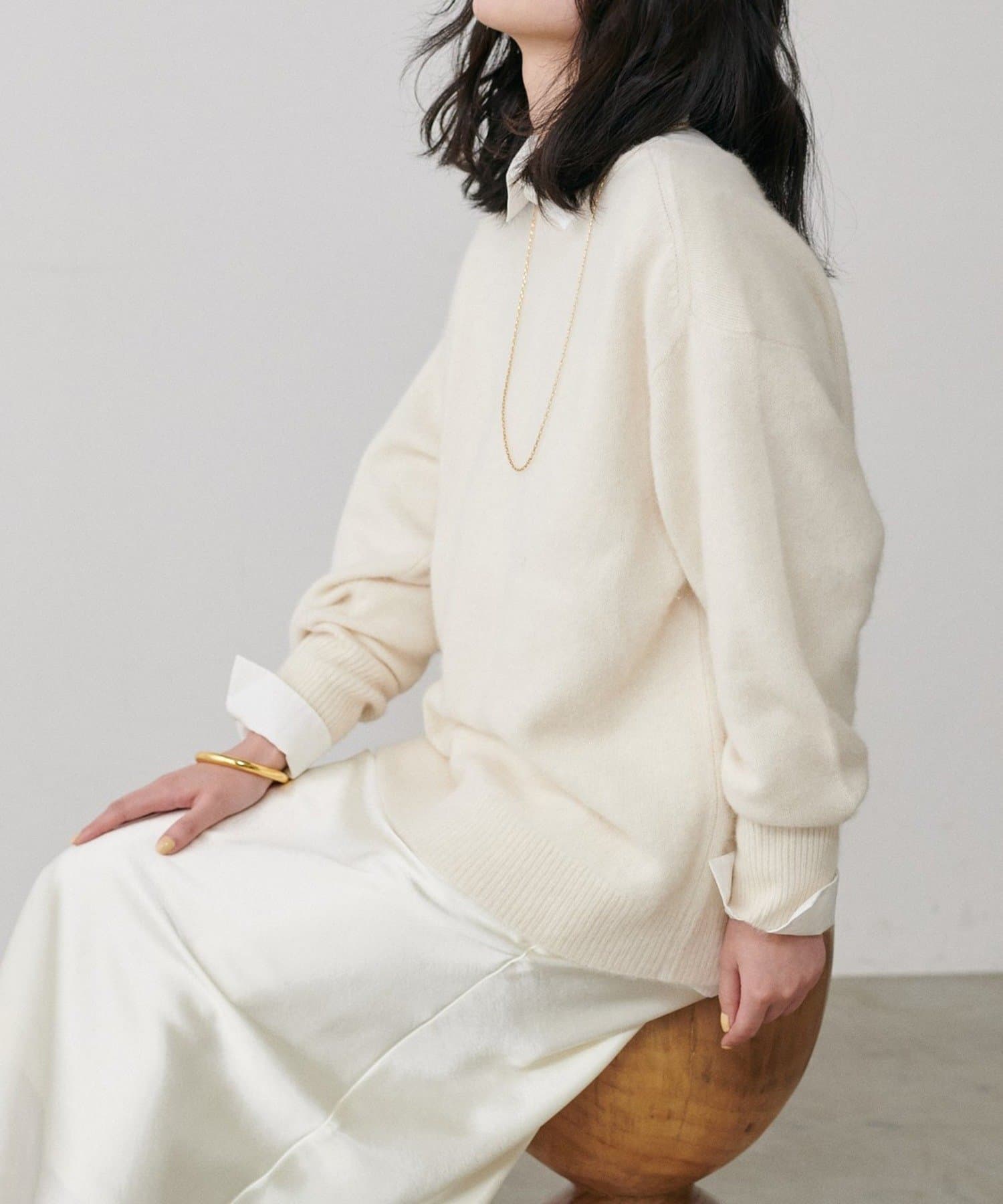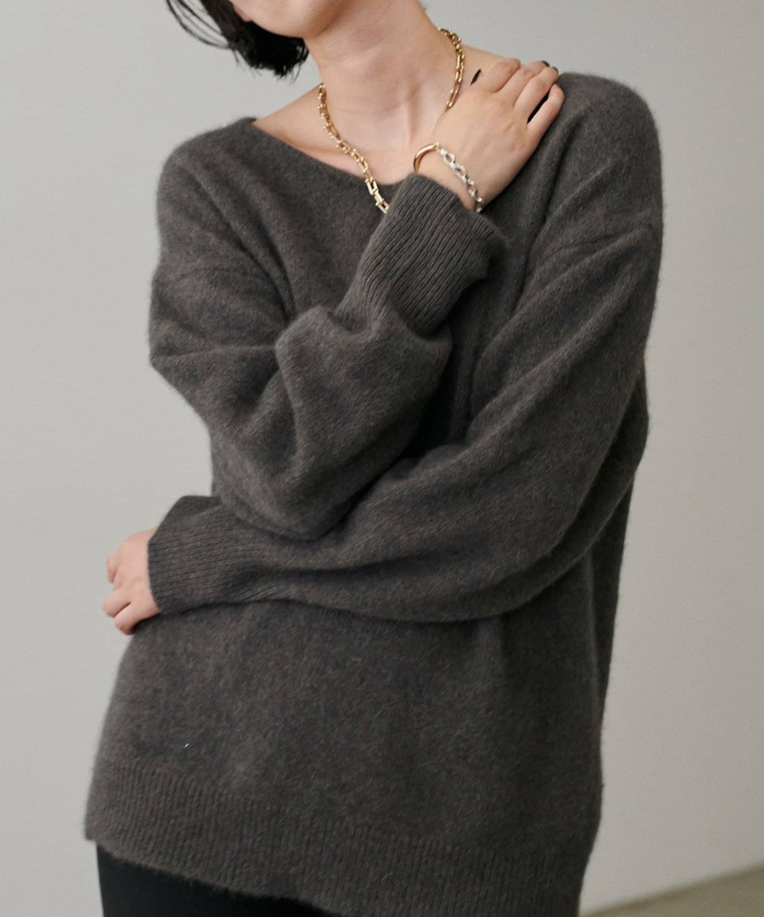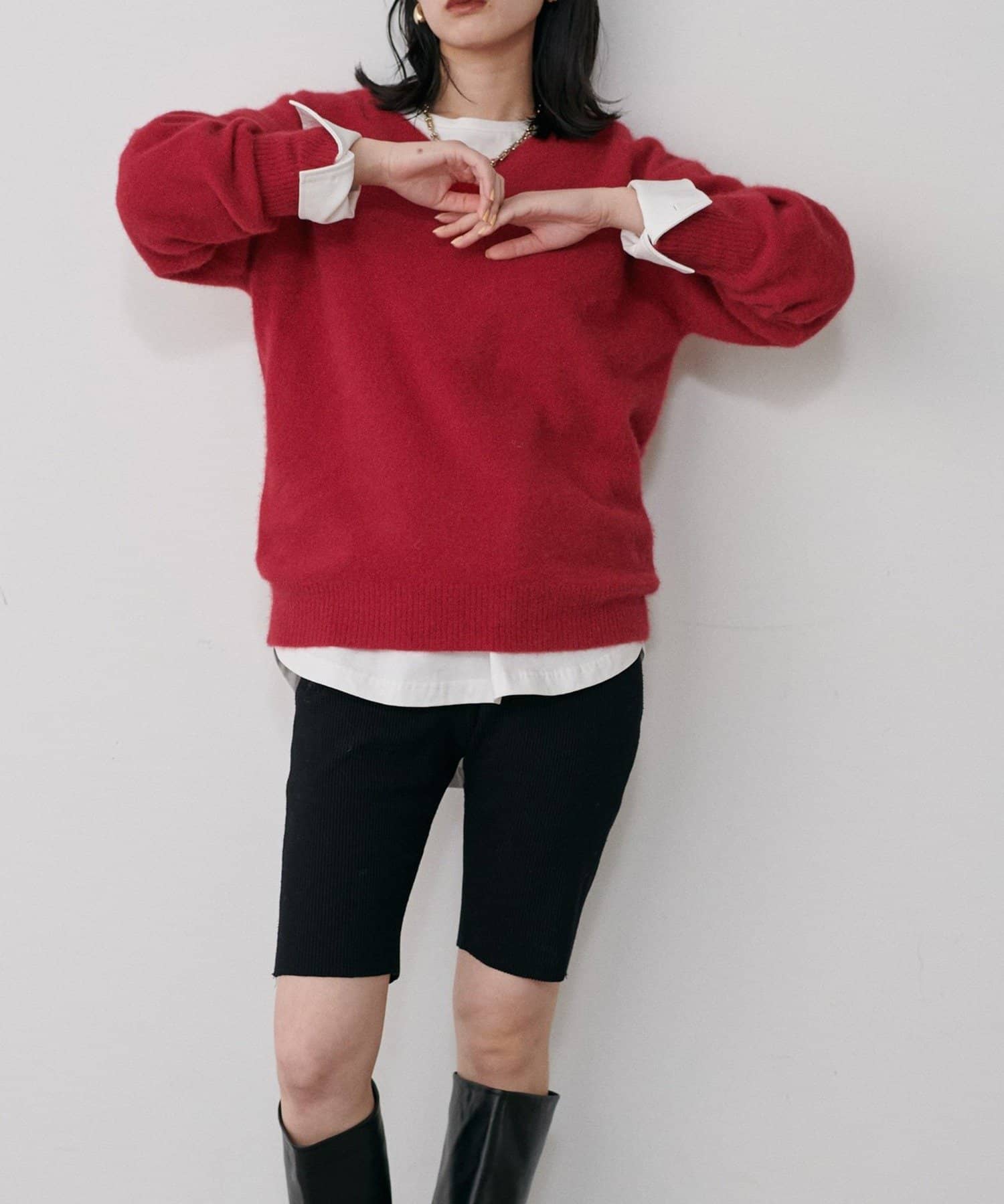 ゆるめのVネックデザインが顔回りをスッキリと見せてくれます。