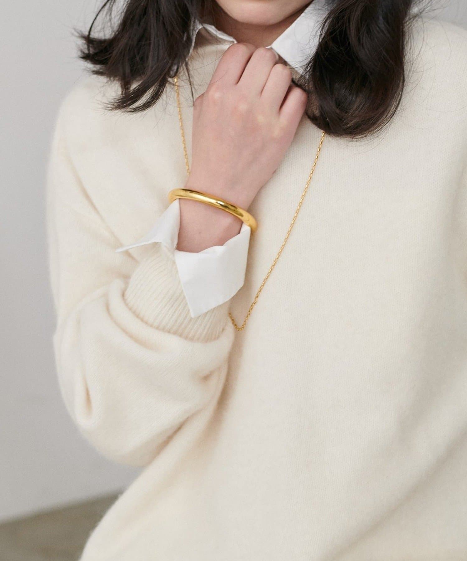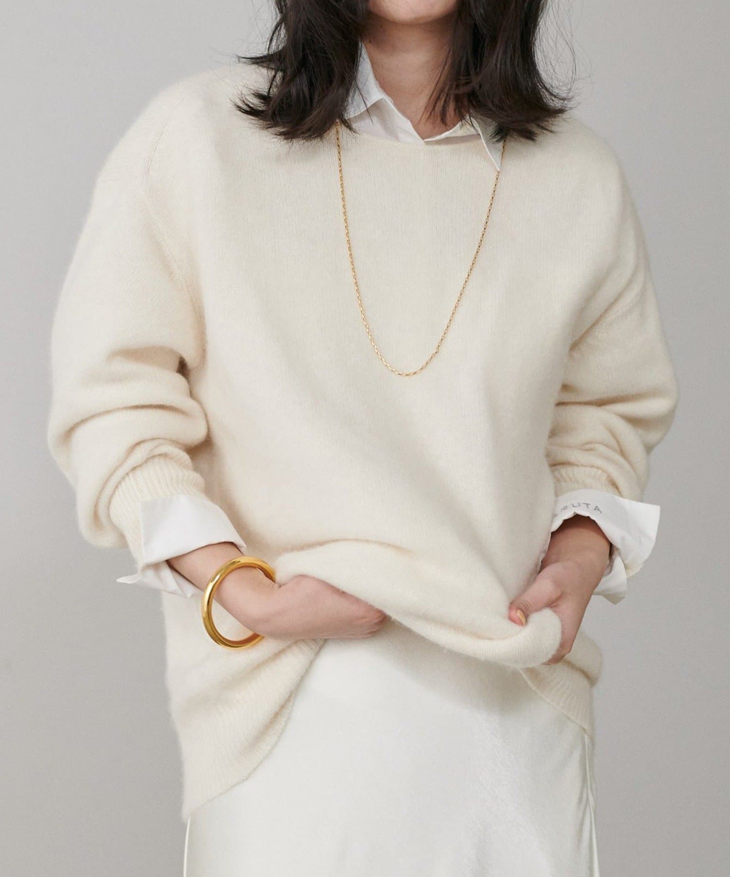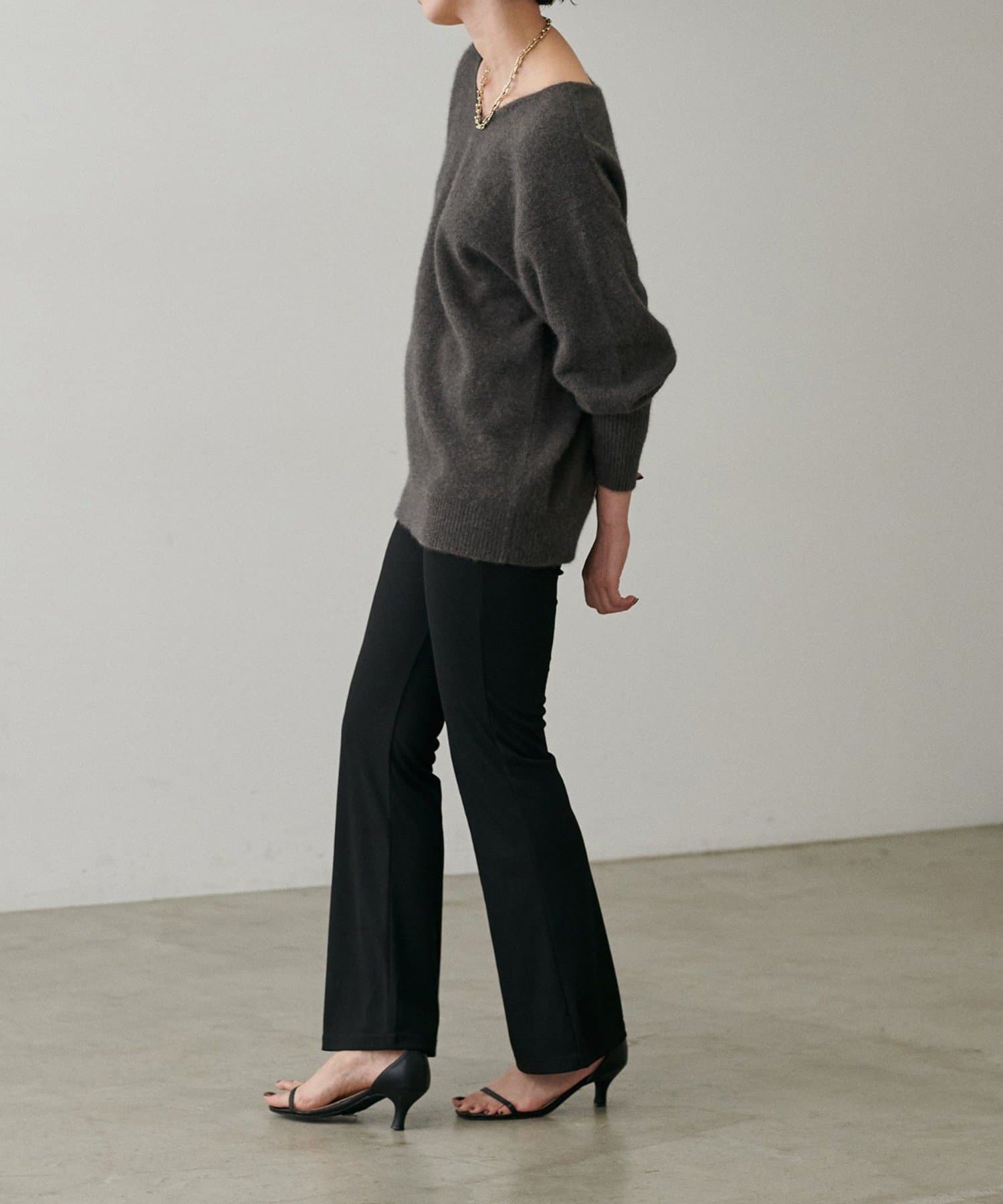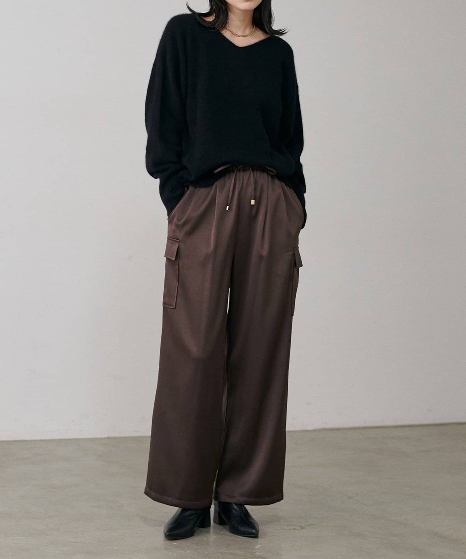 ゆるめのVネックデザインが顔回りをスッキリと見せてくれます。