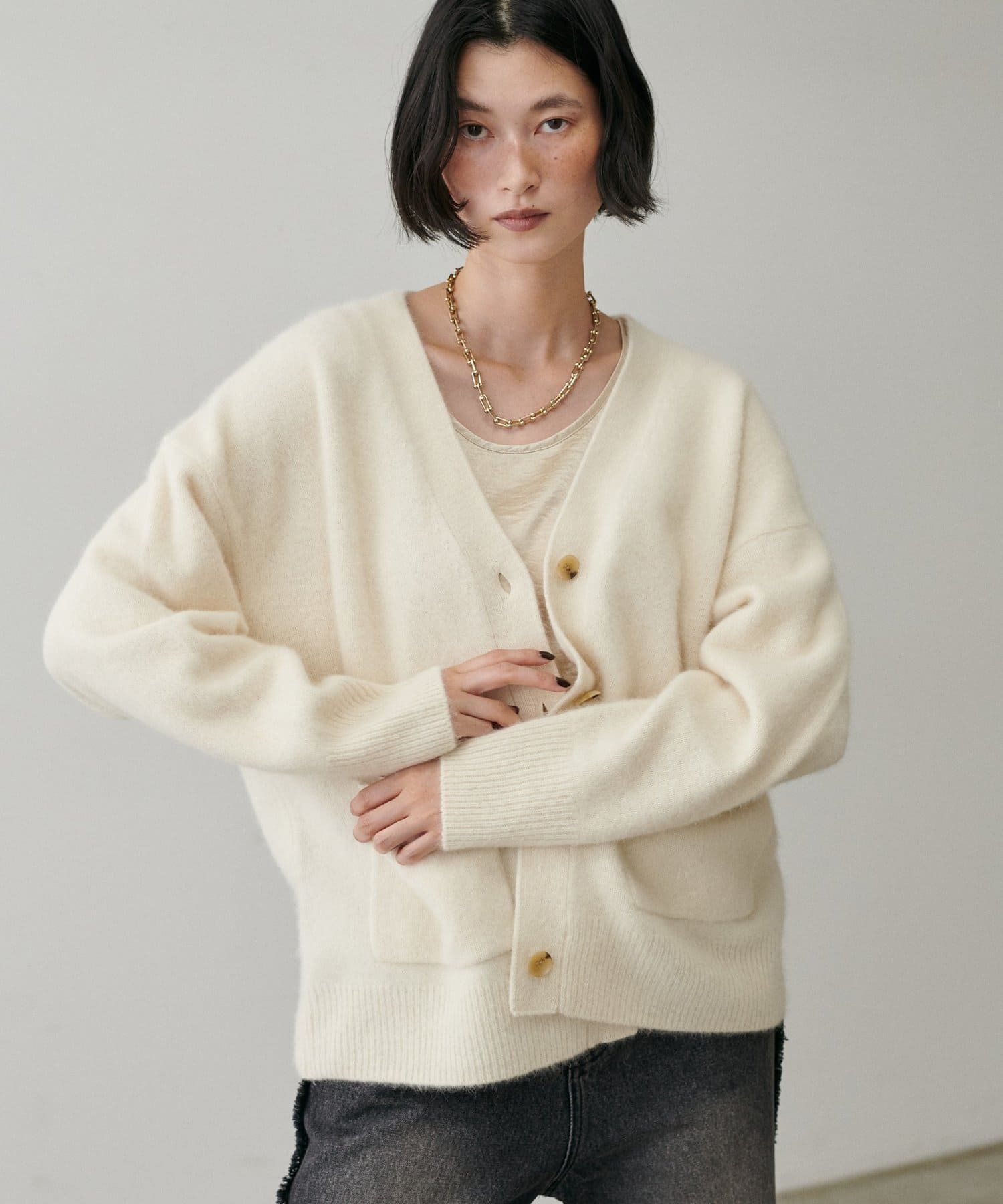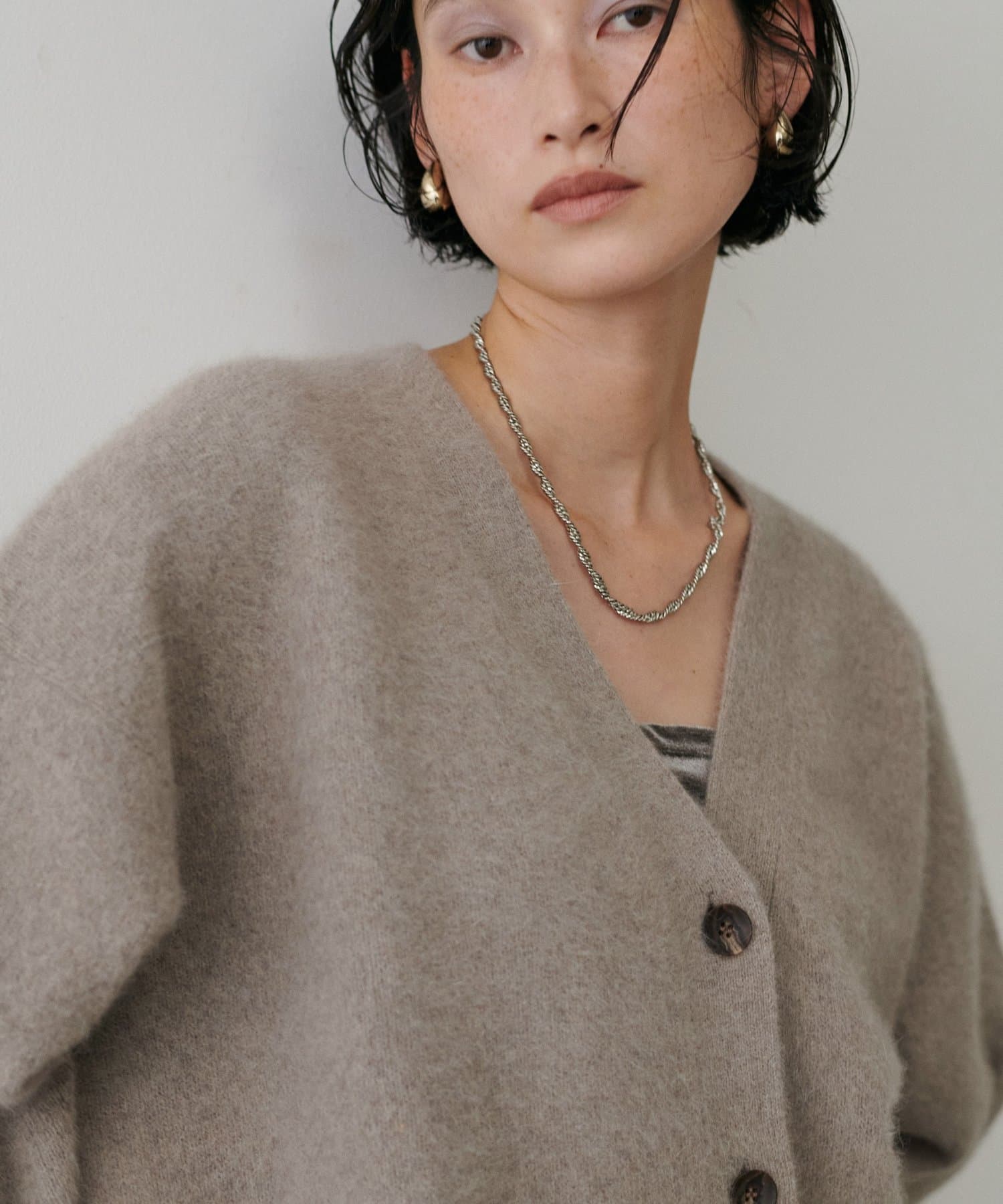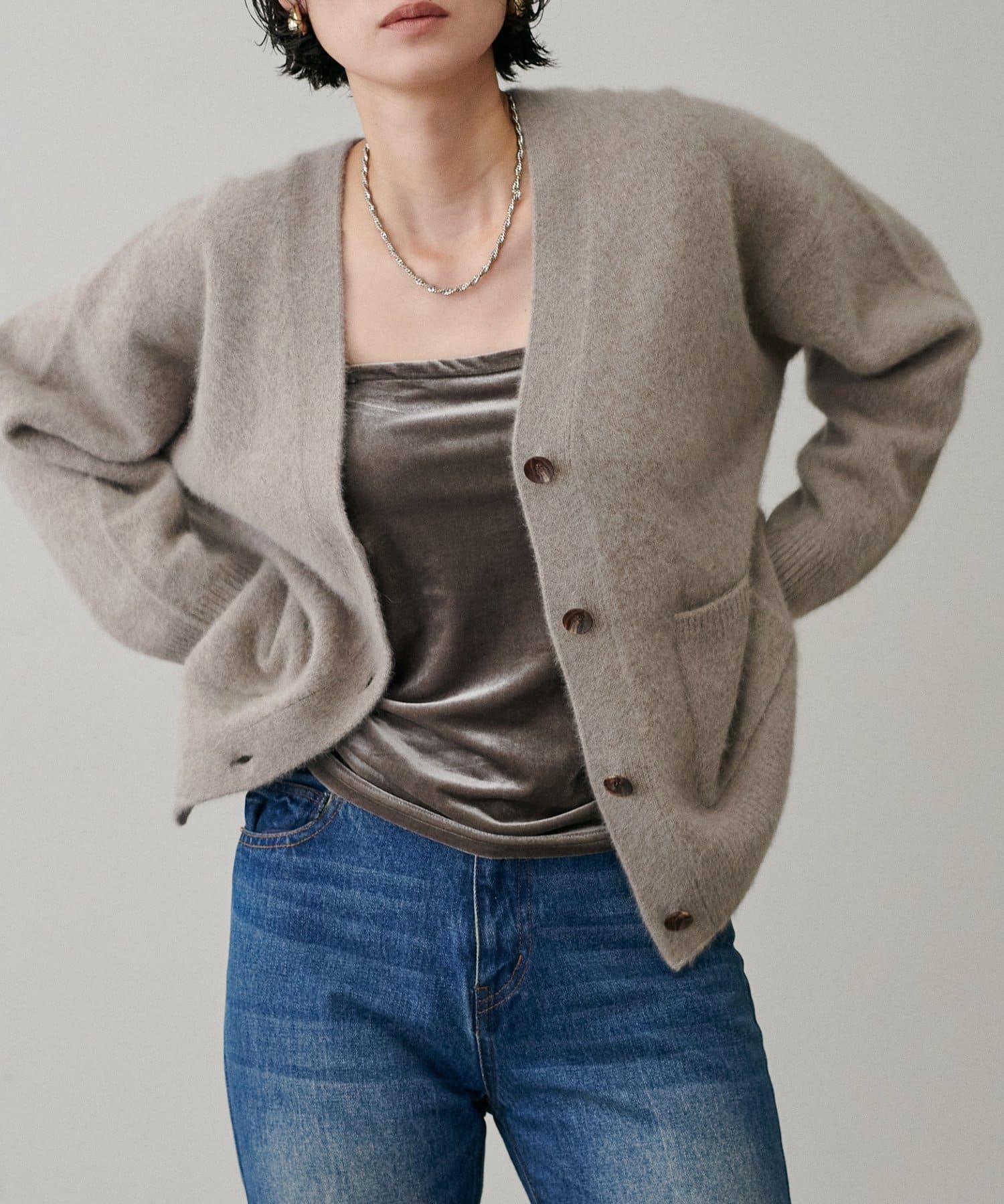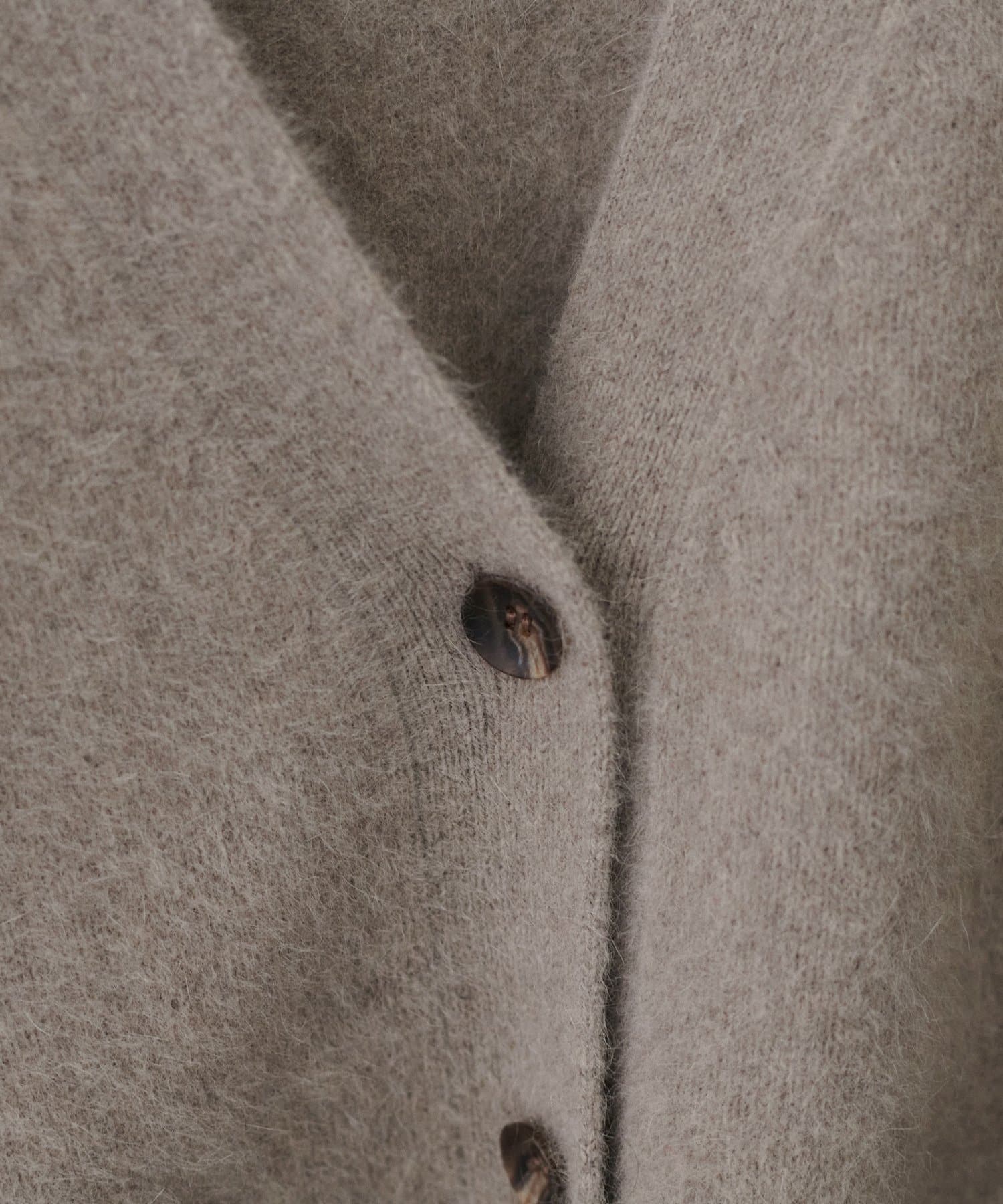 柔らかな毛足のニット地を採用したニットカーディガン。