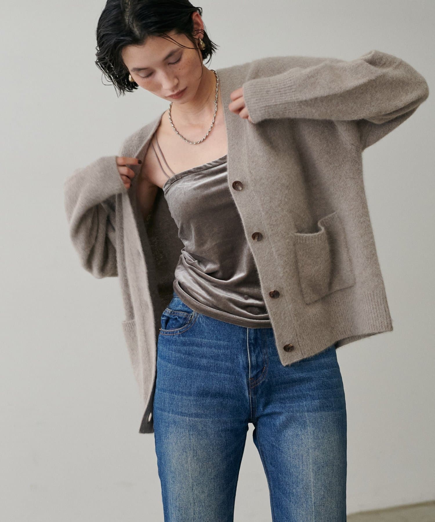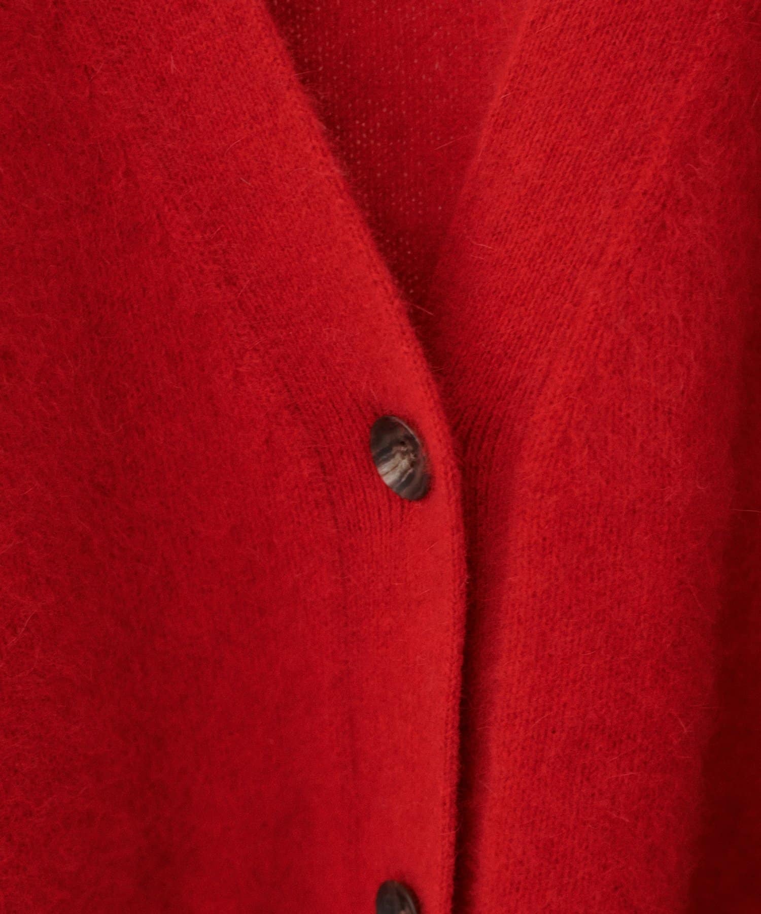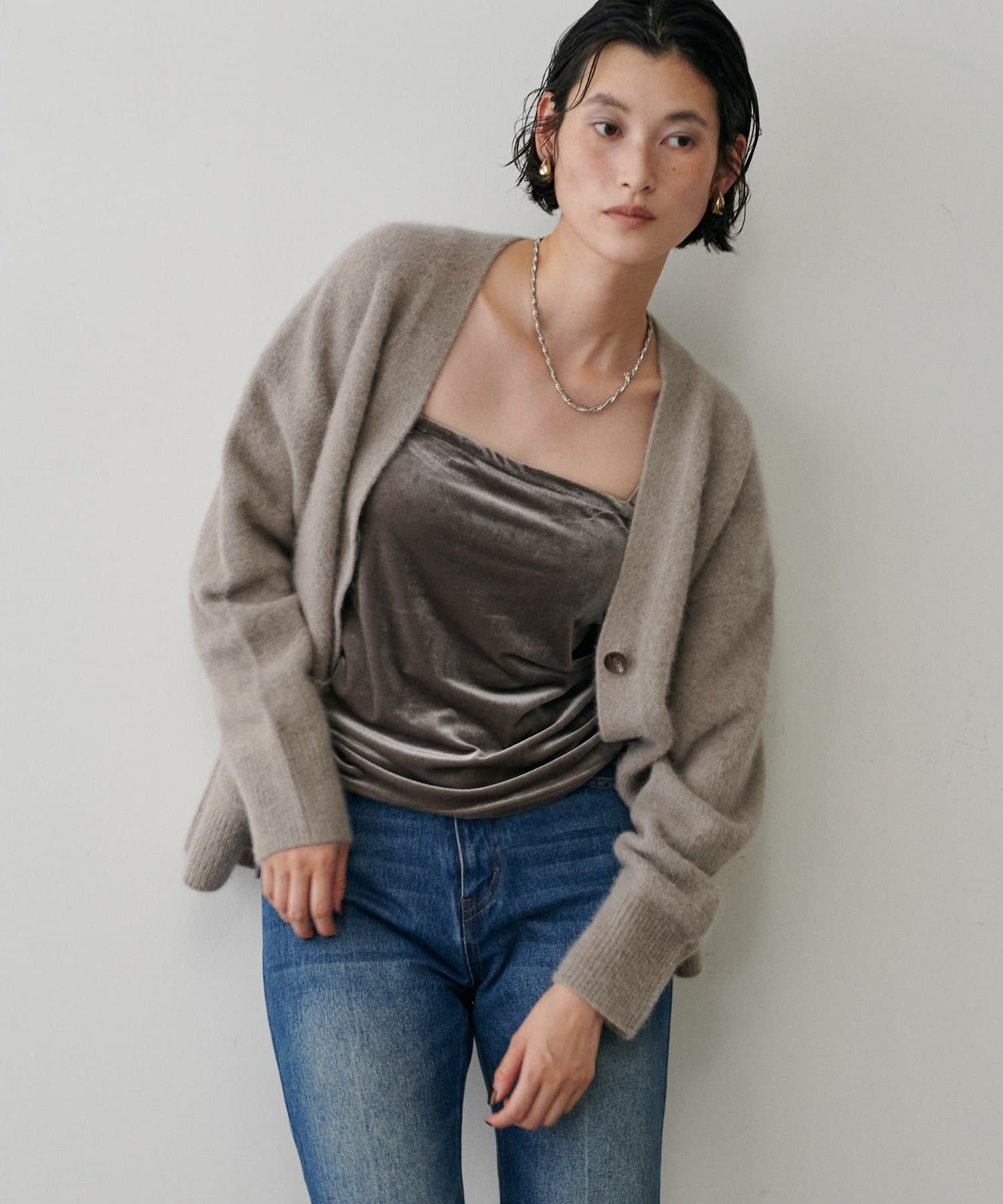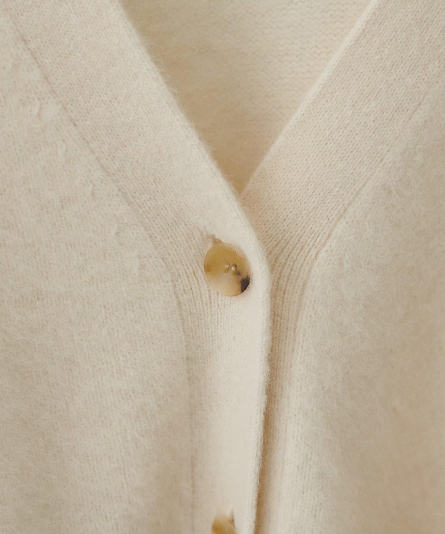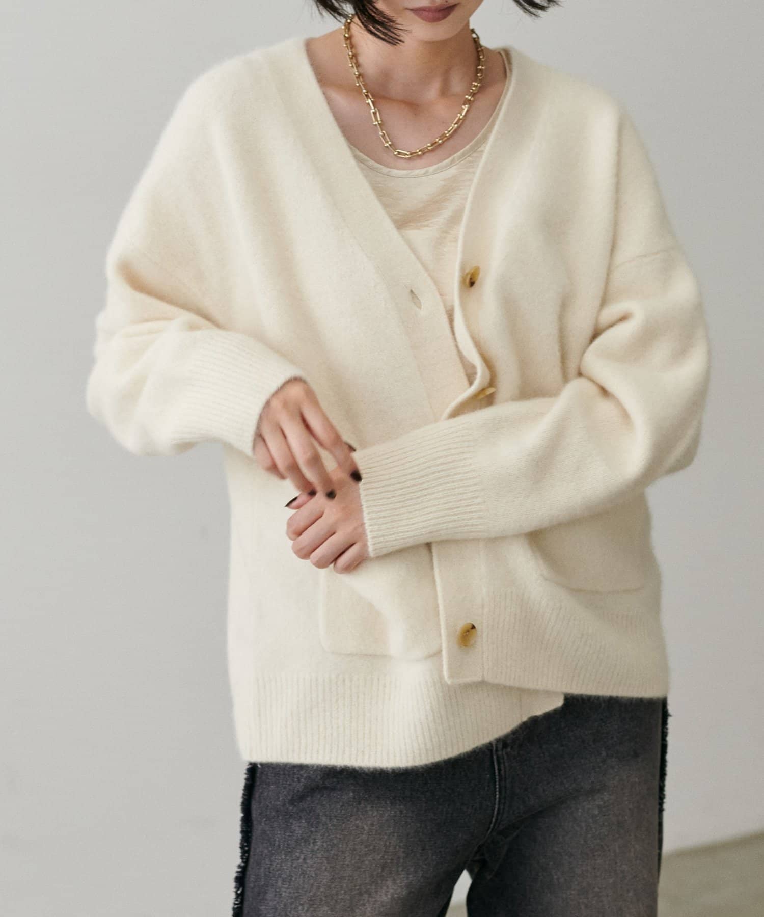 柔らかな毛足のニット地を採用したニットカーディガン。