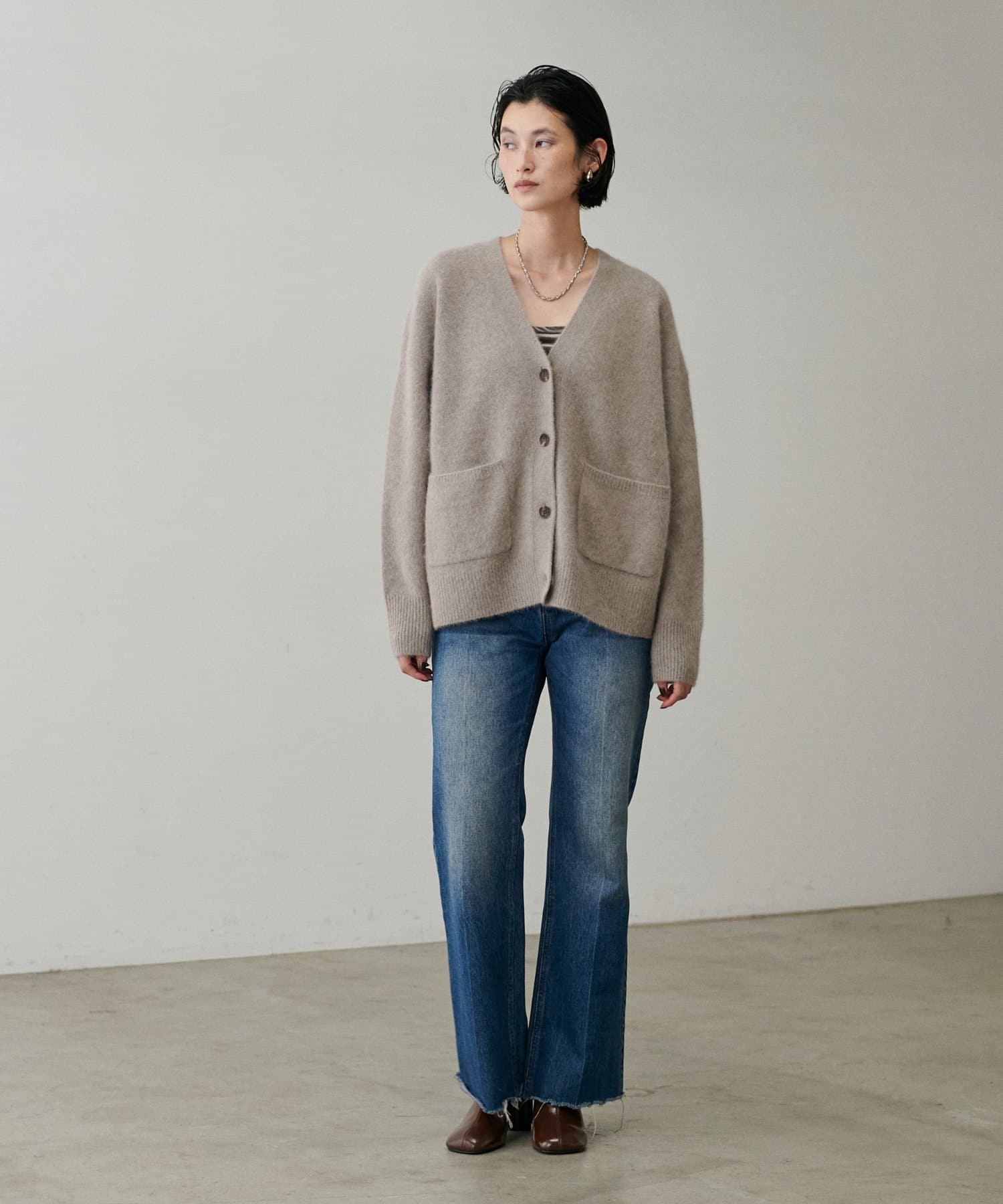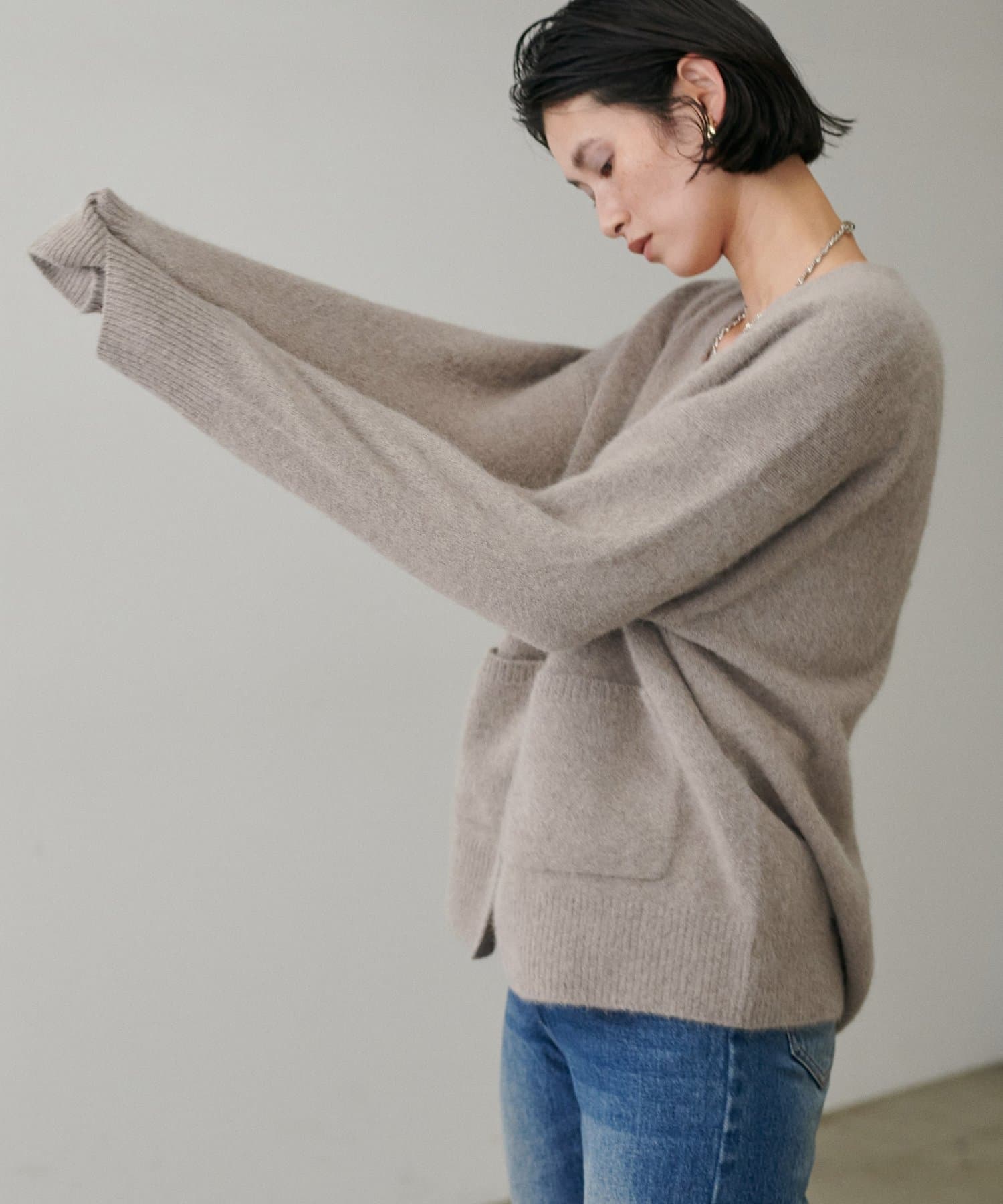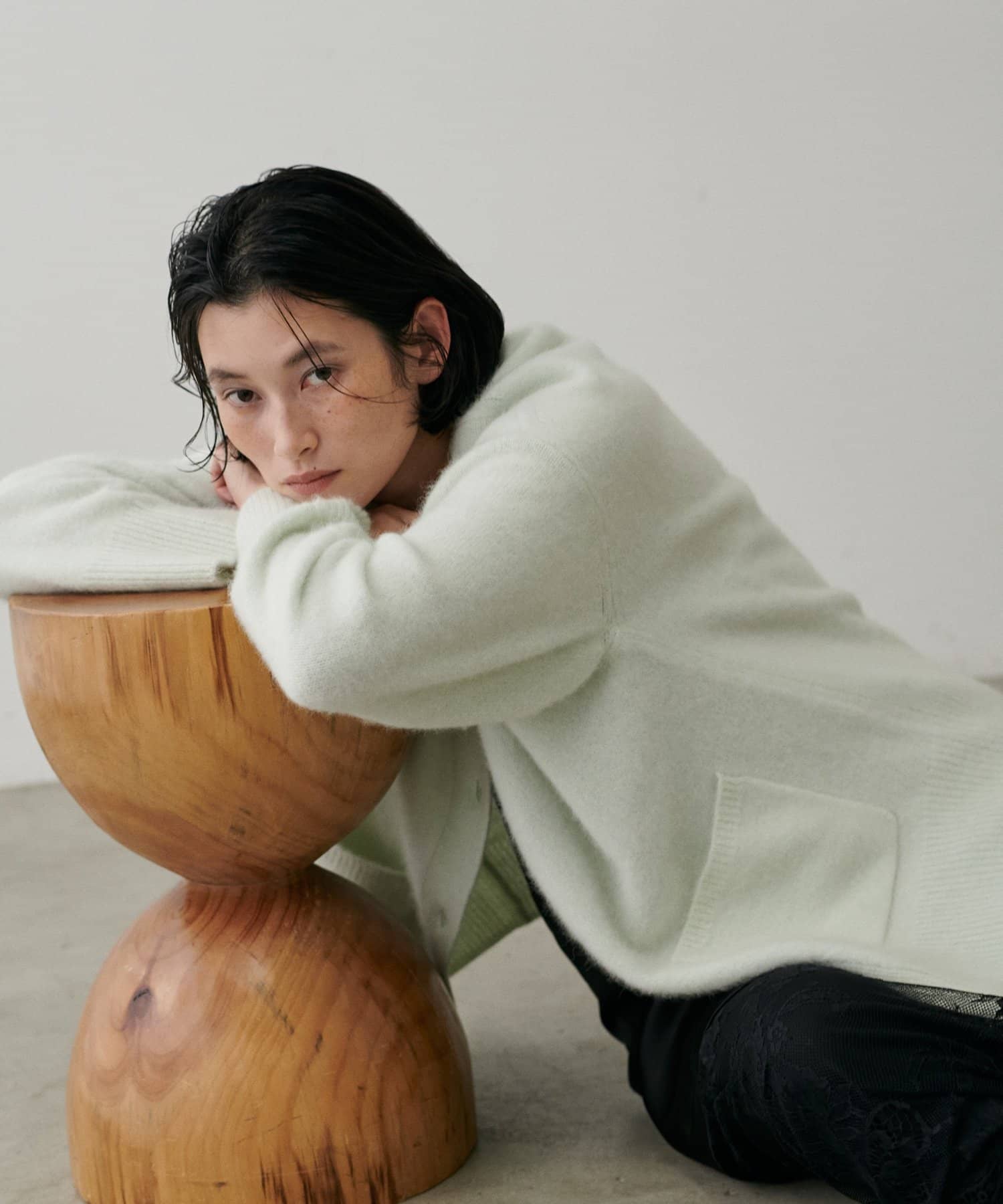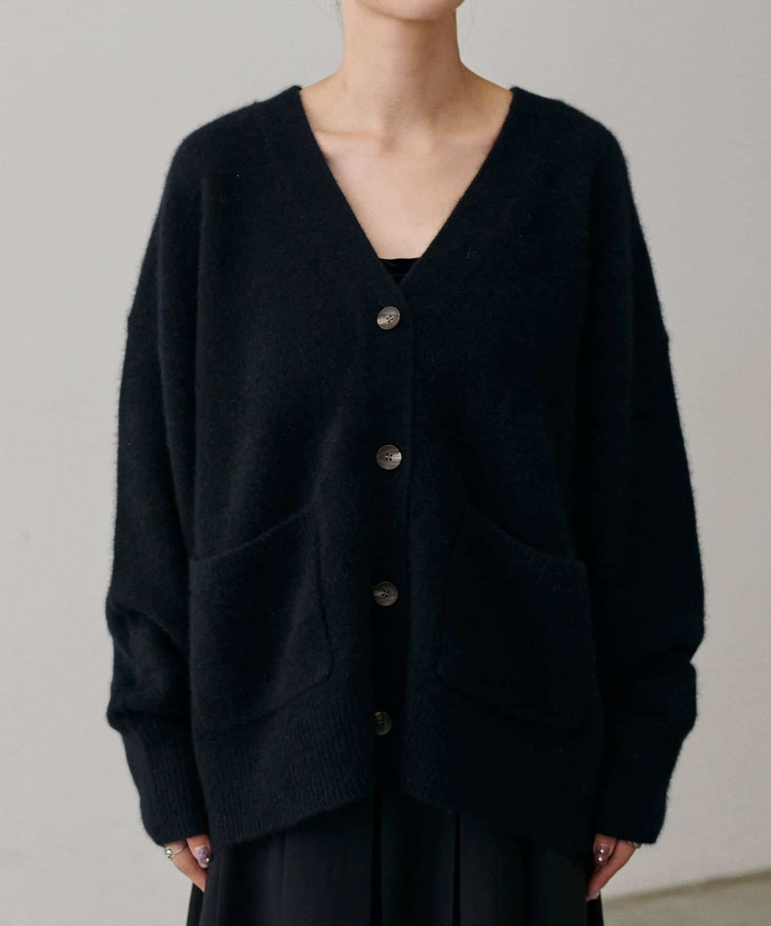 柔らかな毛足のニット地を採用したニットカーディガン。