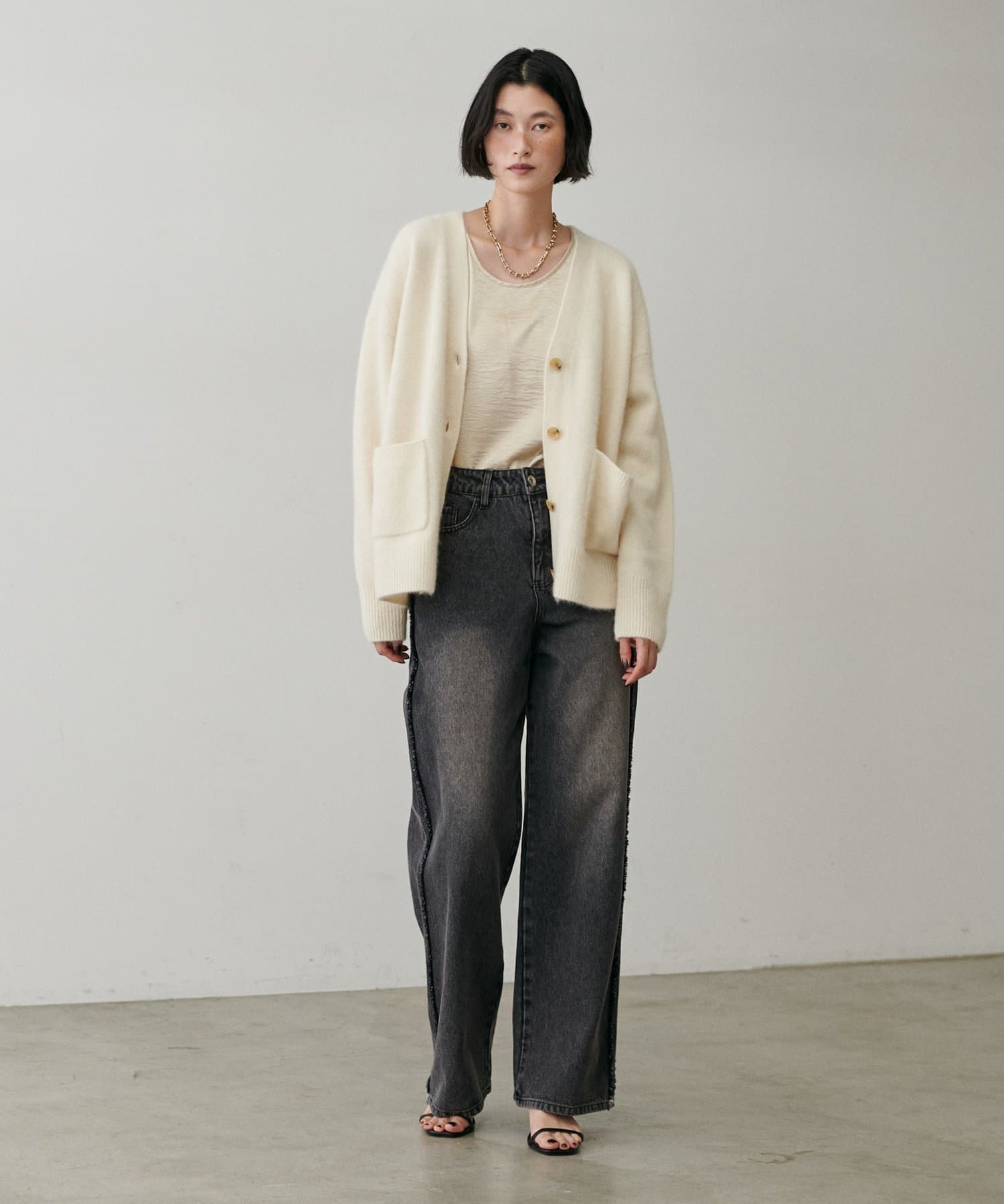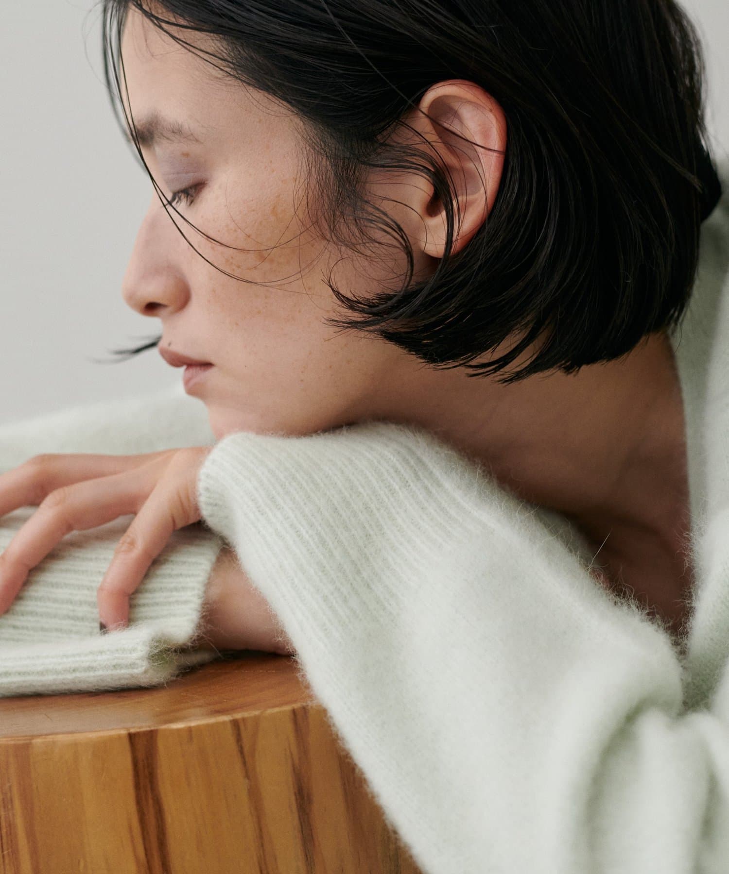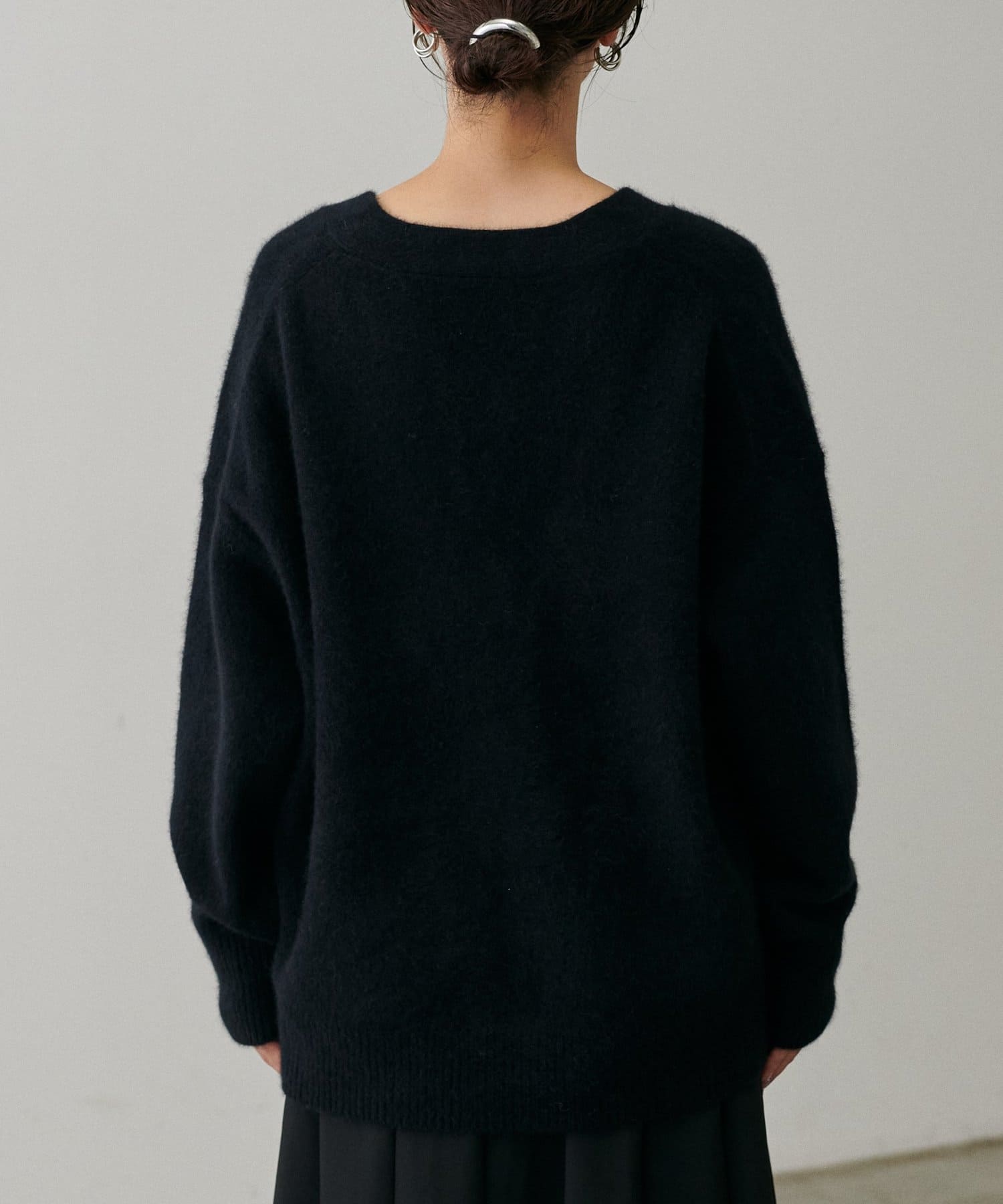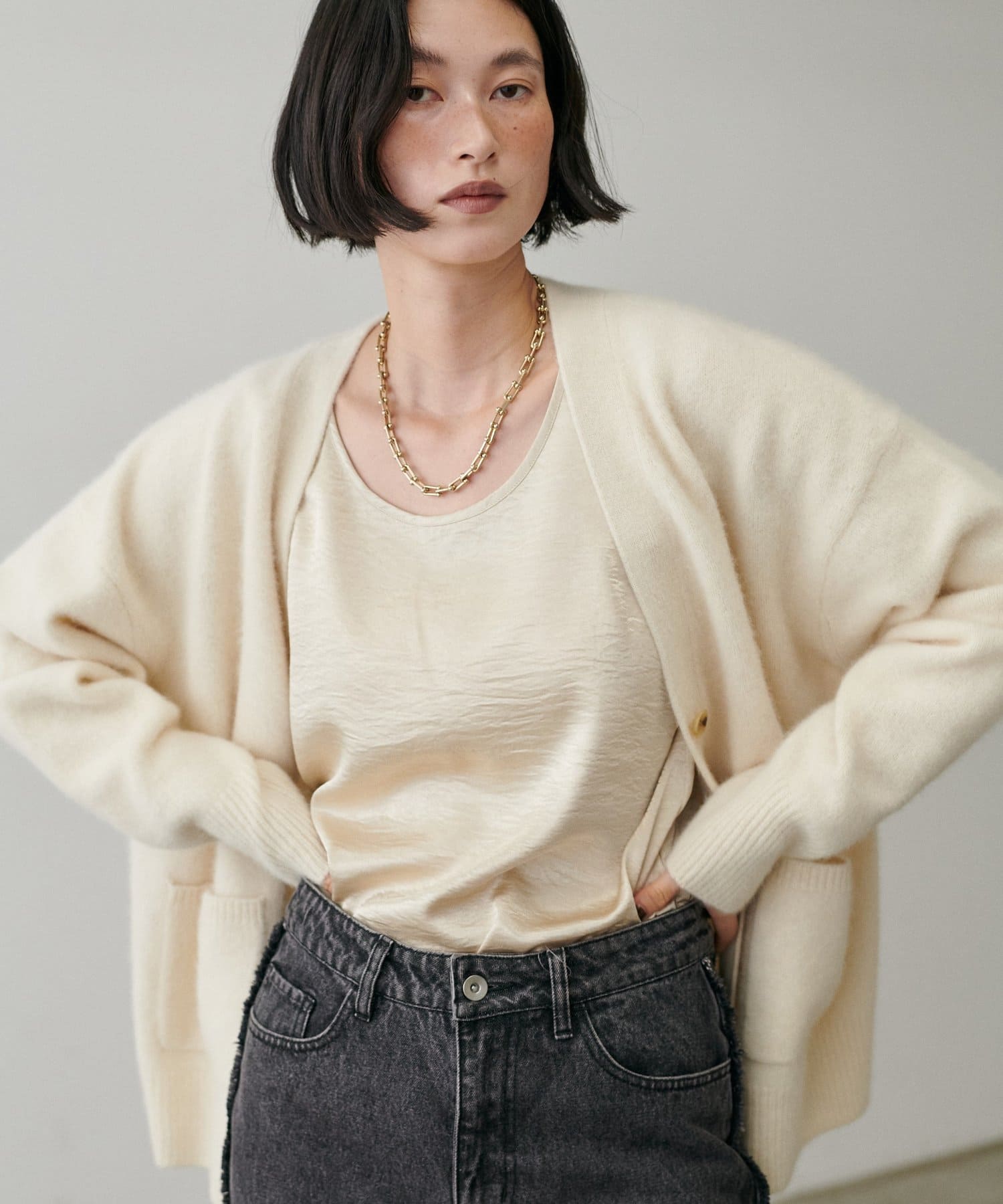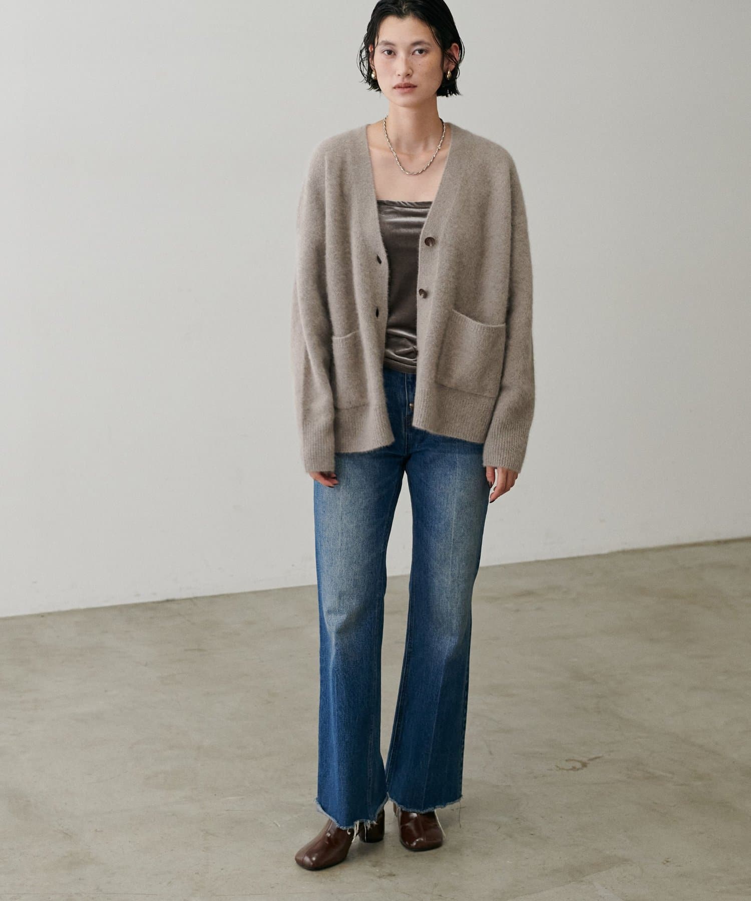 柔らかな毛足のニット地を採用したニットカーディガン。