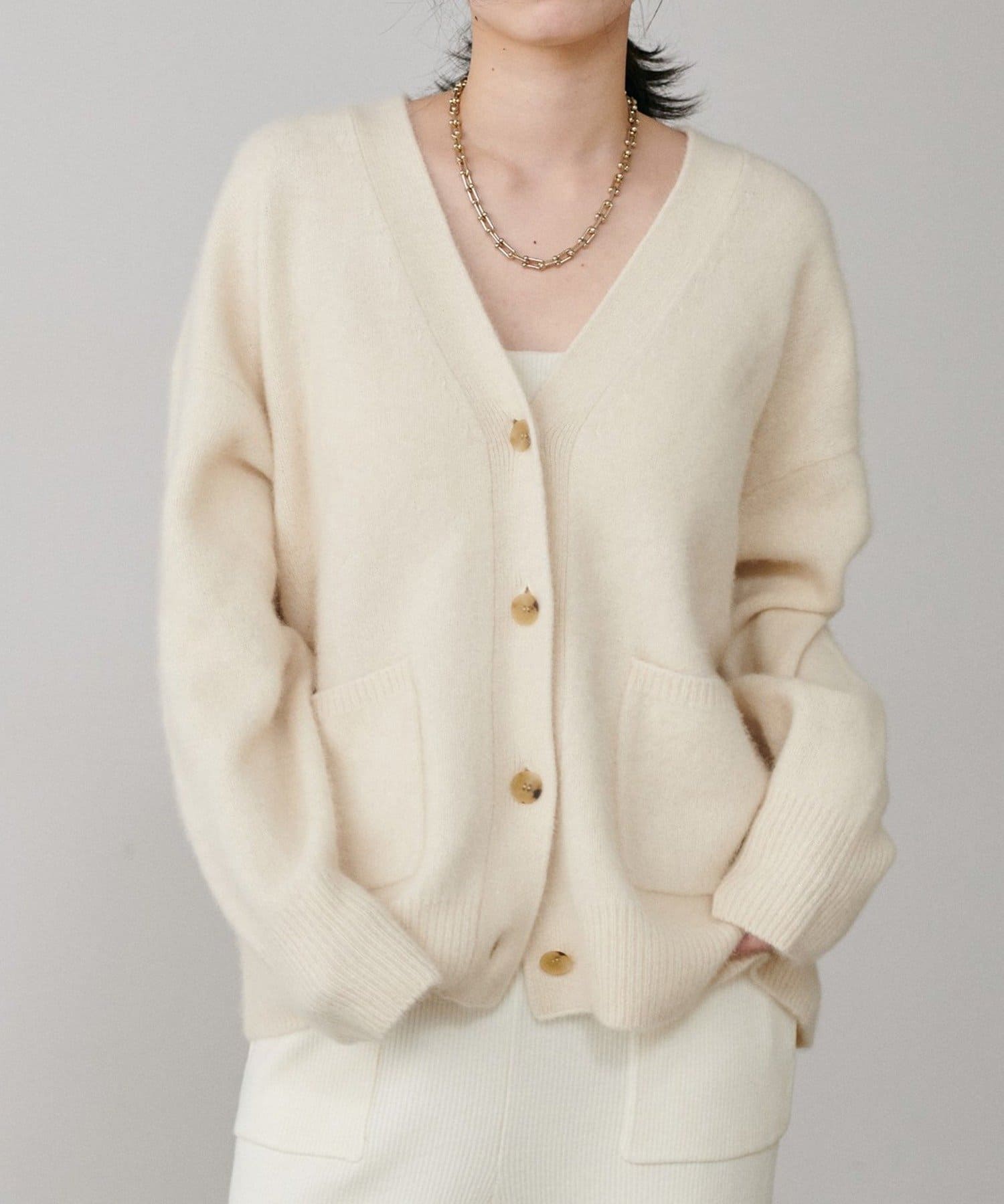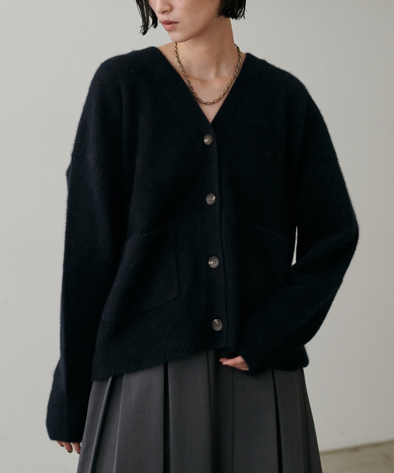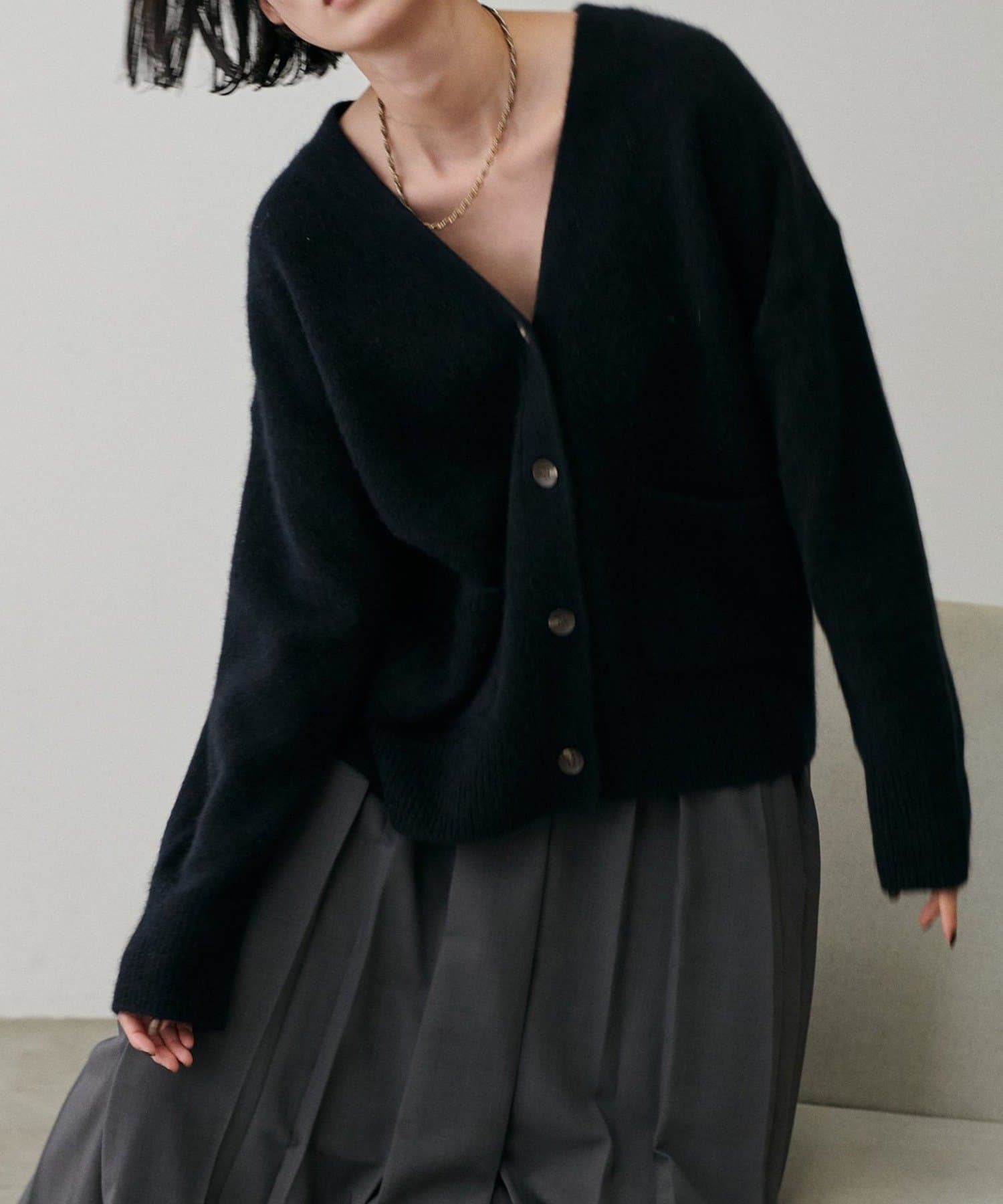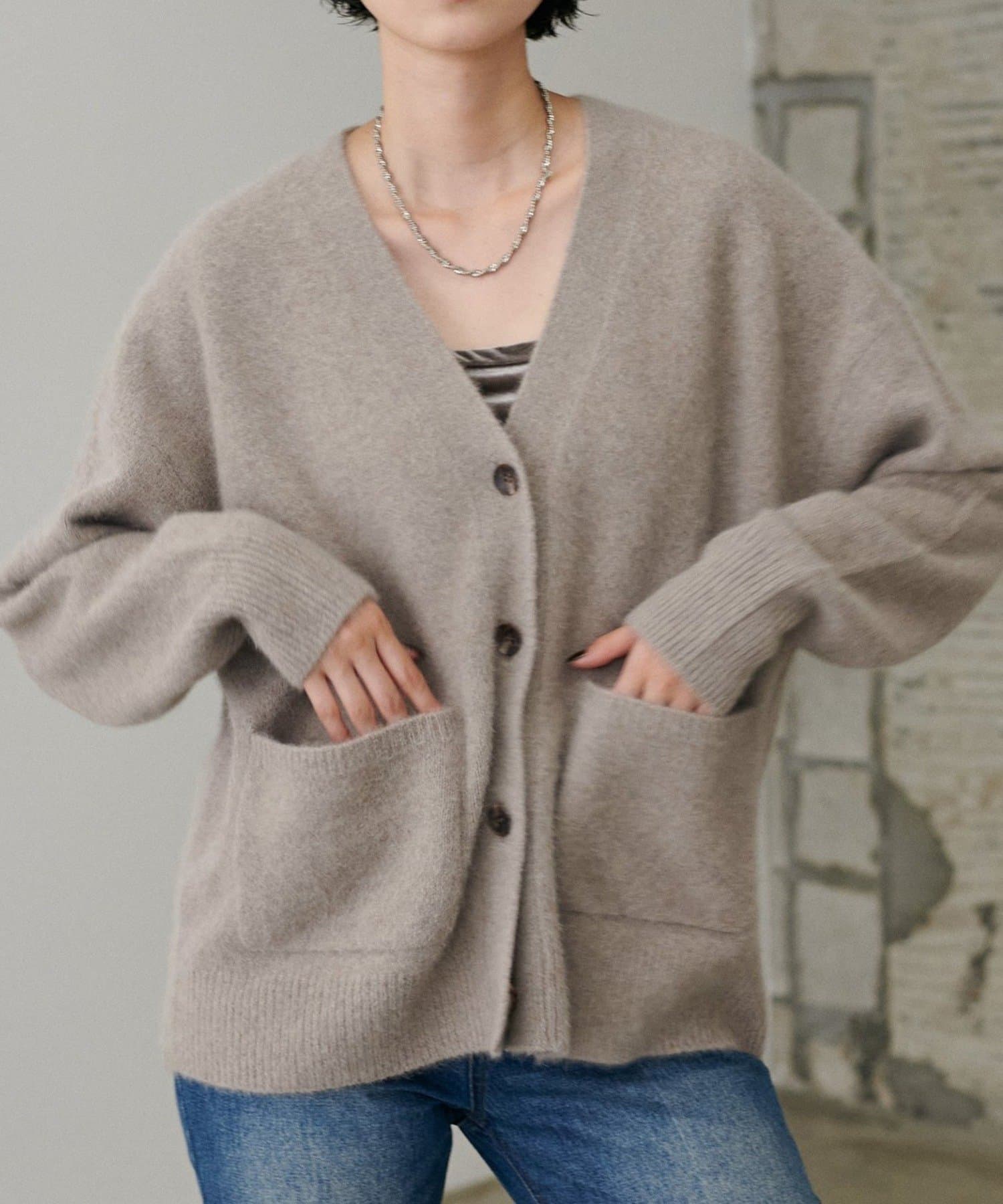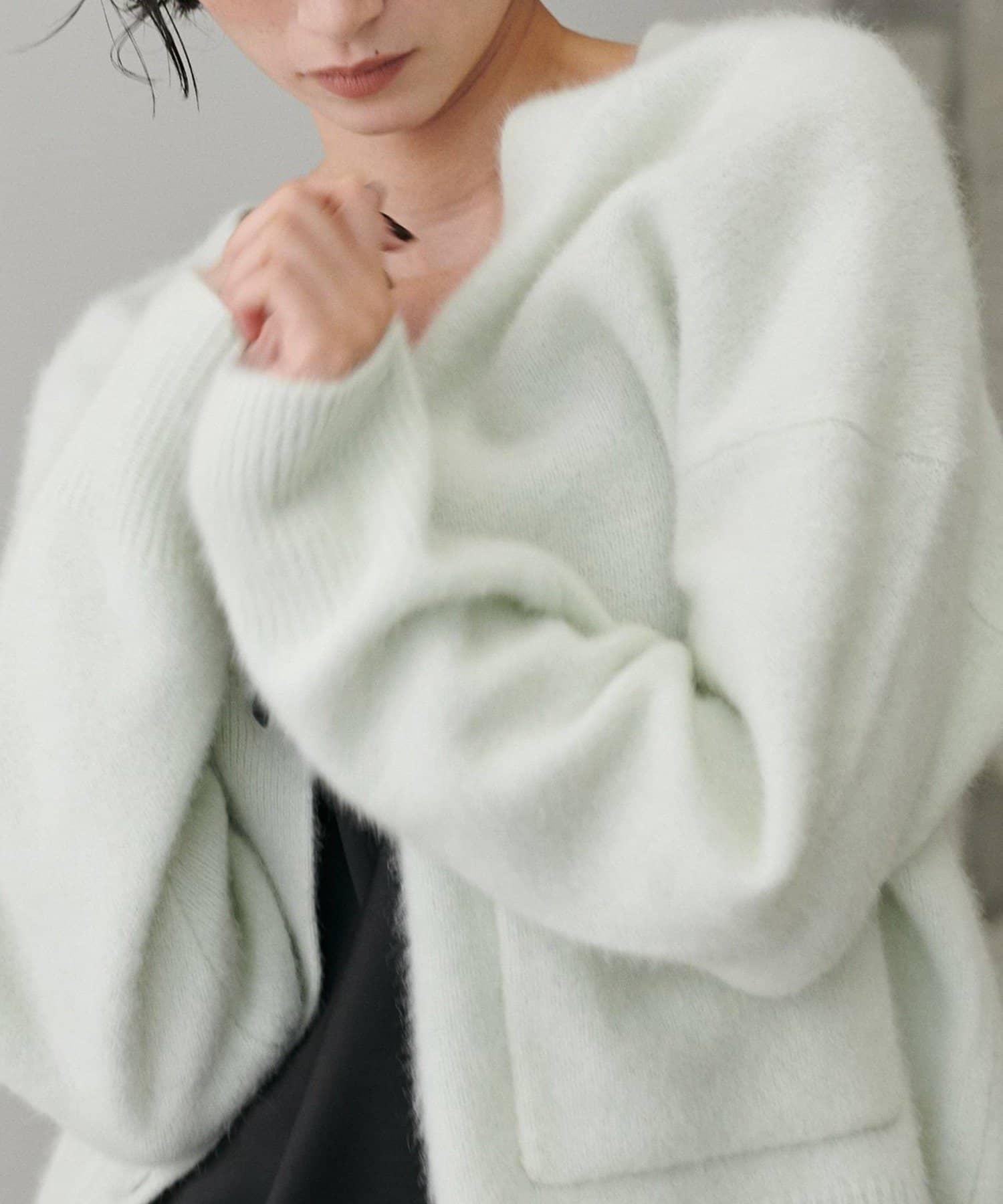 柔らかな毛足のニット地を採用したニットカーディガン。