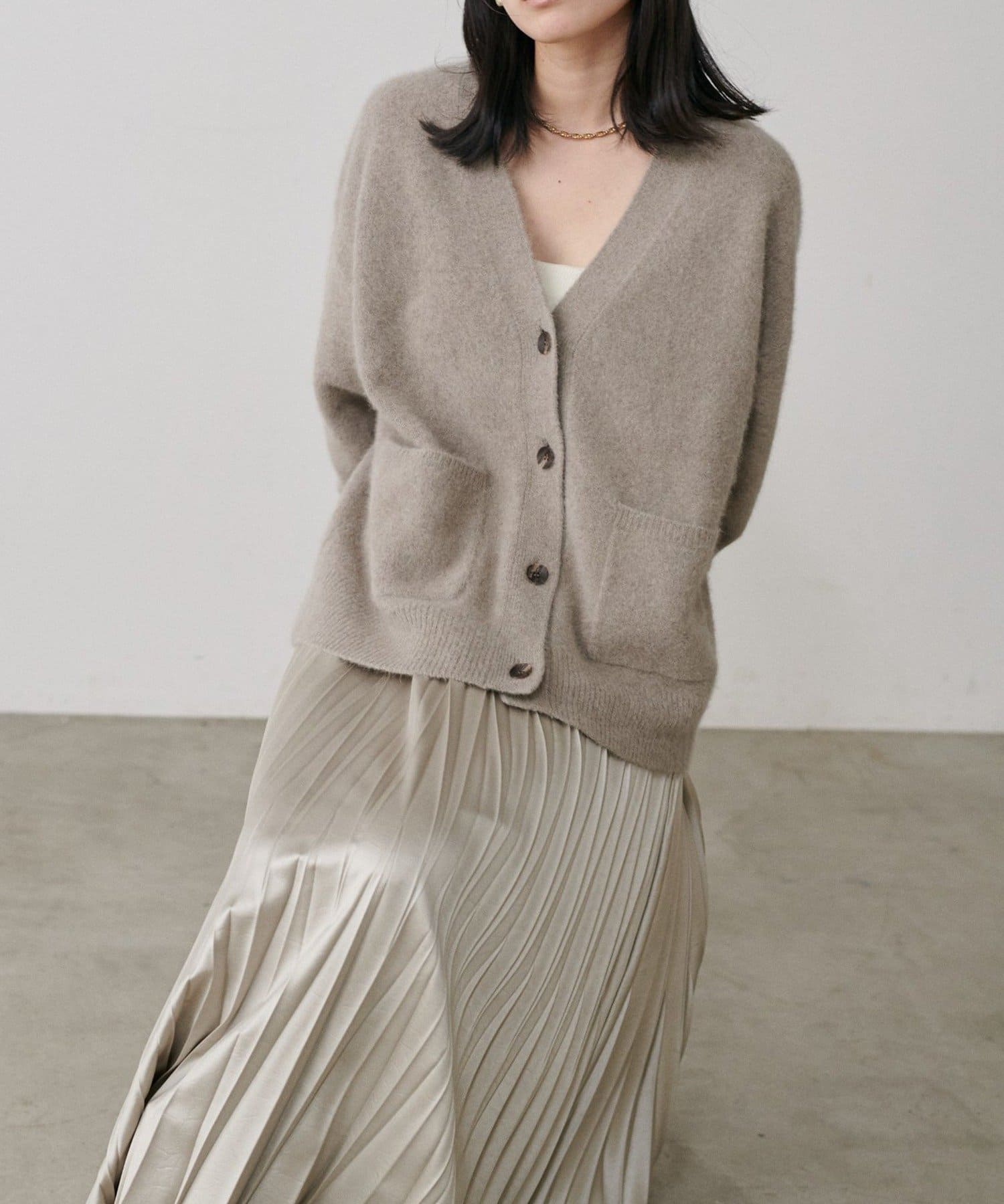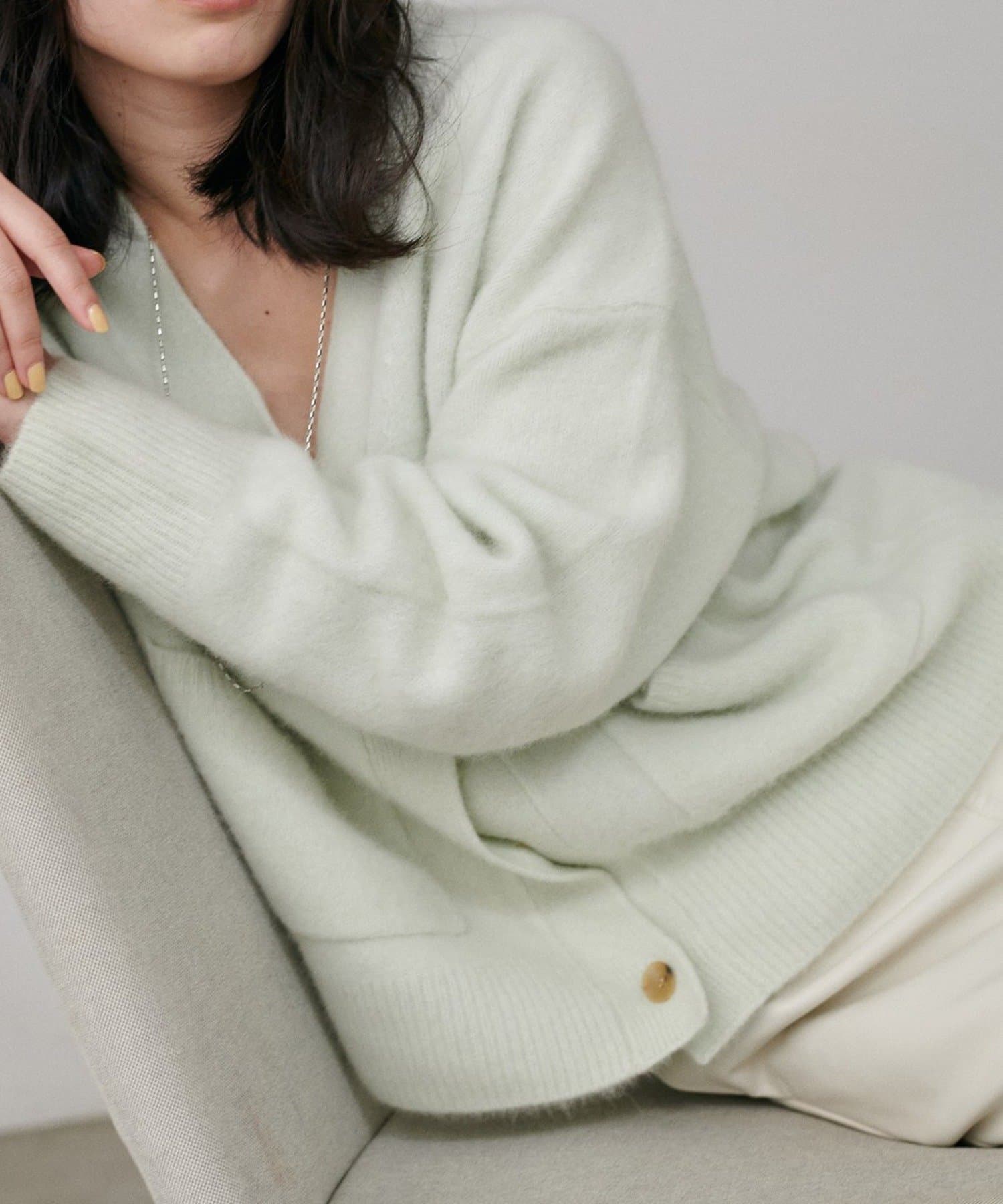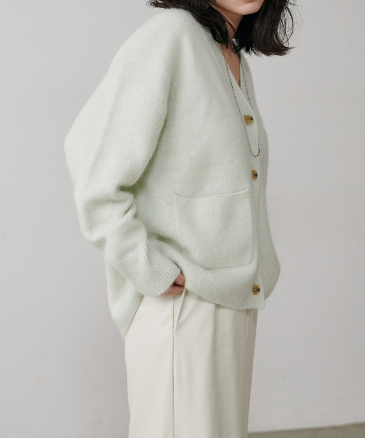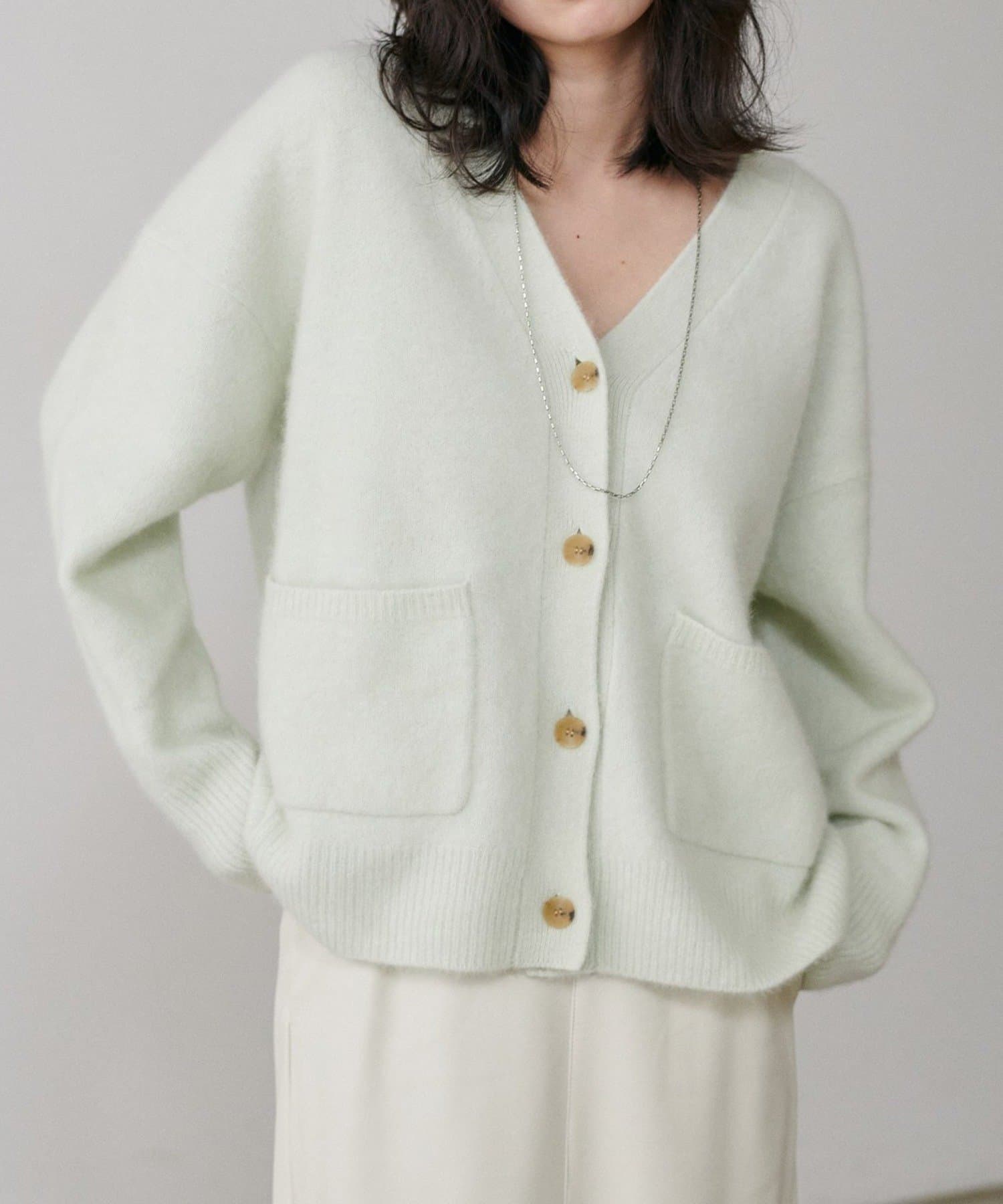 柔らかな毛足のニット地を採用したニットカーディガン。