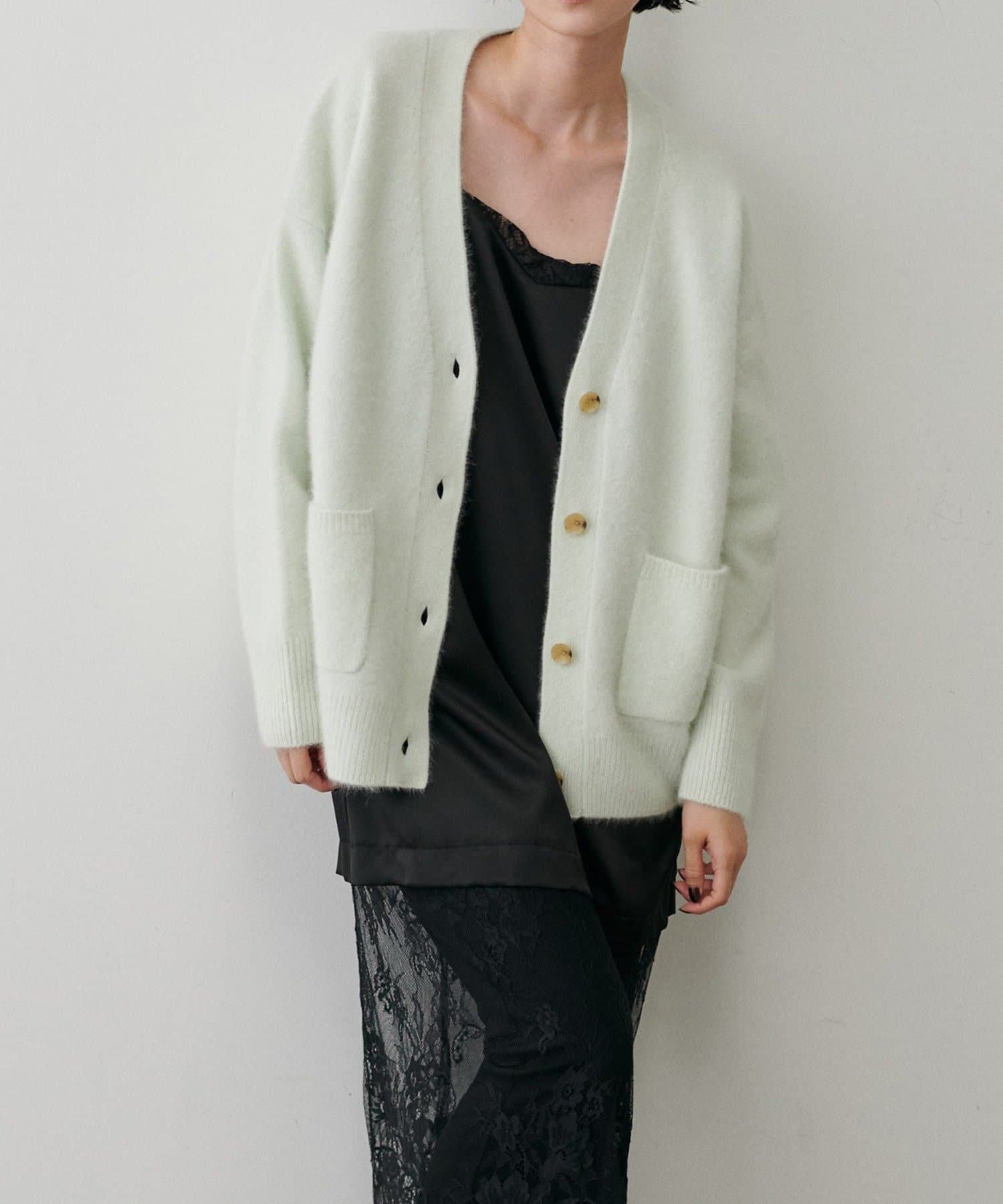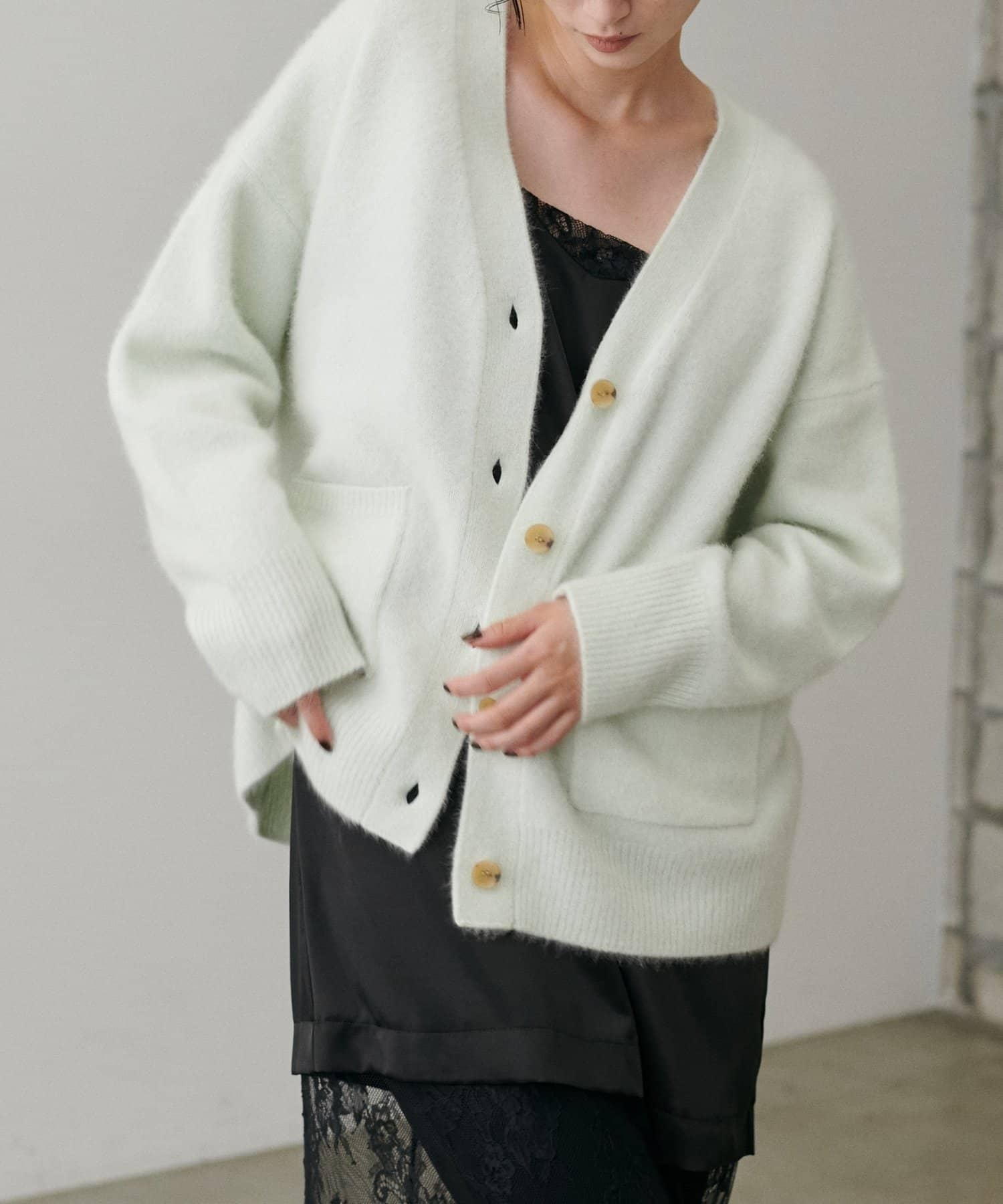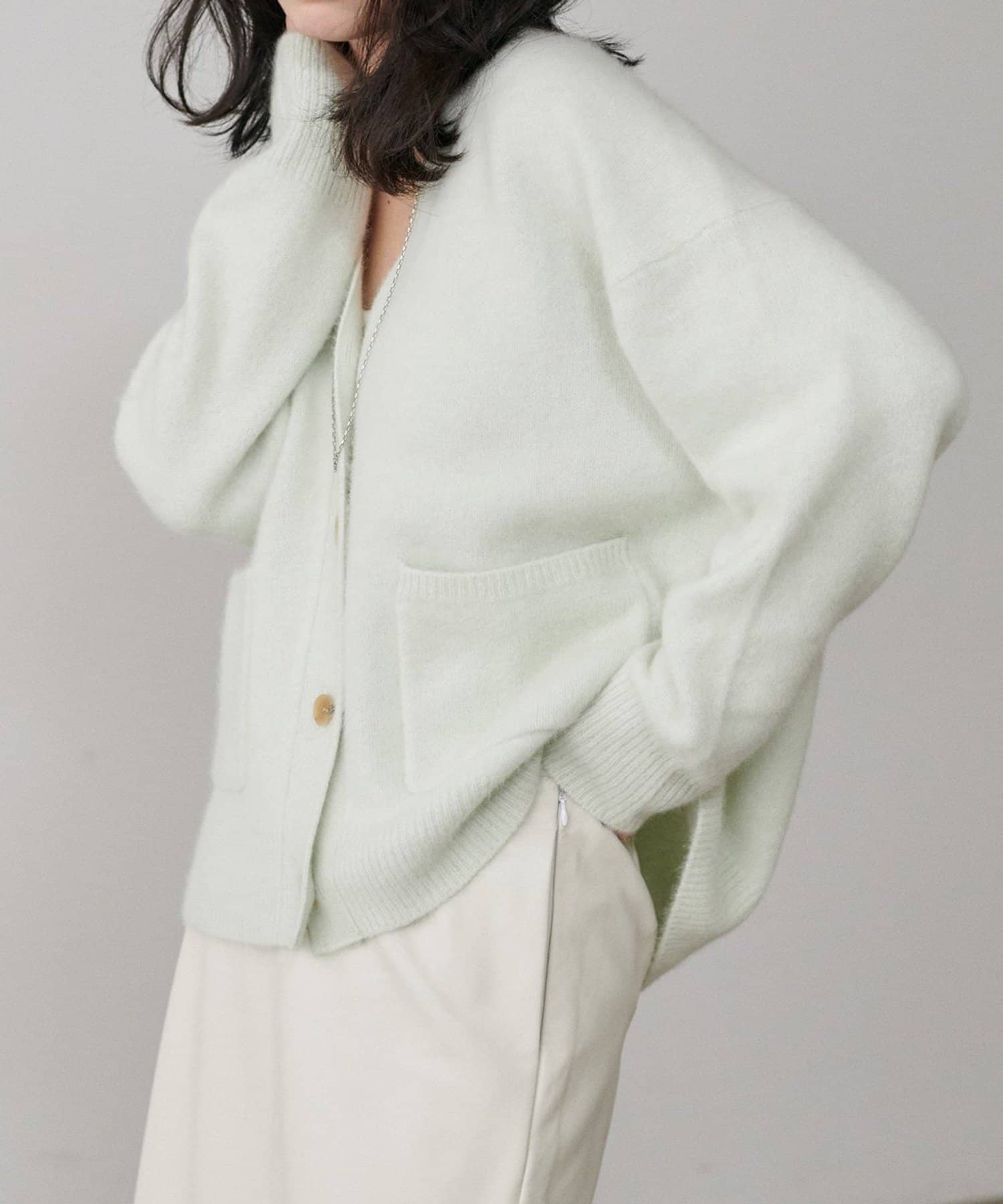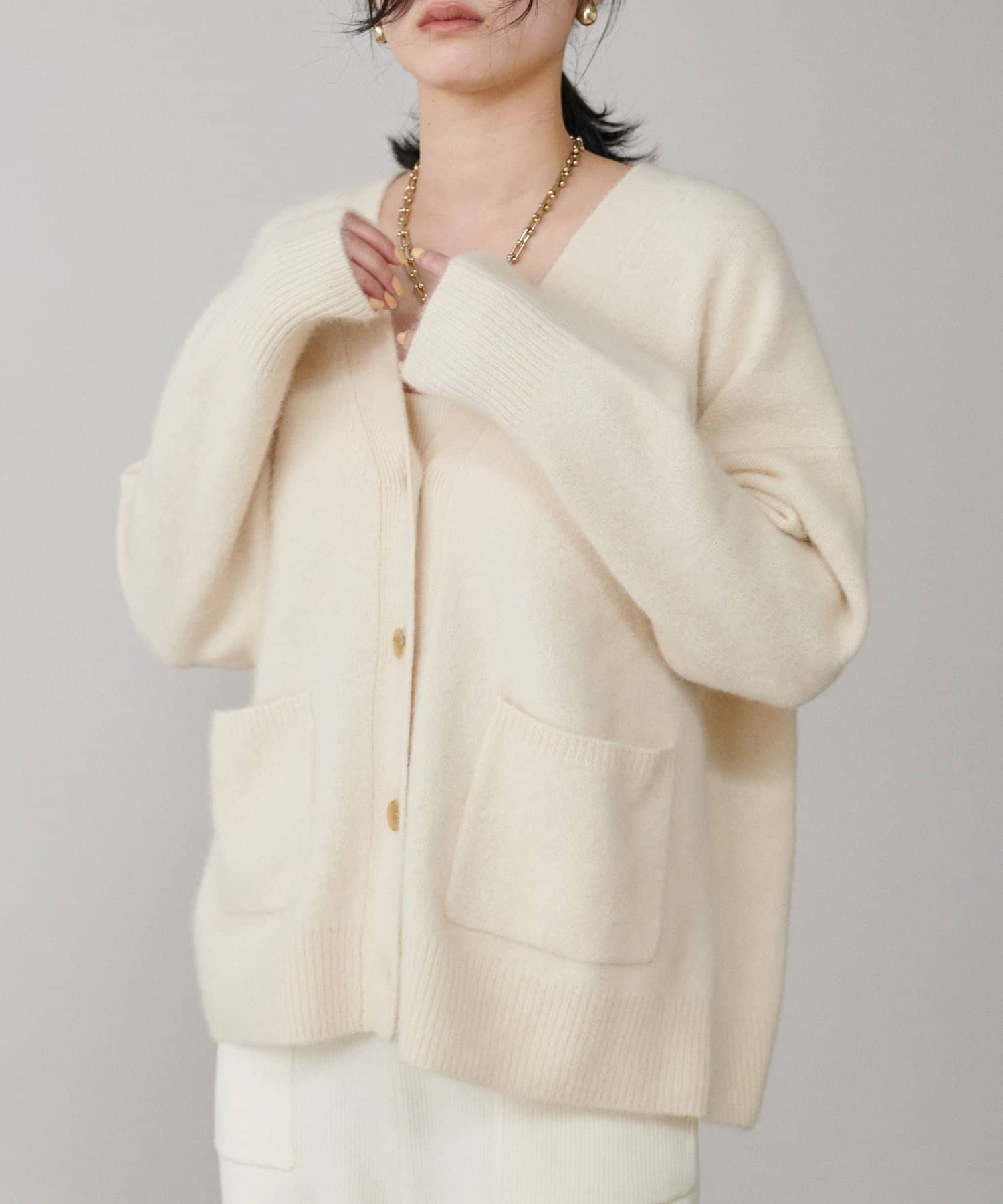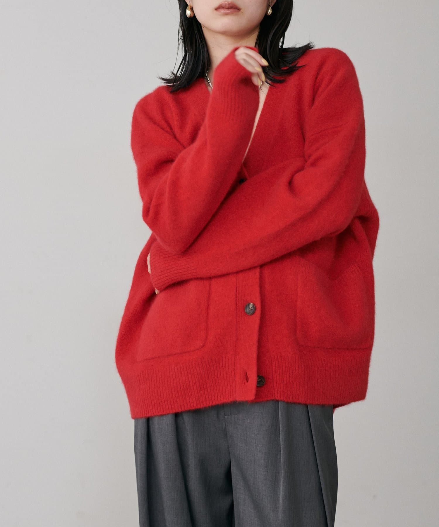 柔らかな毛足のニット地を採用したニットカーディガン。