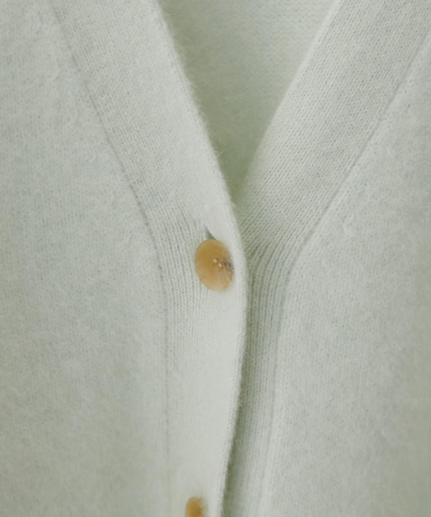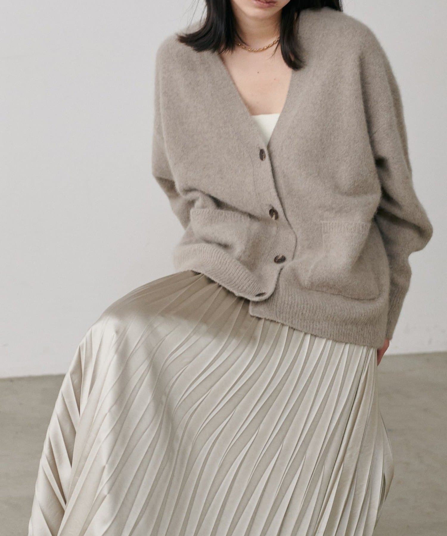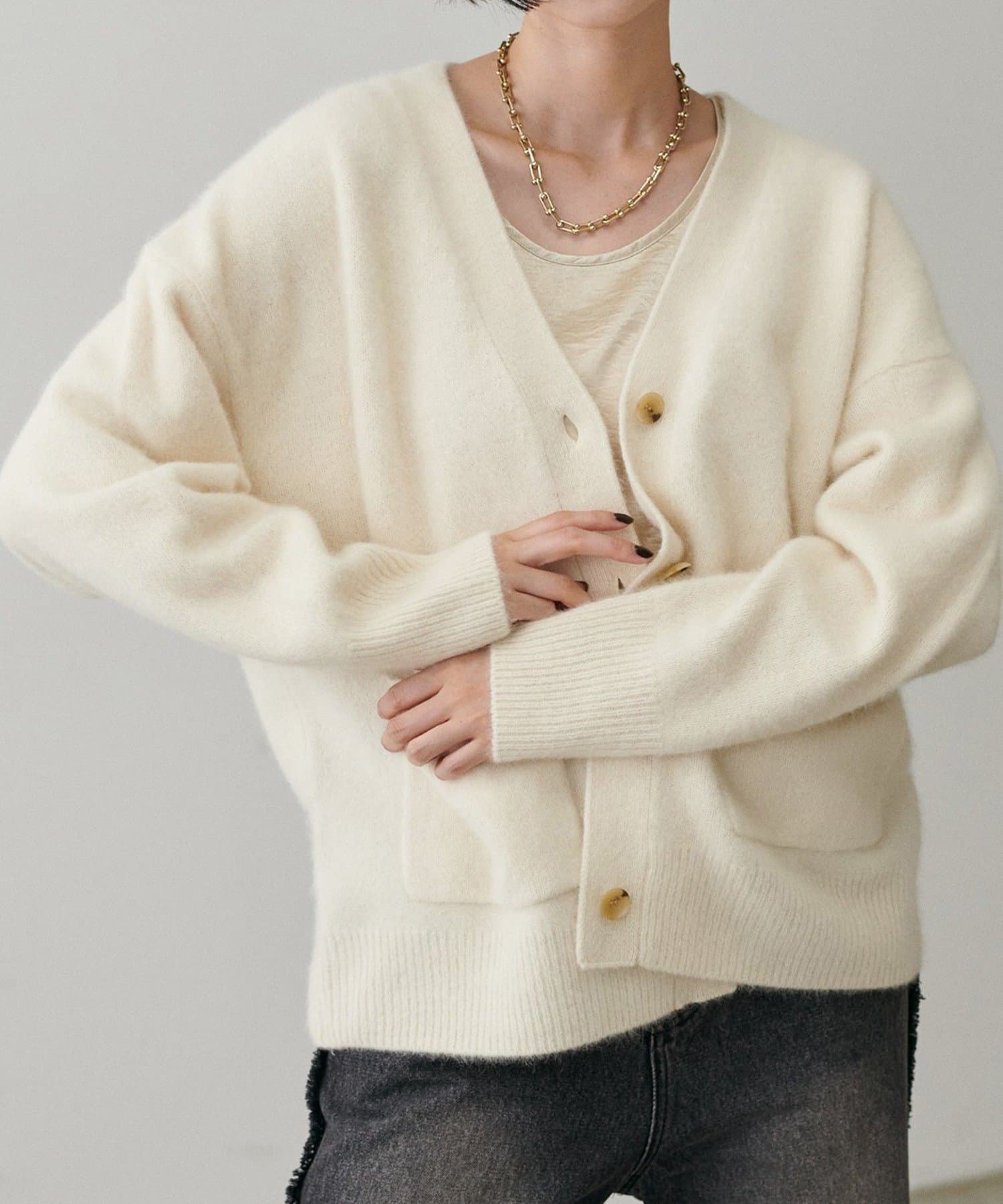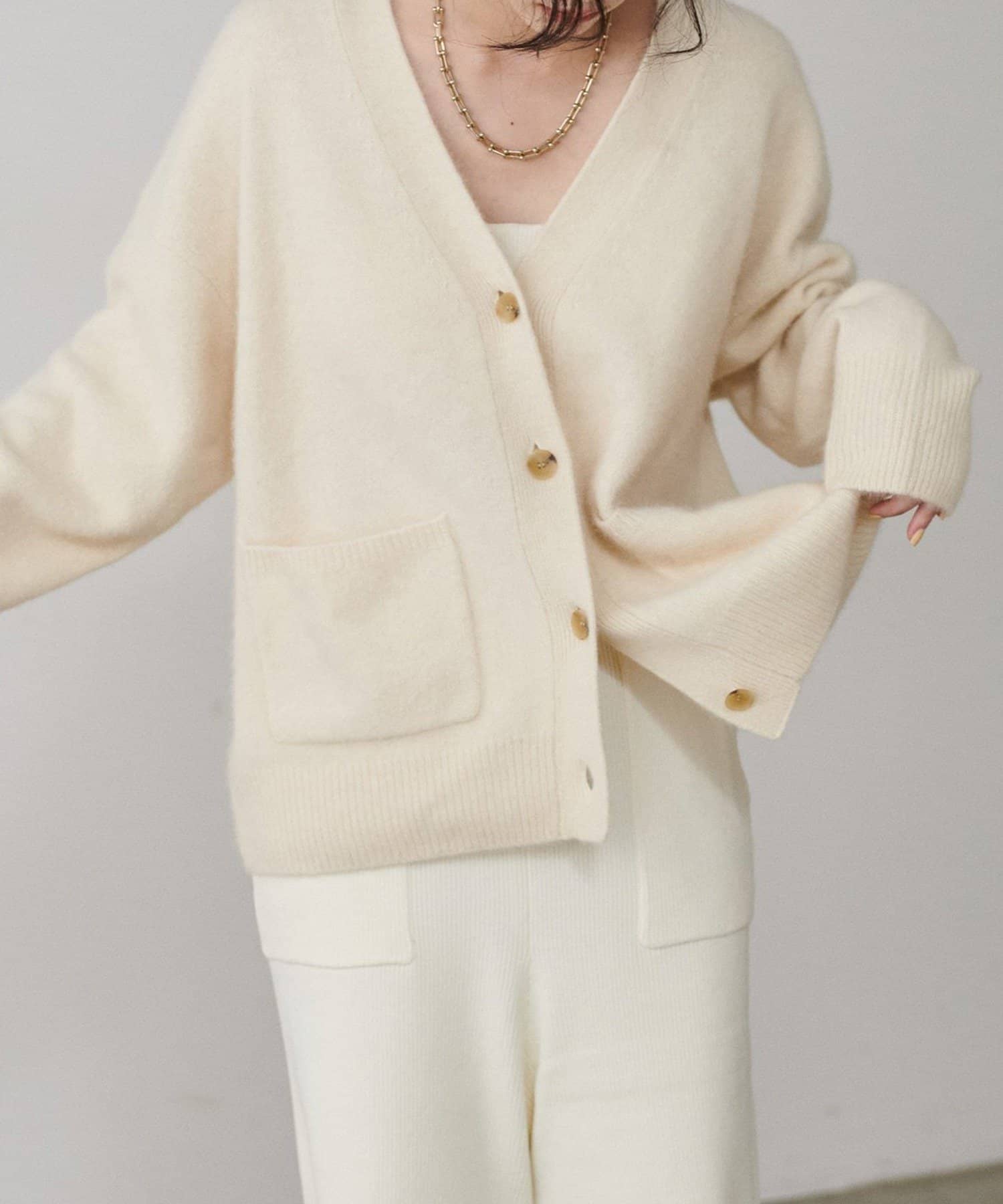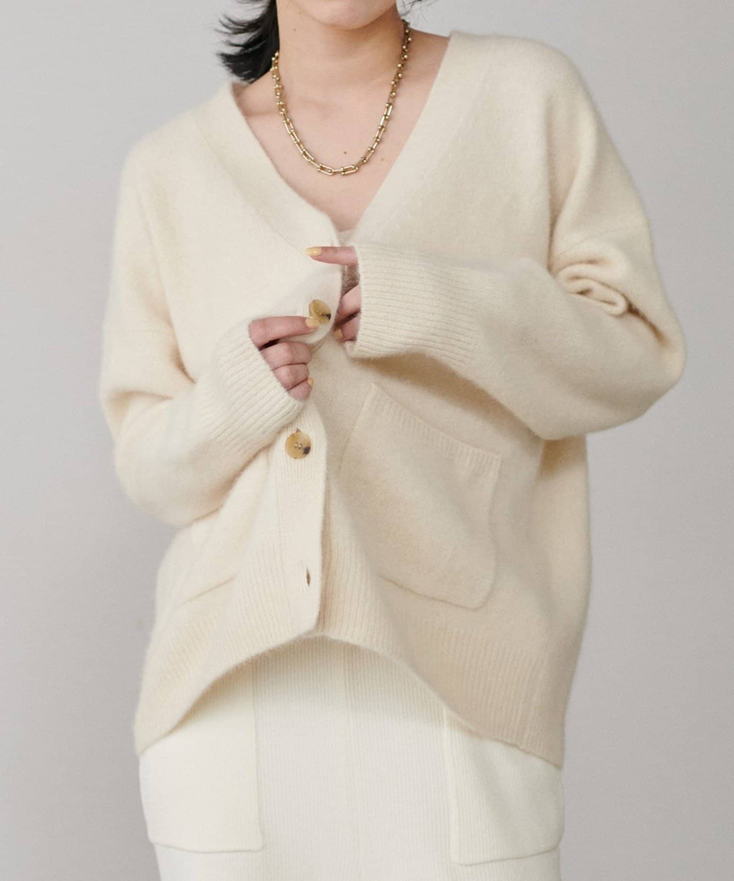 柔らかな毛足のニット地を採用したニットカーディガン。