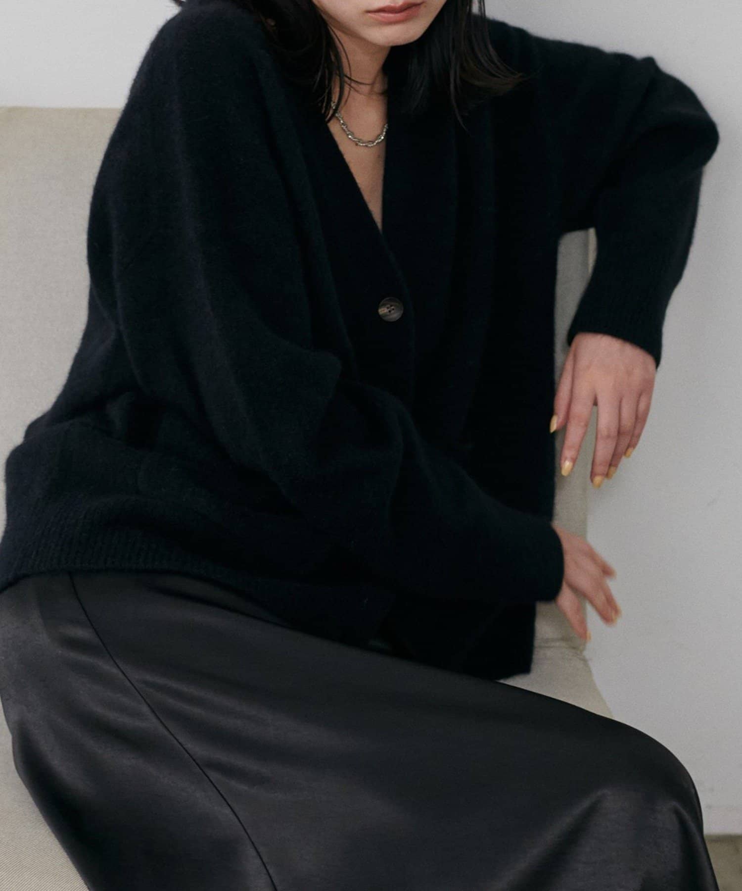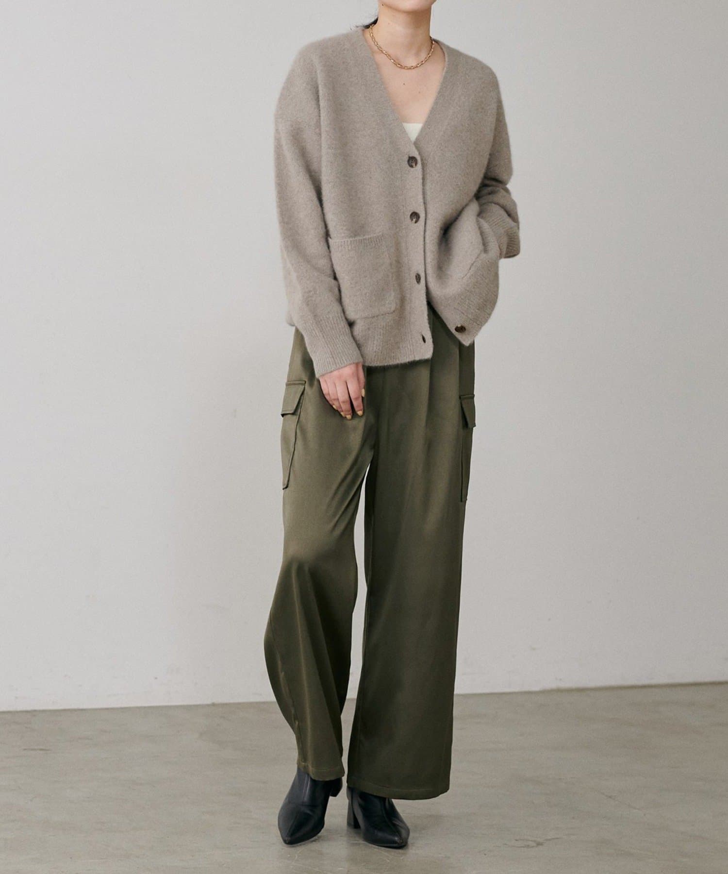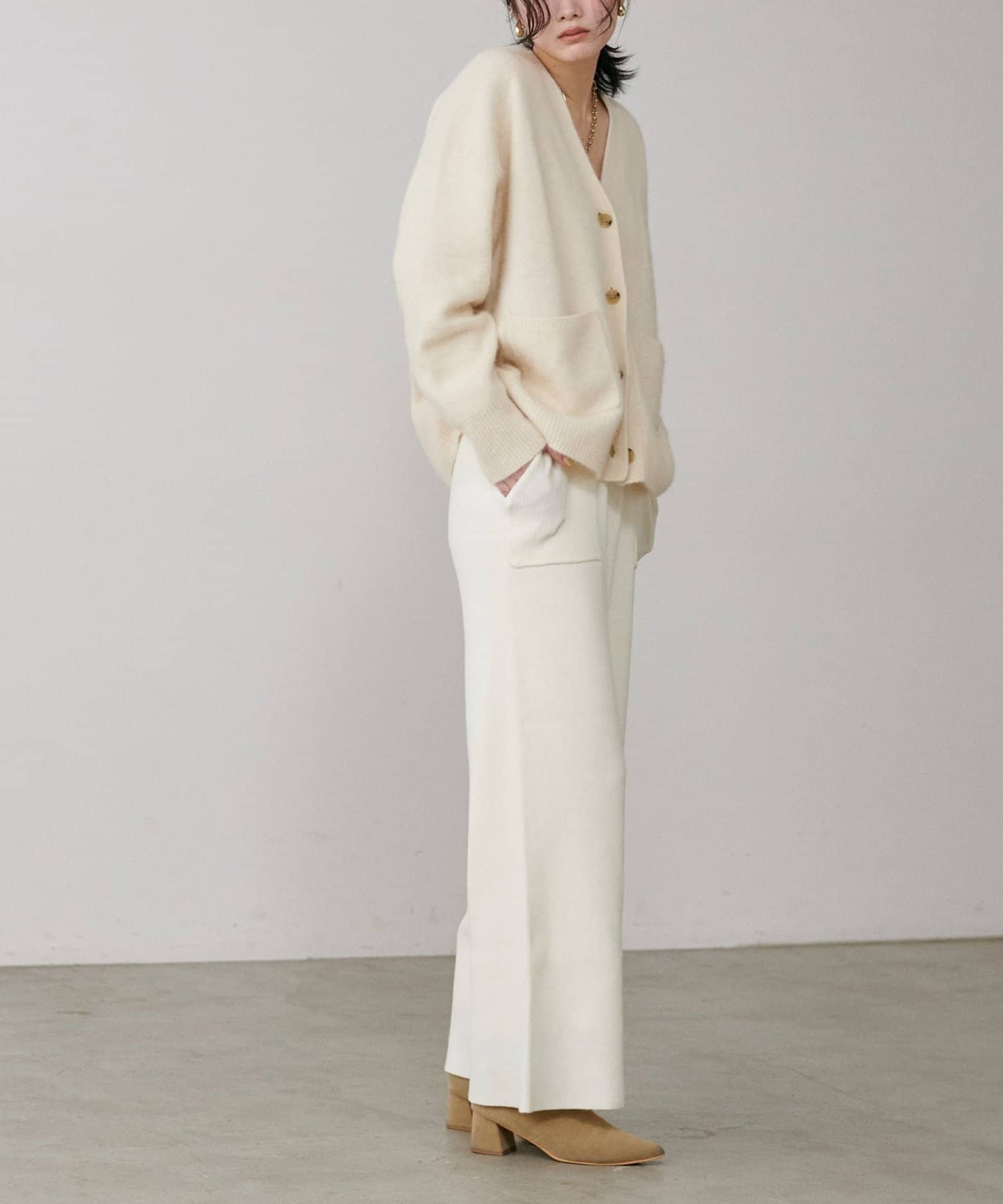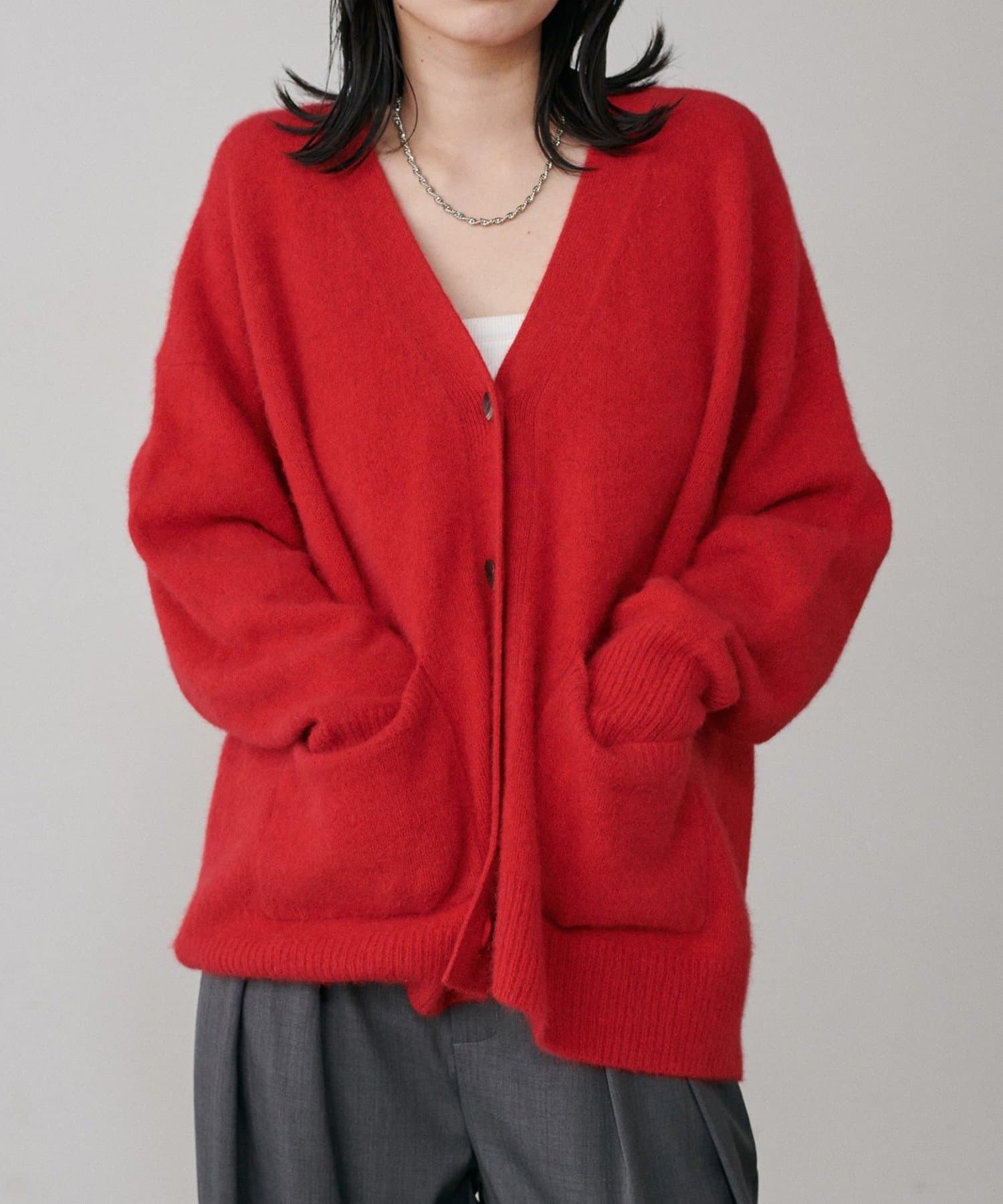 柔らかな毛足のニット地を採用したニットカーディガン。