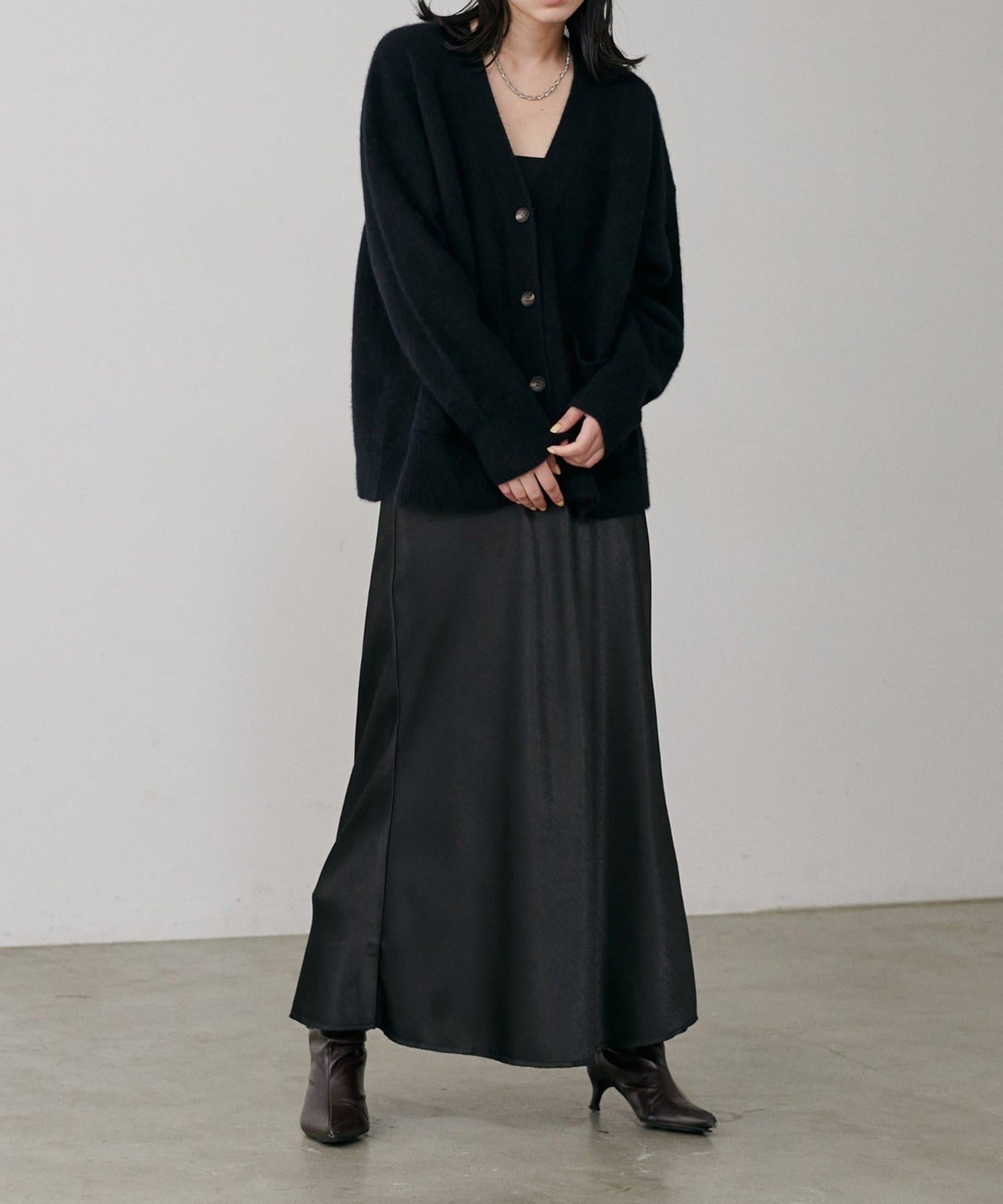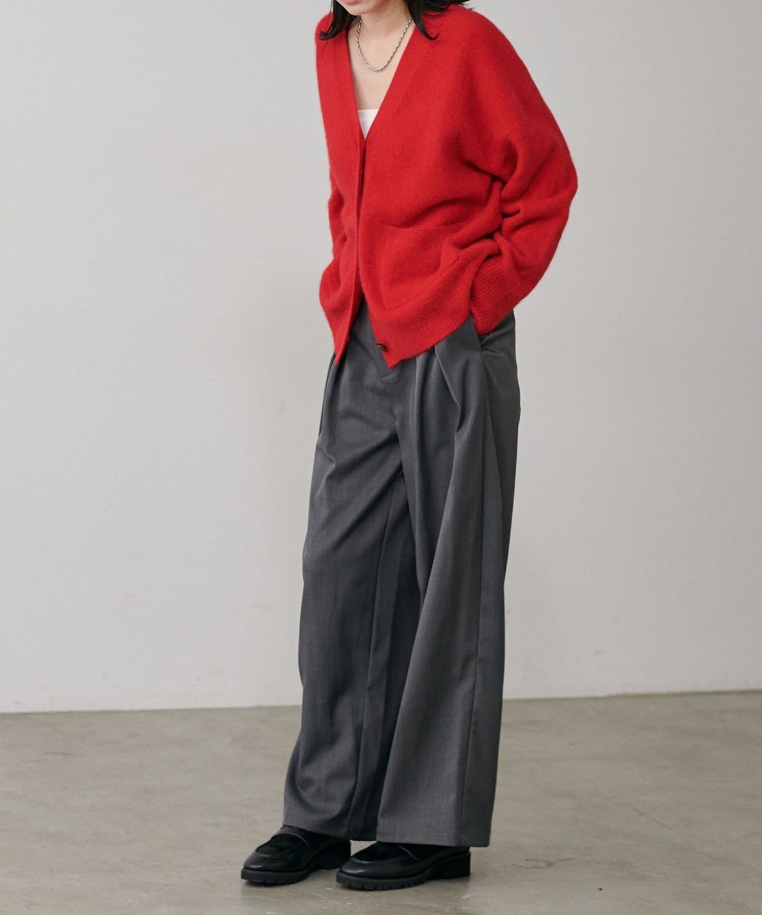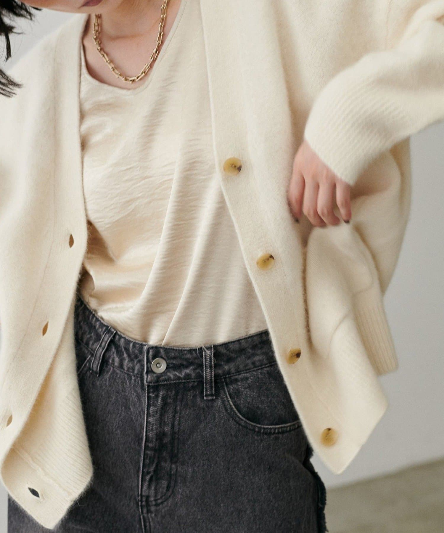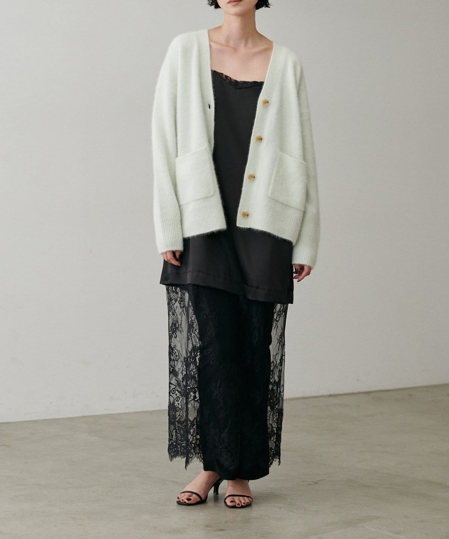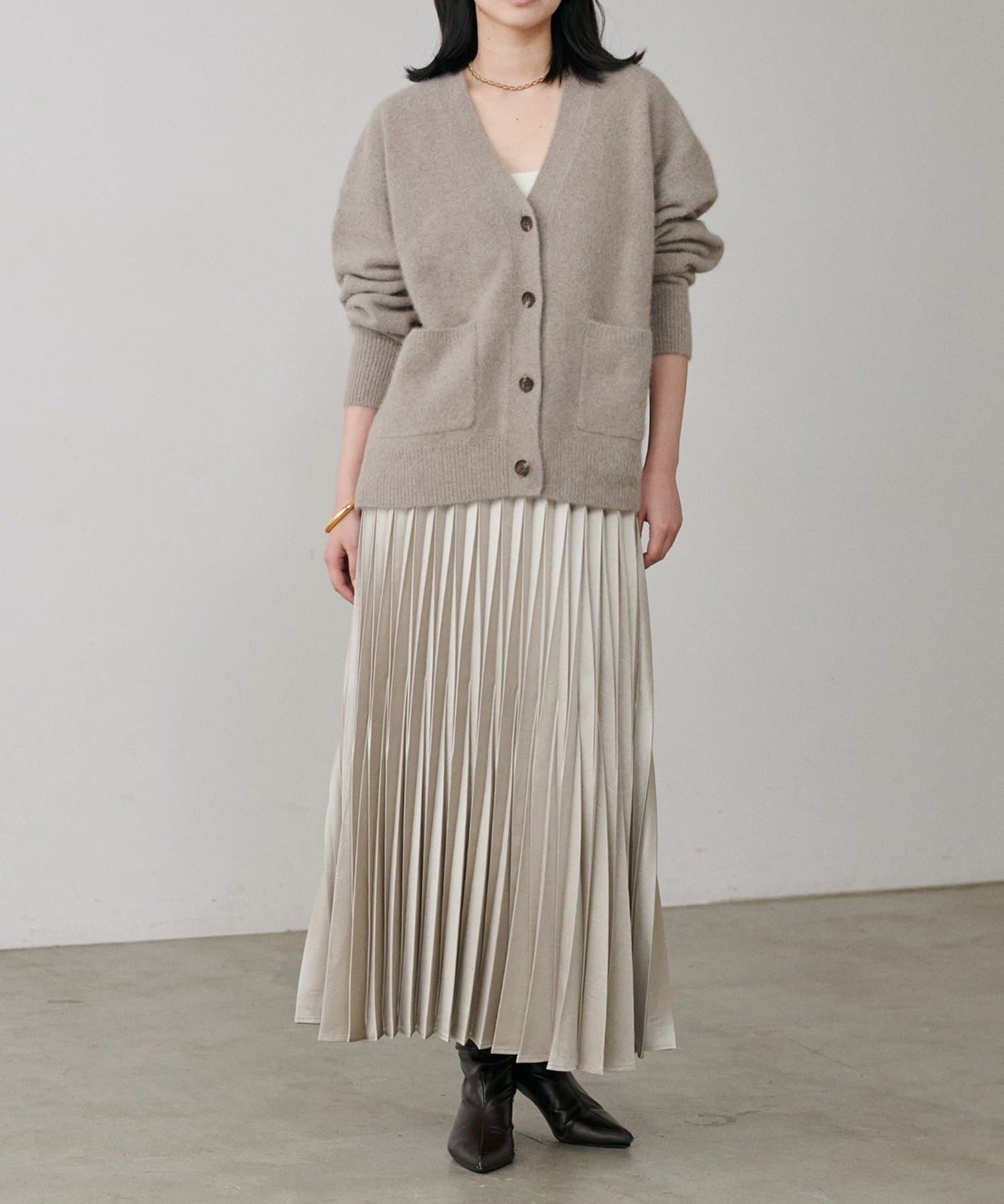 柔らかな毛足のニット地を採用したニットカーディガン。