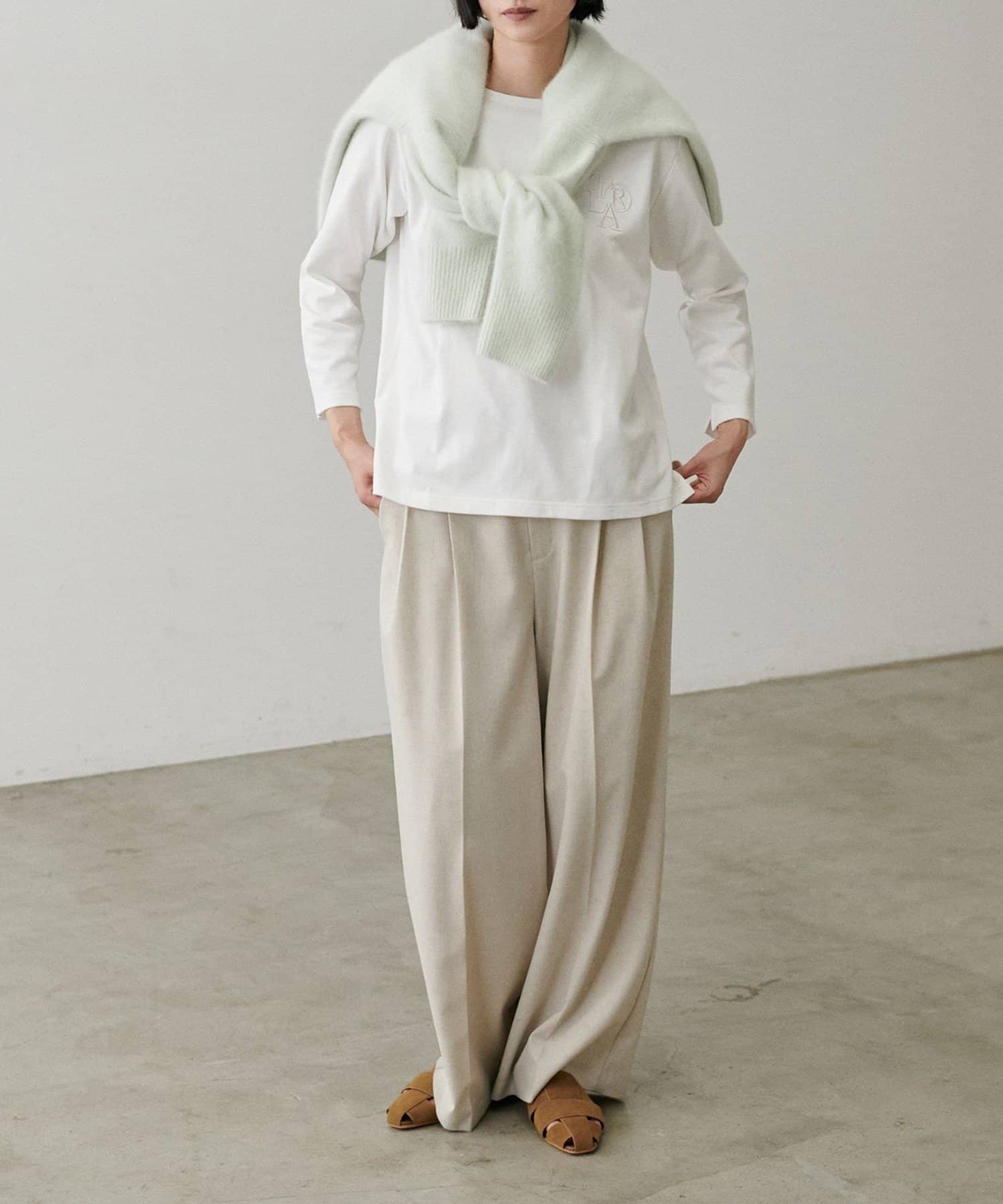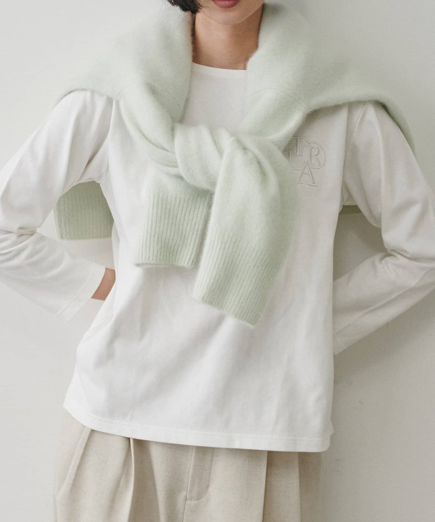 同素材のニットの上から巻いてアンサンブルのように着てもオススメです。