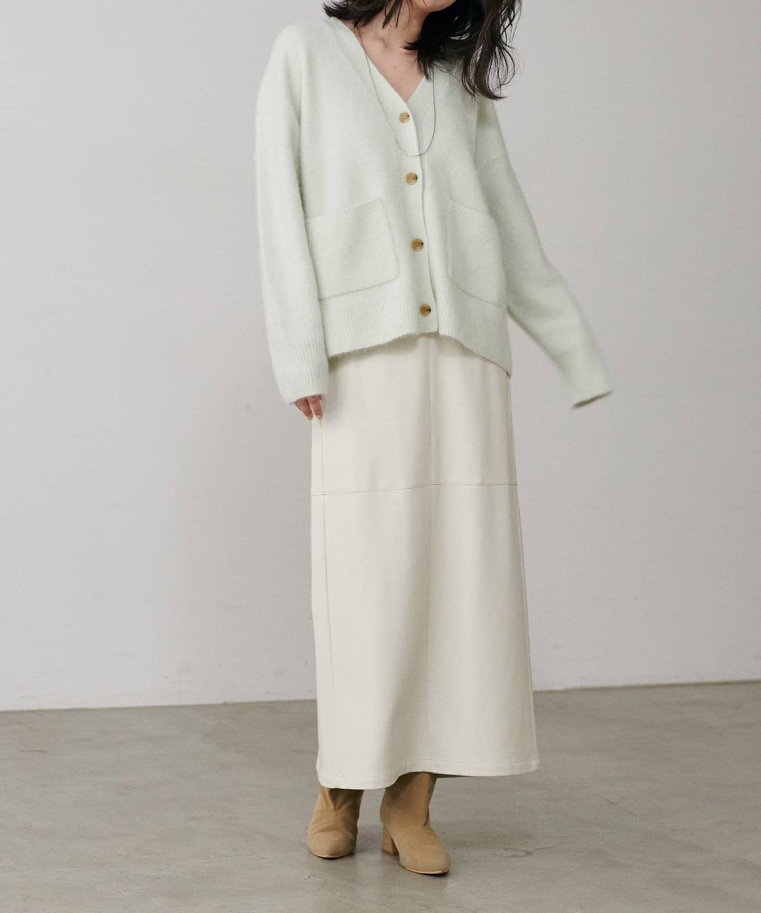 シャツ・ワンピースなど、レイヤードするアイテムによって印象を変えられる冬には欠かせない一枚です。