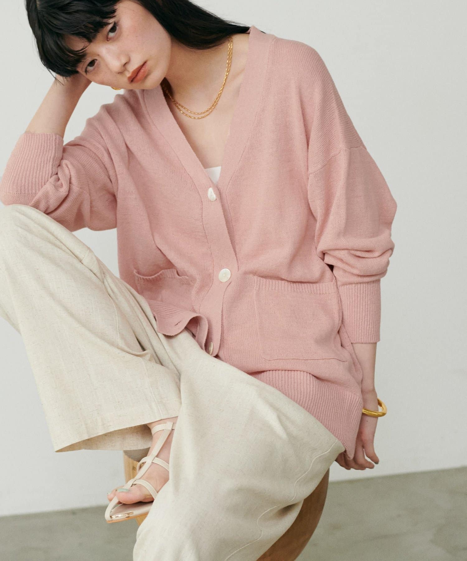 【Web限定】綿麻シアーニットカーデ