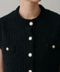 ふんわりとしたモール糸で編み立てた、やわらかな風合いが魅力のクルーネックニットベスト。