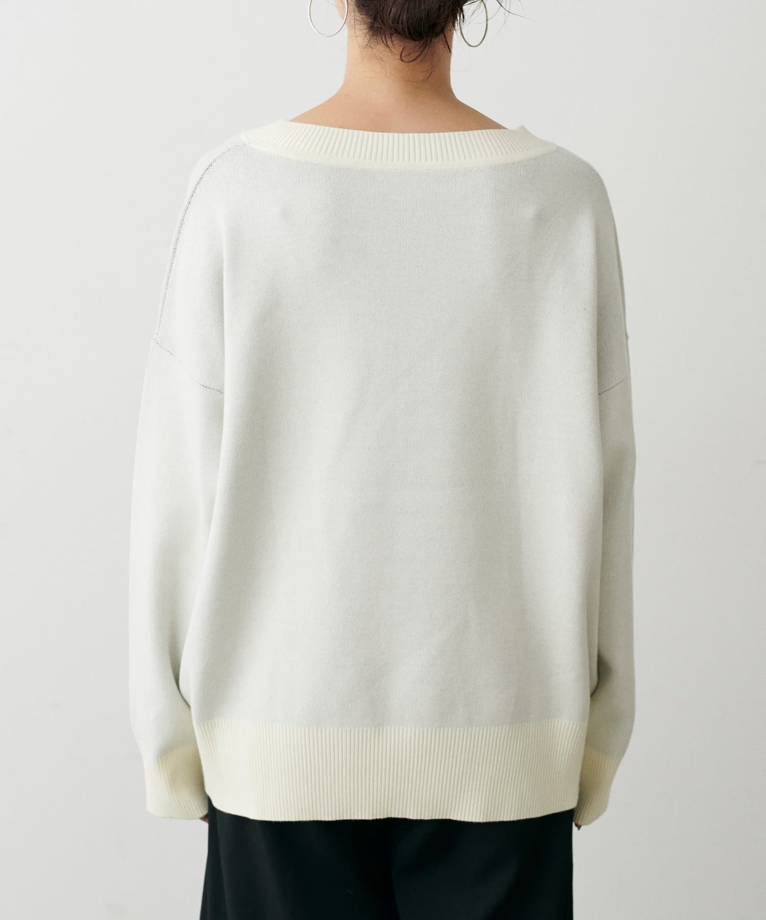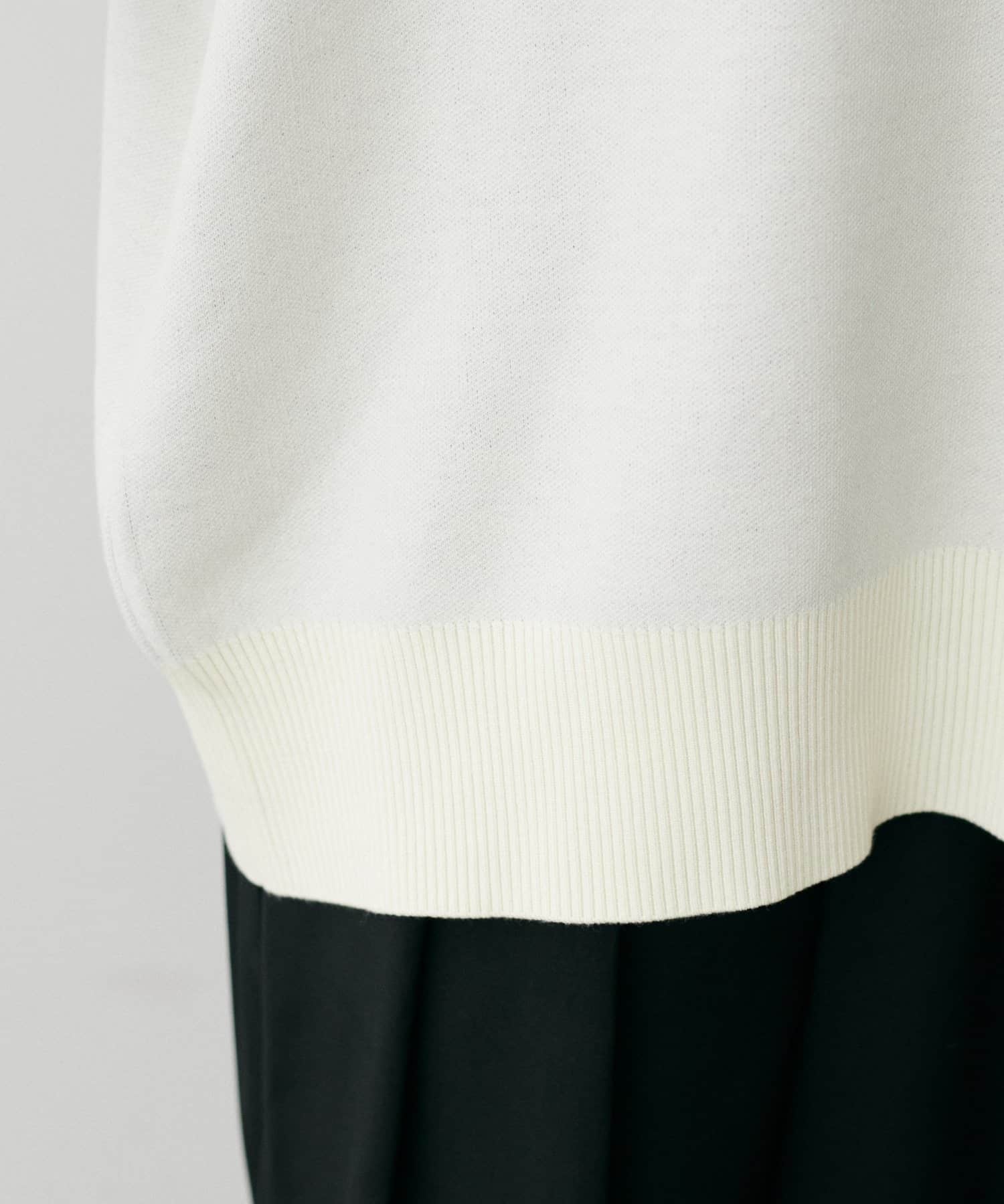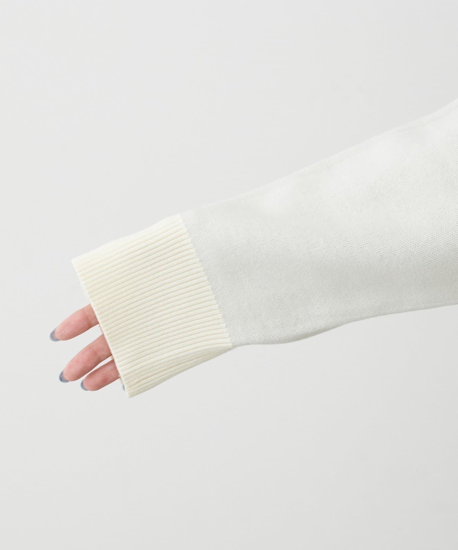 ハイゲージで編み立てた上品な表情に、ブランドらしいロゴを組み込み、存在感をプラスしました。