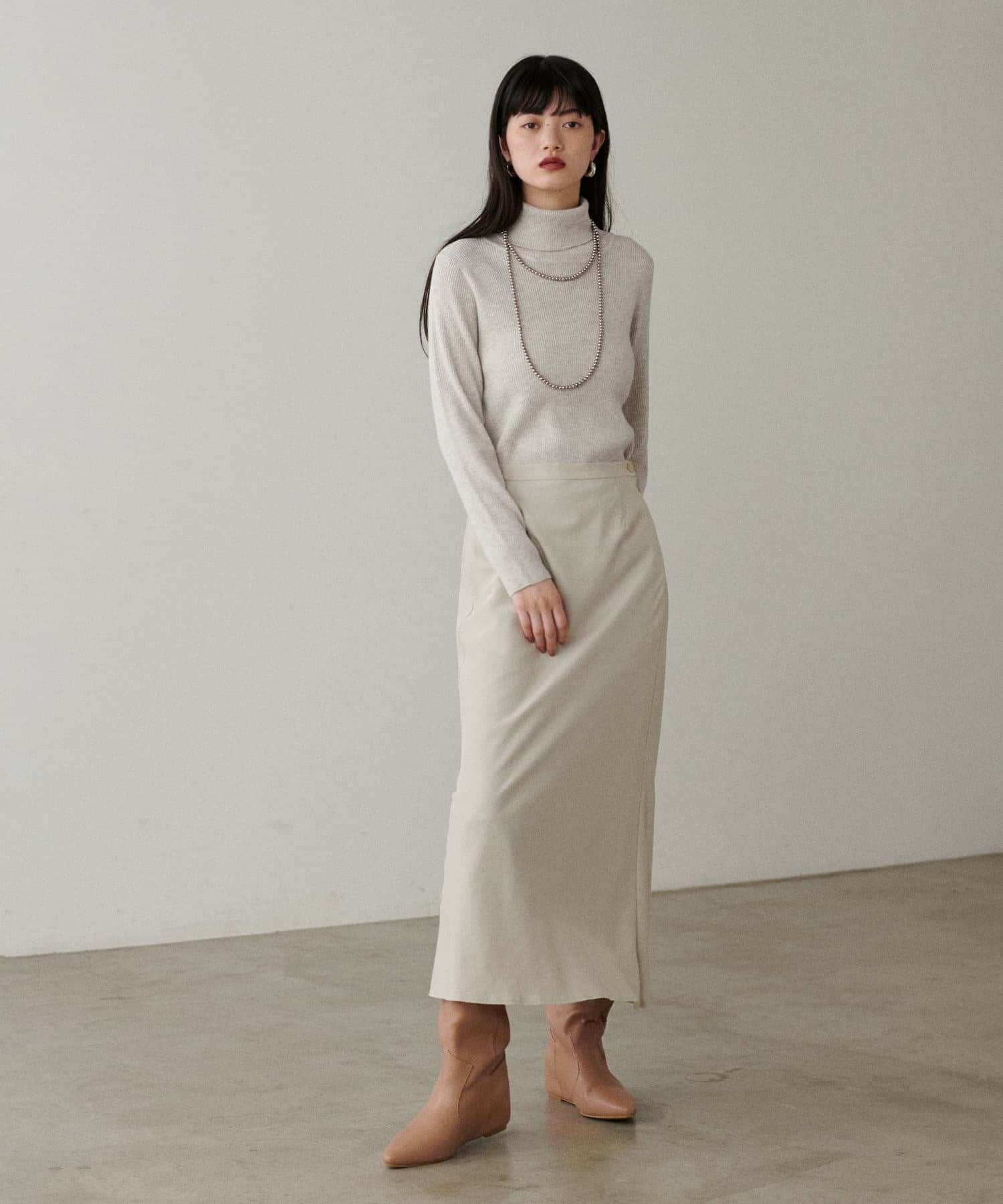 絶妙な丈感でインでもアウトでも着やすく、大人の上品さを引き立てる一枚です。