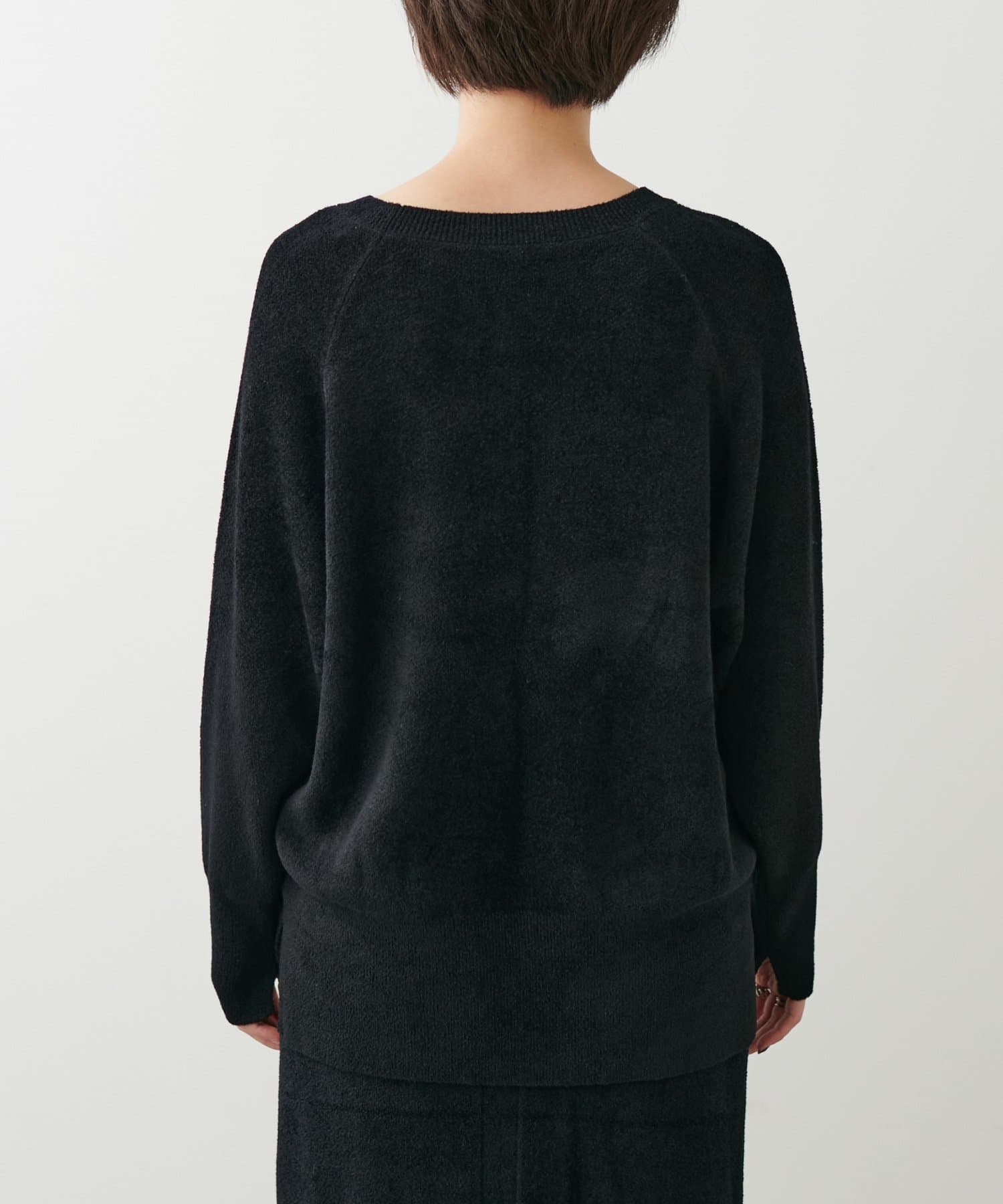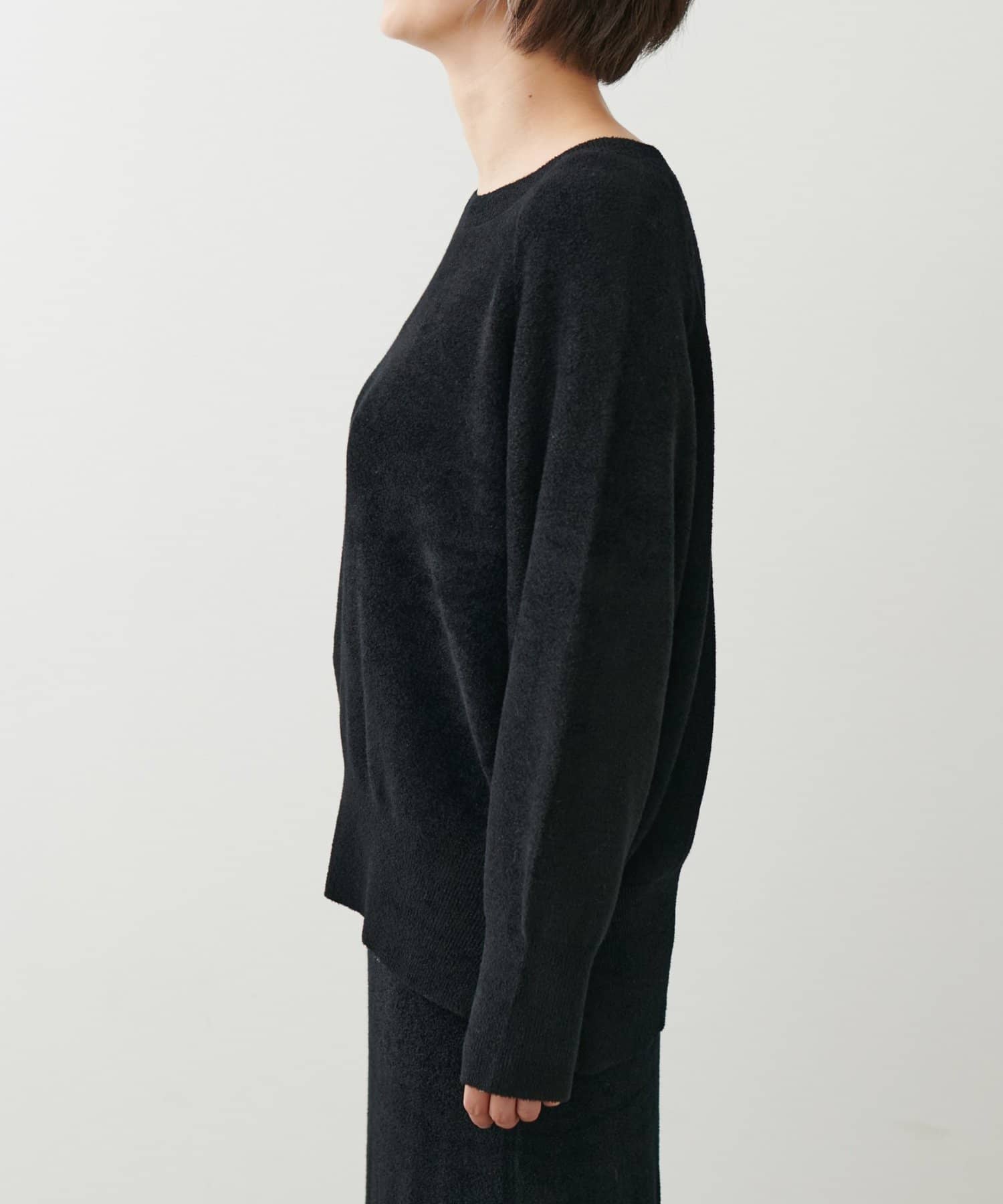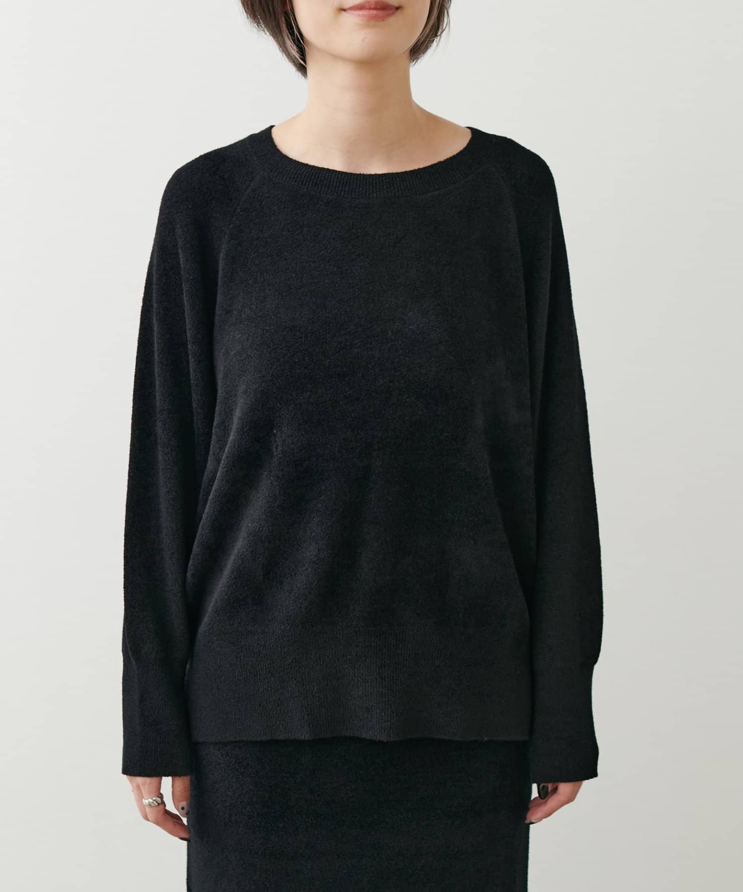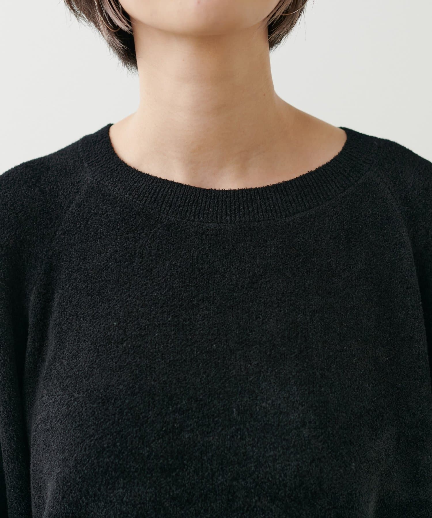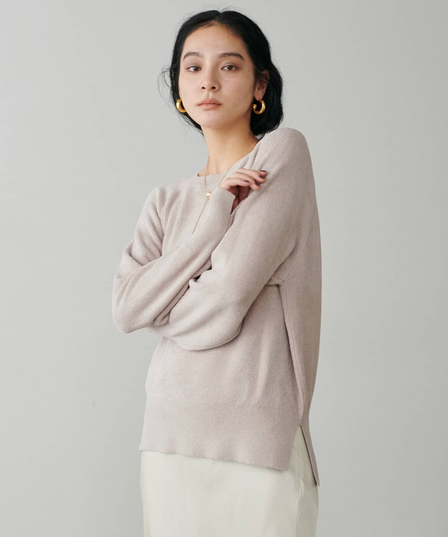 毛足の短いフェザー糸を使用し、もっちりとしたタッチで肌あたりが良く、思わず触れたくなるような滑らかな着心地です。