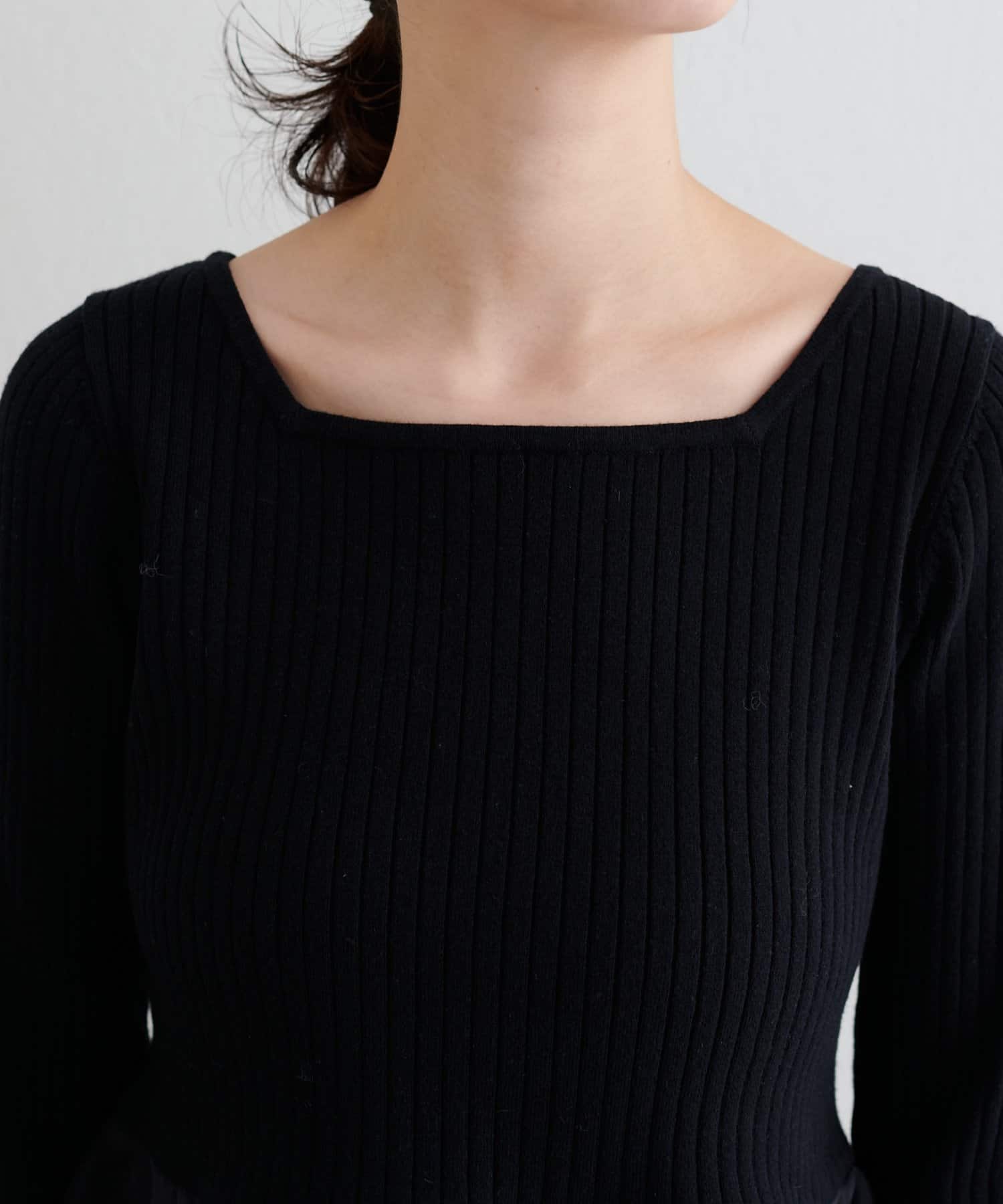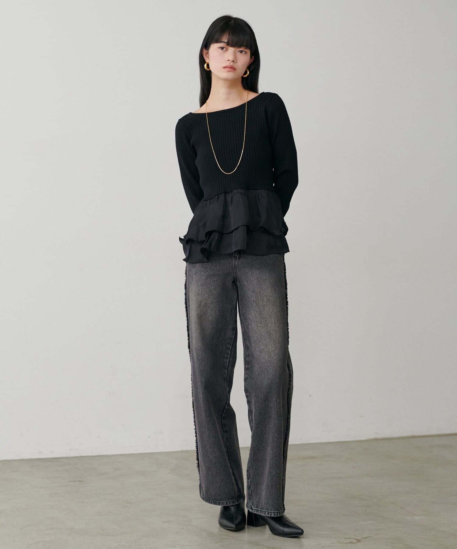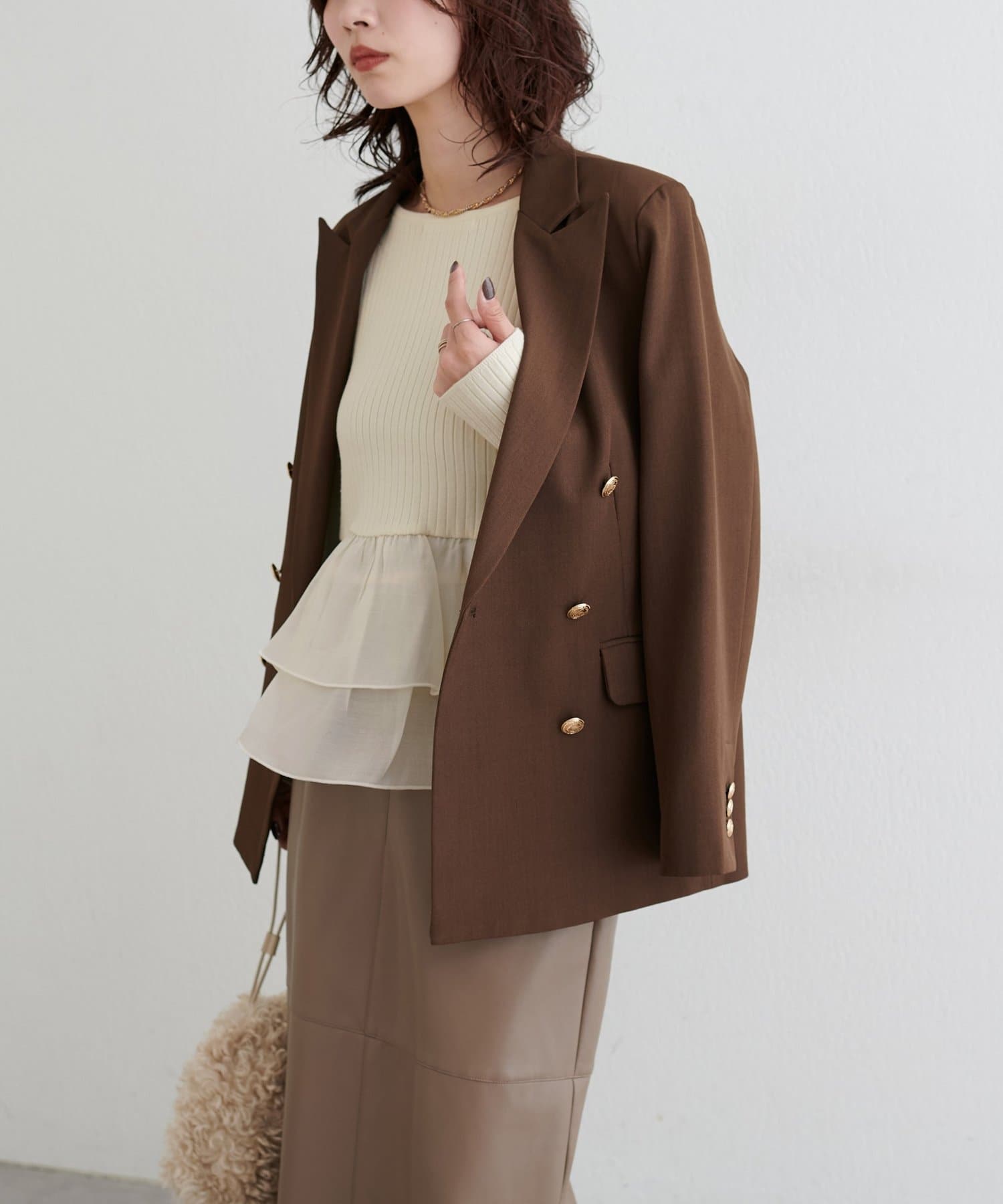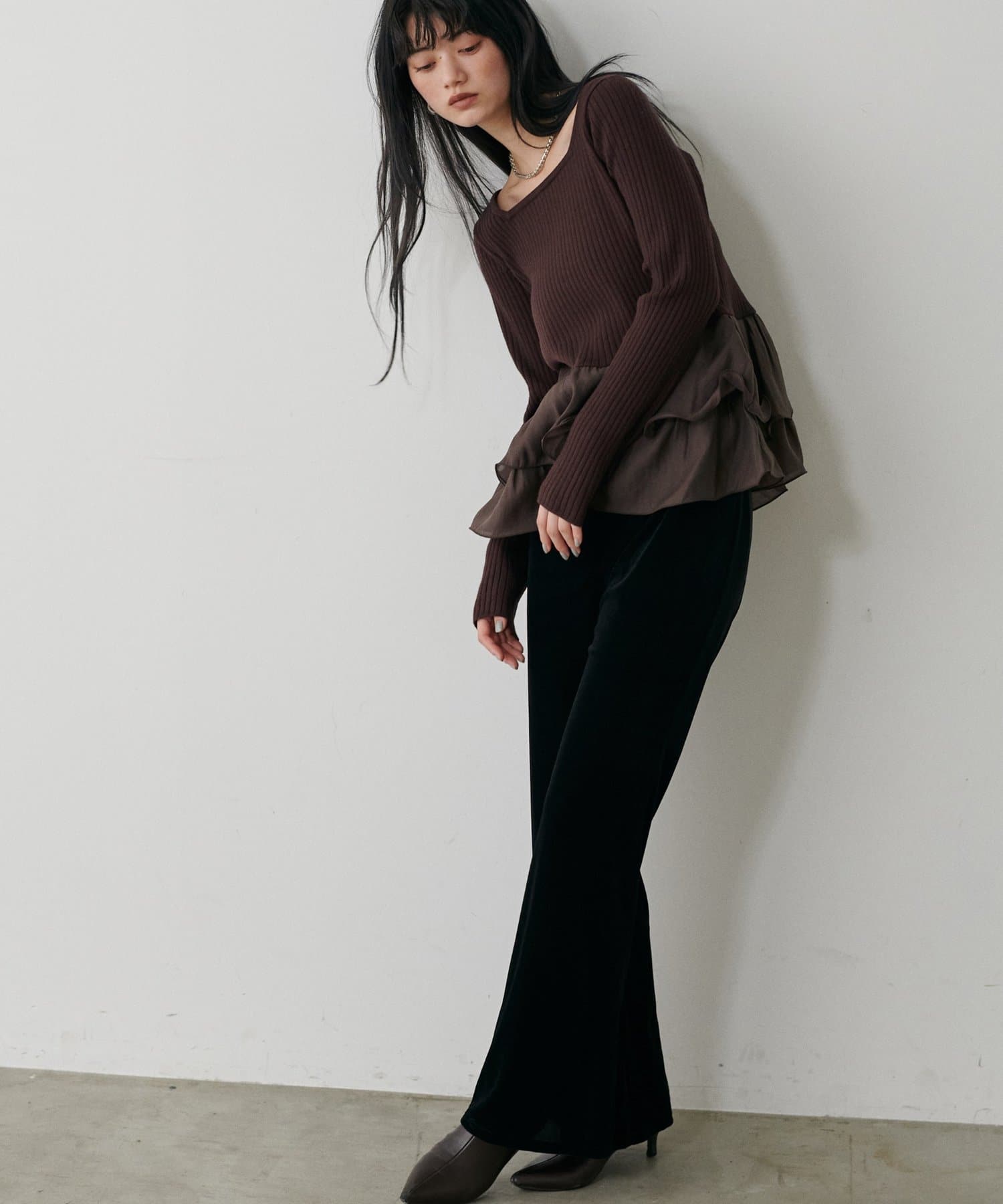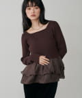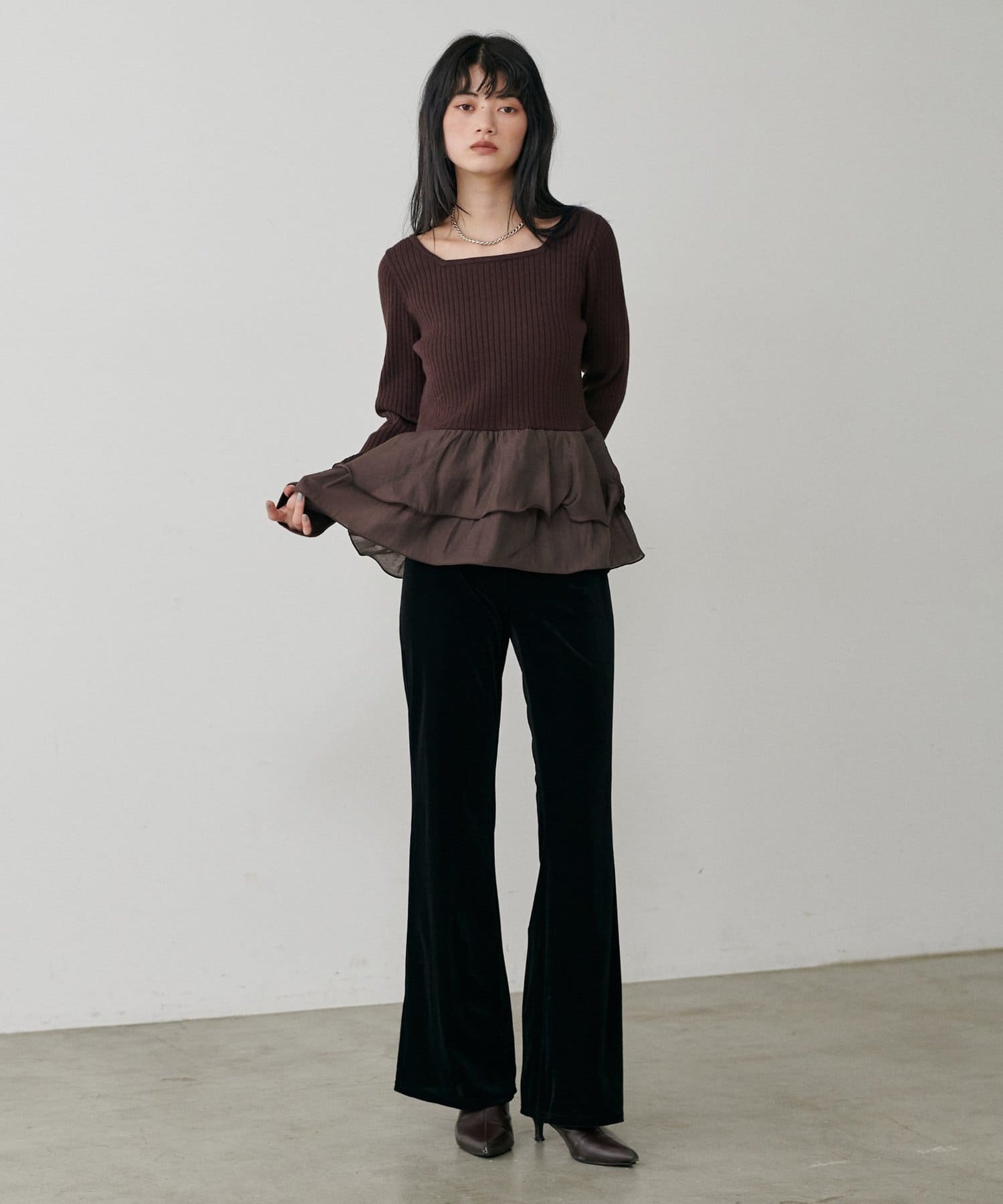 1枚でレイヤードスタイルが叶う、大人も着られるペプラムニット。